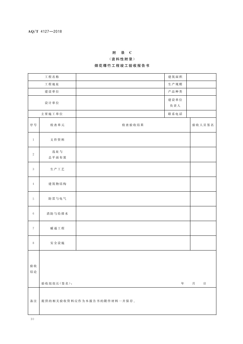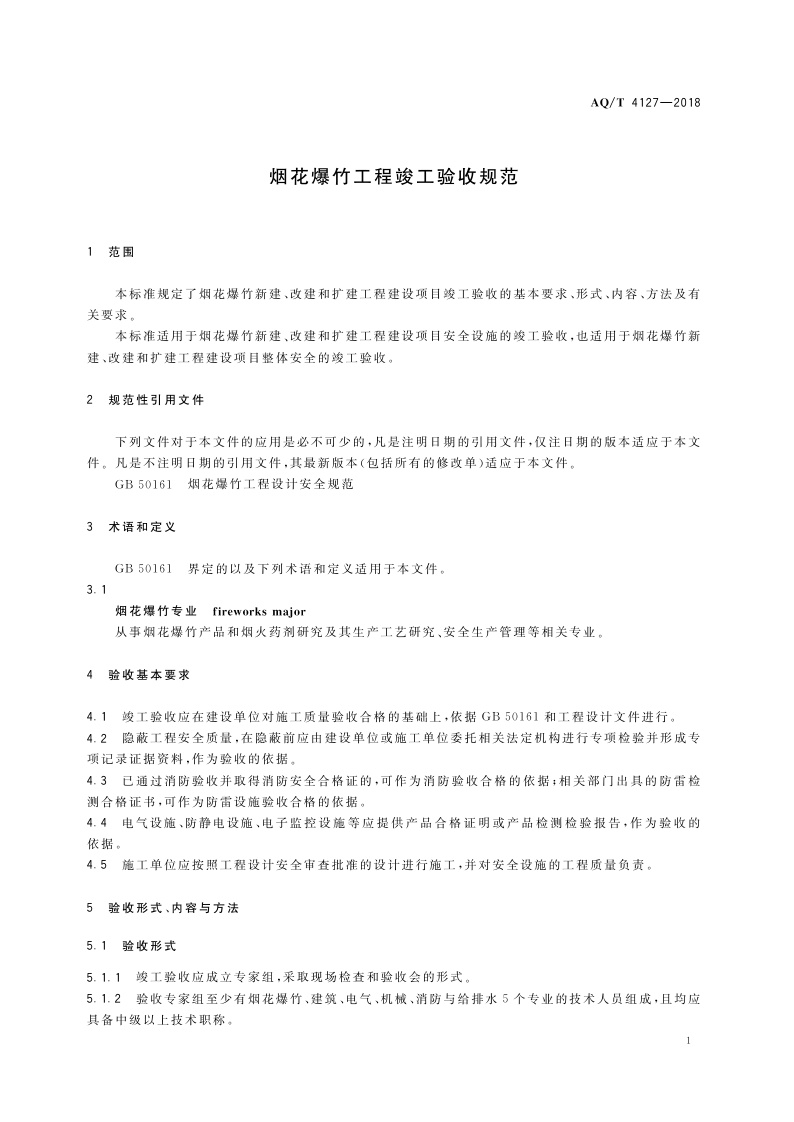 《烟花爆竹工程竣工验收规范》(AQ∕T4127-2018)