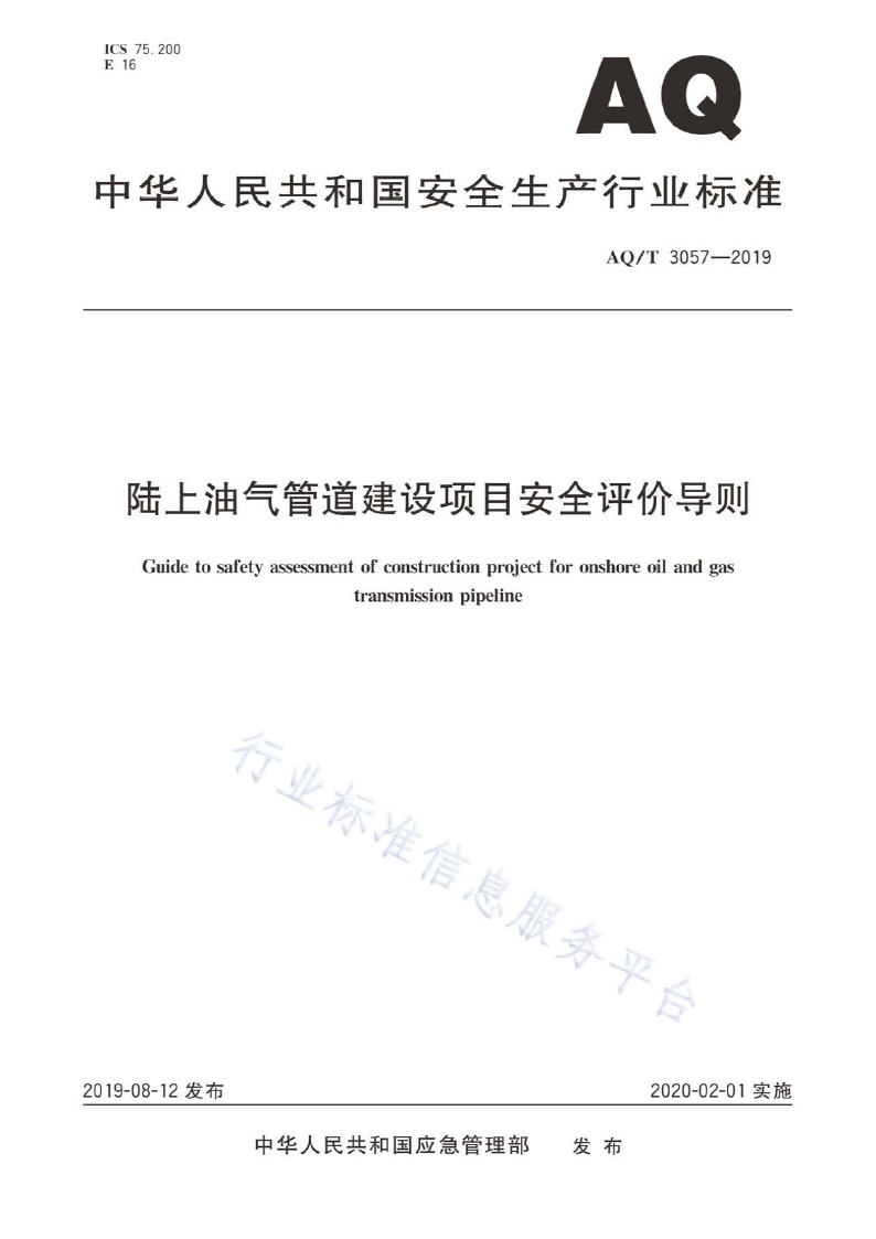 《陆上油气管道建设项目安全评价导则》(AQ∕T3057-2019)