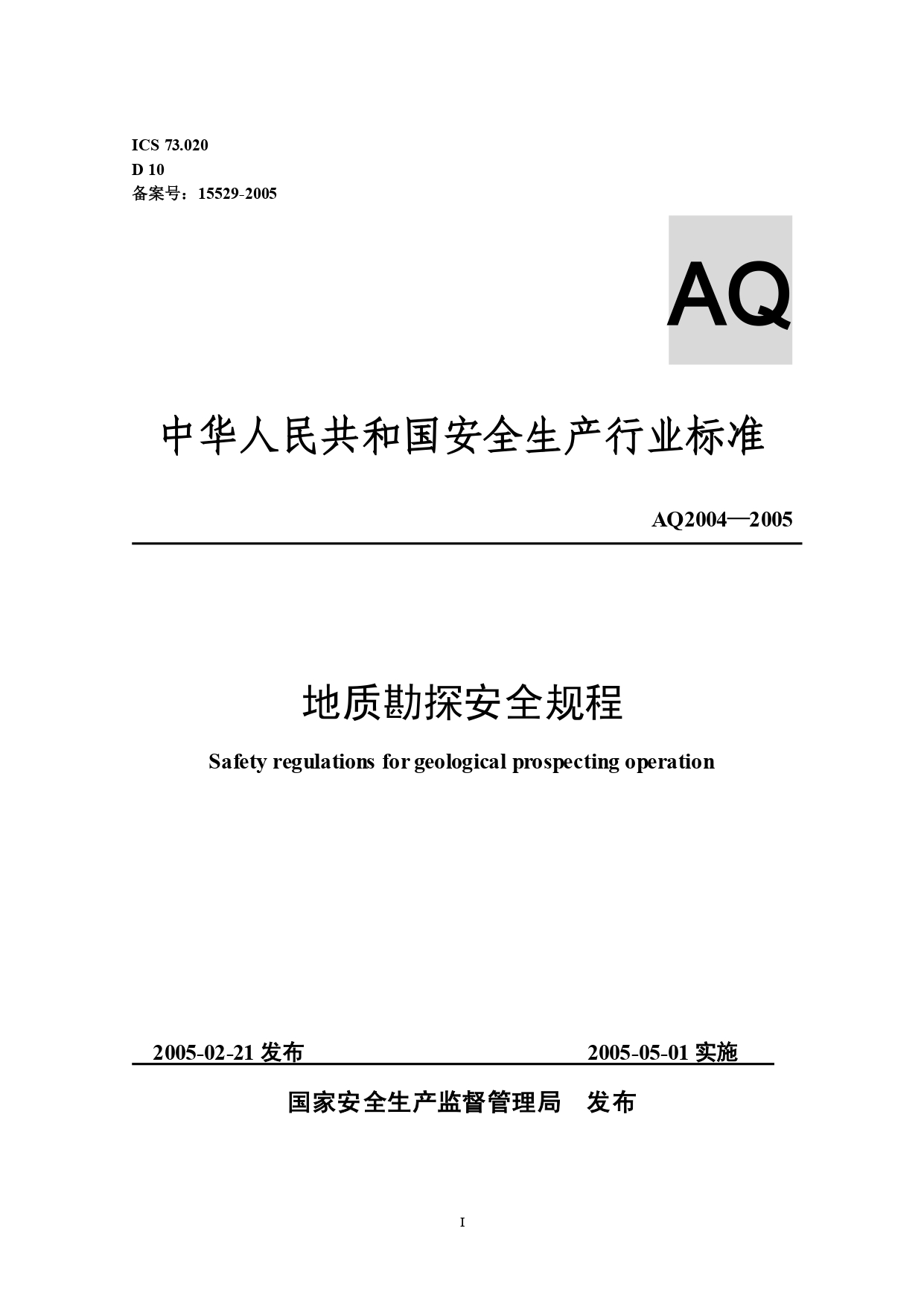 AQ2004-2005地质勘探安全规程