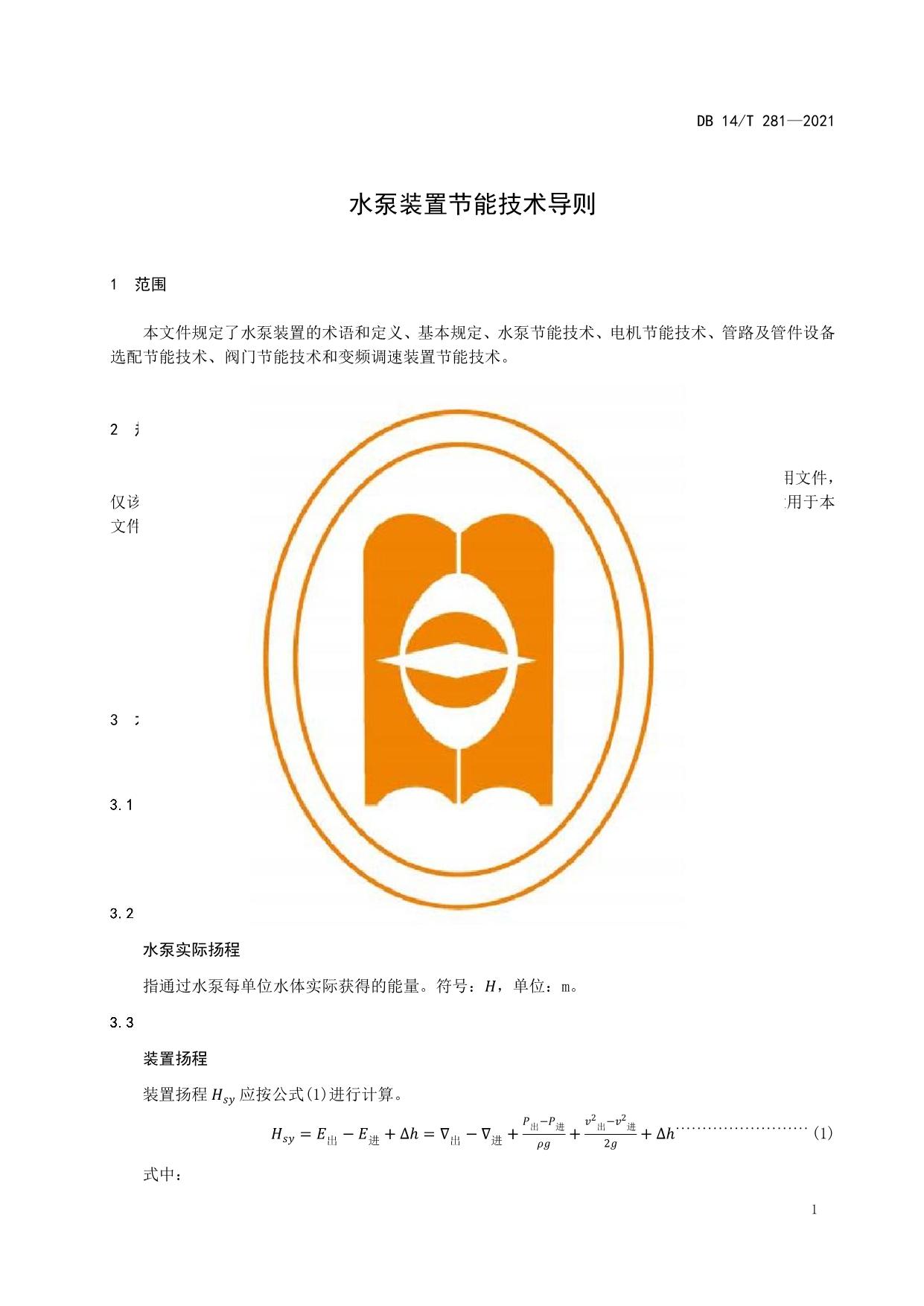 《水泵装置节能技术导则》(DB14/T 281-2021 )