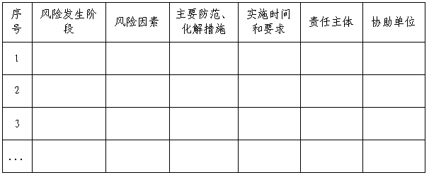 (四)结合风险识别和风险估计评估结论,补充、优化和完善风险防范、化解措施,进一步明确责任主体等内容,编制经评估的风险防范、化解措施汇总表(参考样表4),并提出综合评估意见。