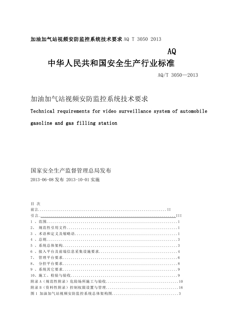 《加油加气站视频安防监控系统技术要求》(AQ∕T3050-2013)