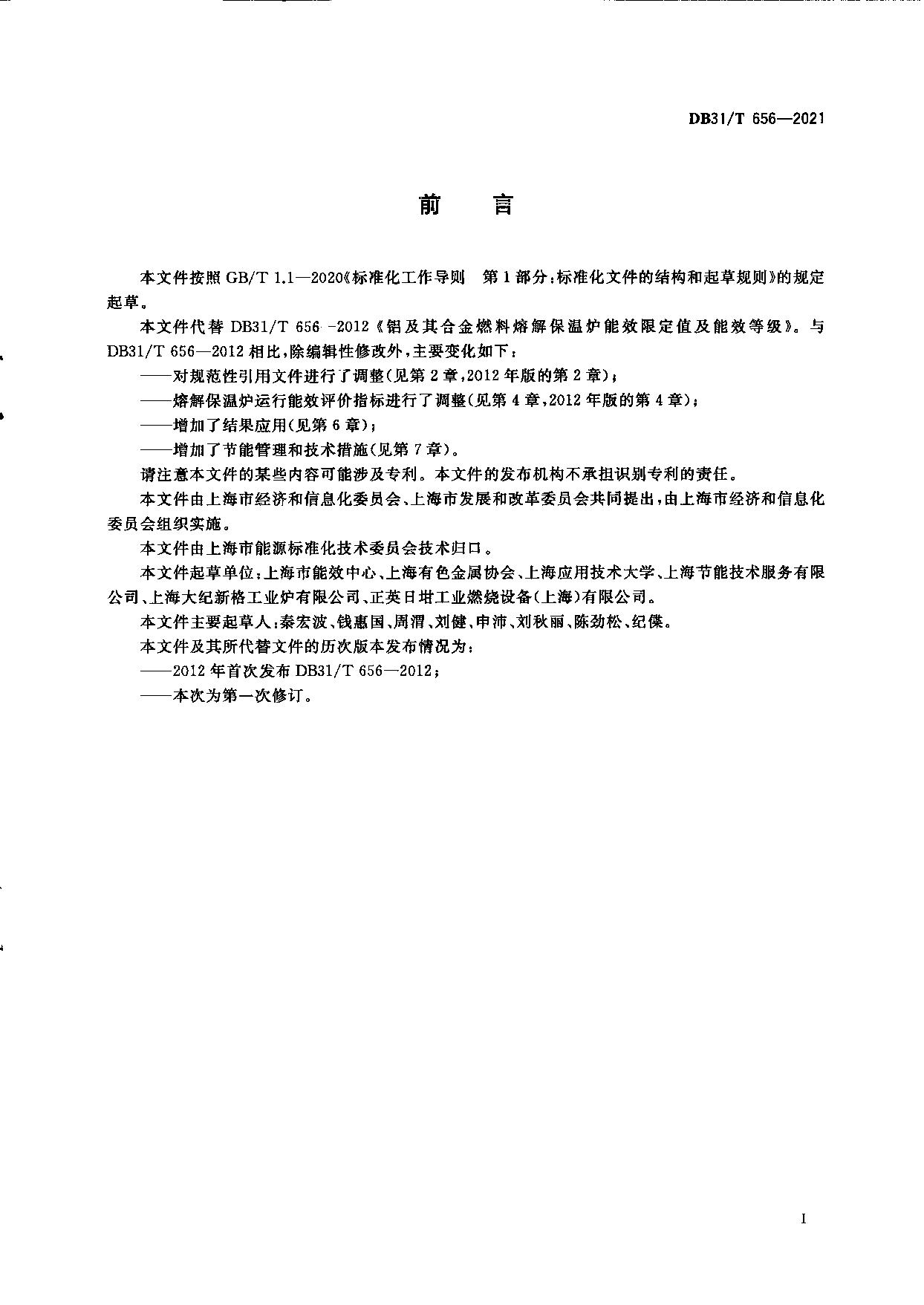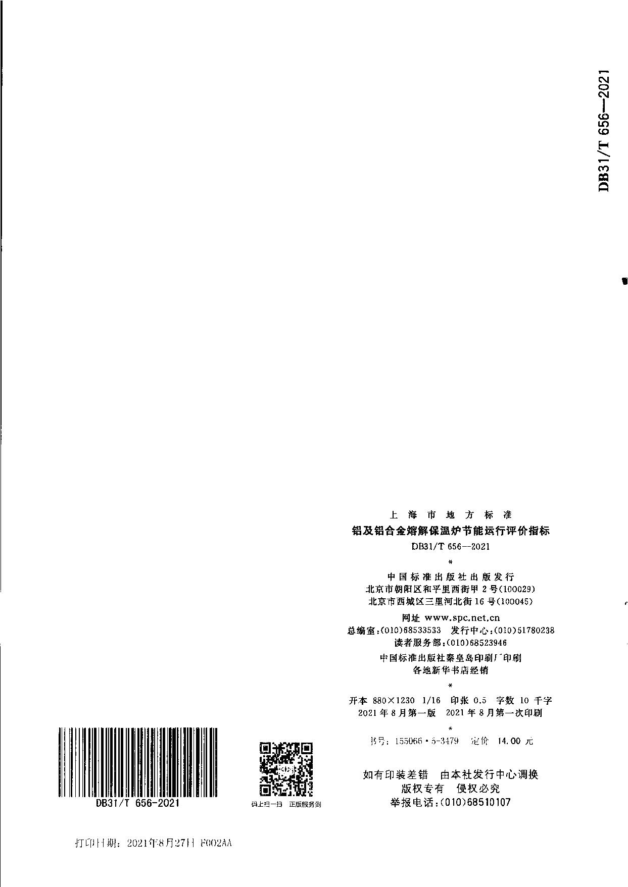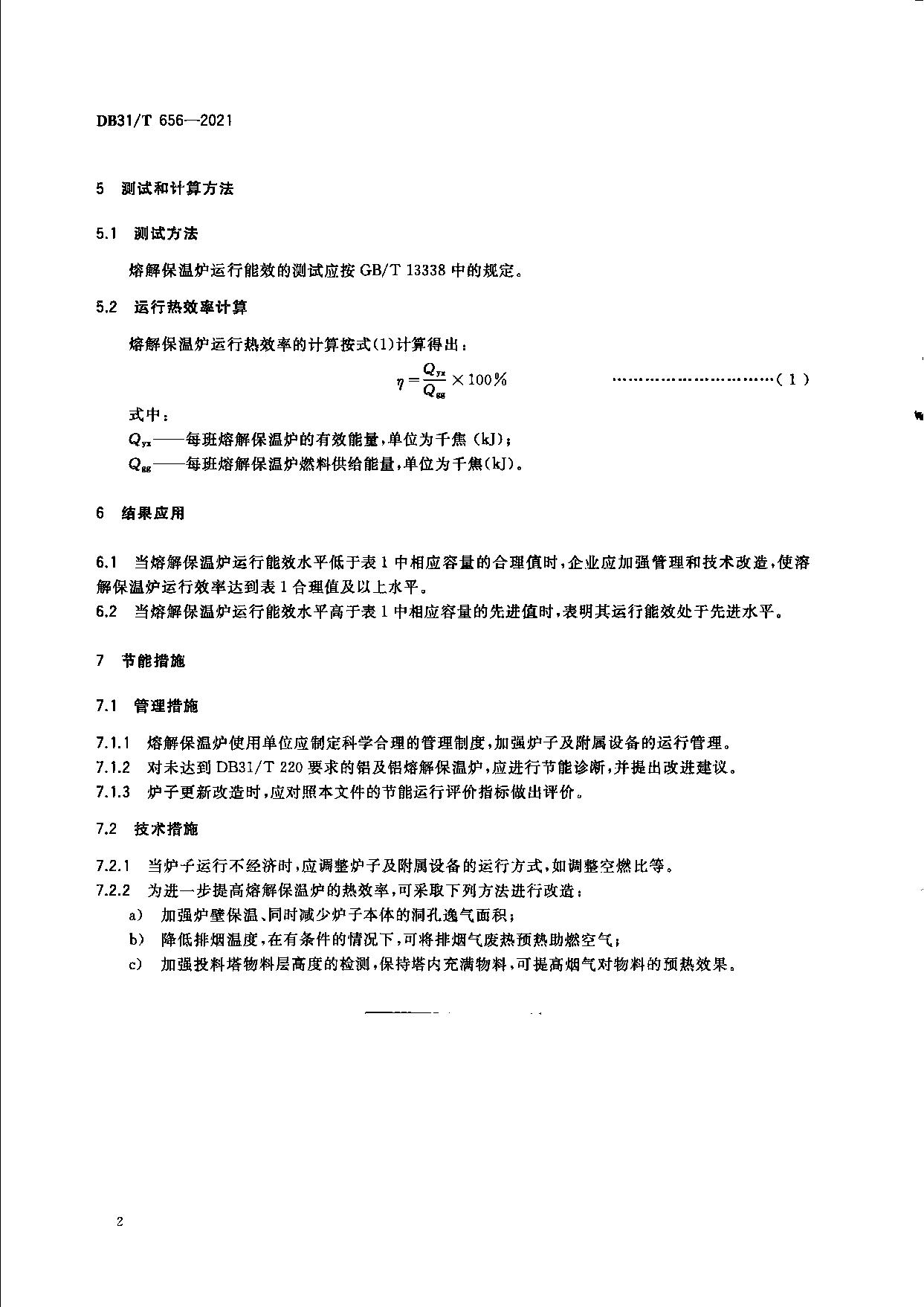 《铝及铝合金熔解保温炉节能运行评价指标》(DB31/T 656-2021)