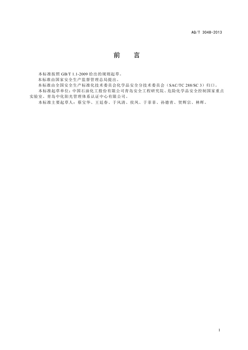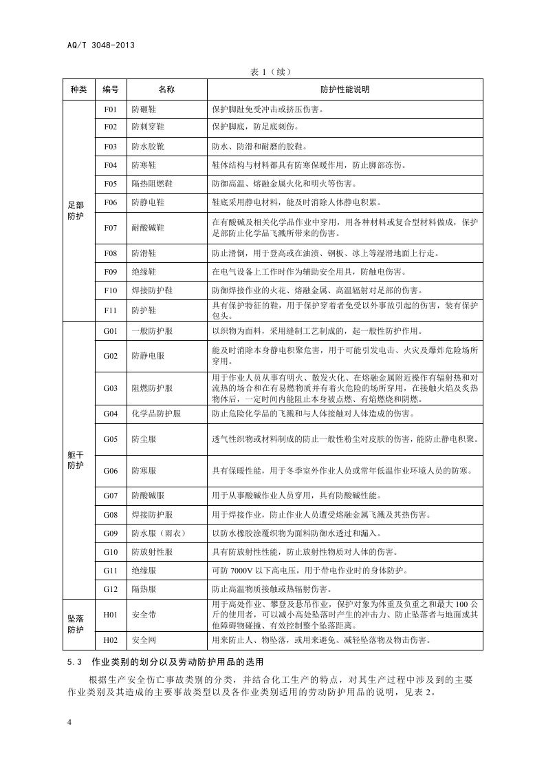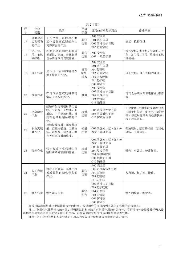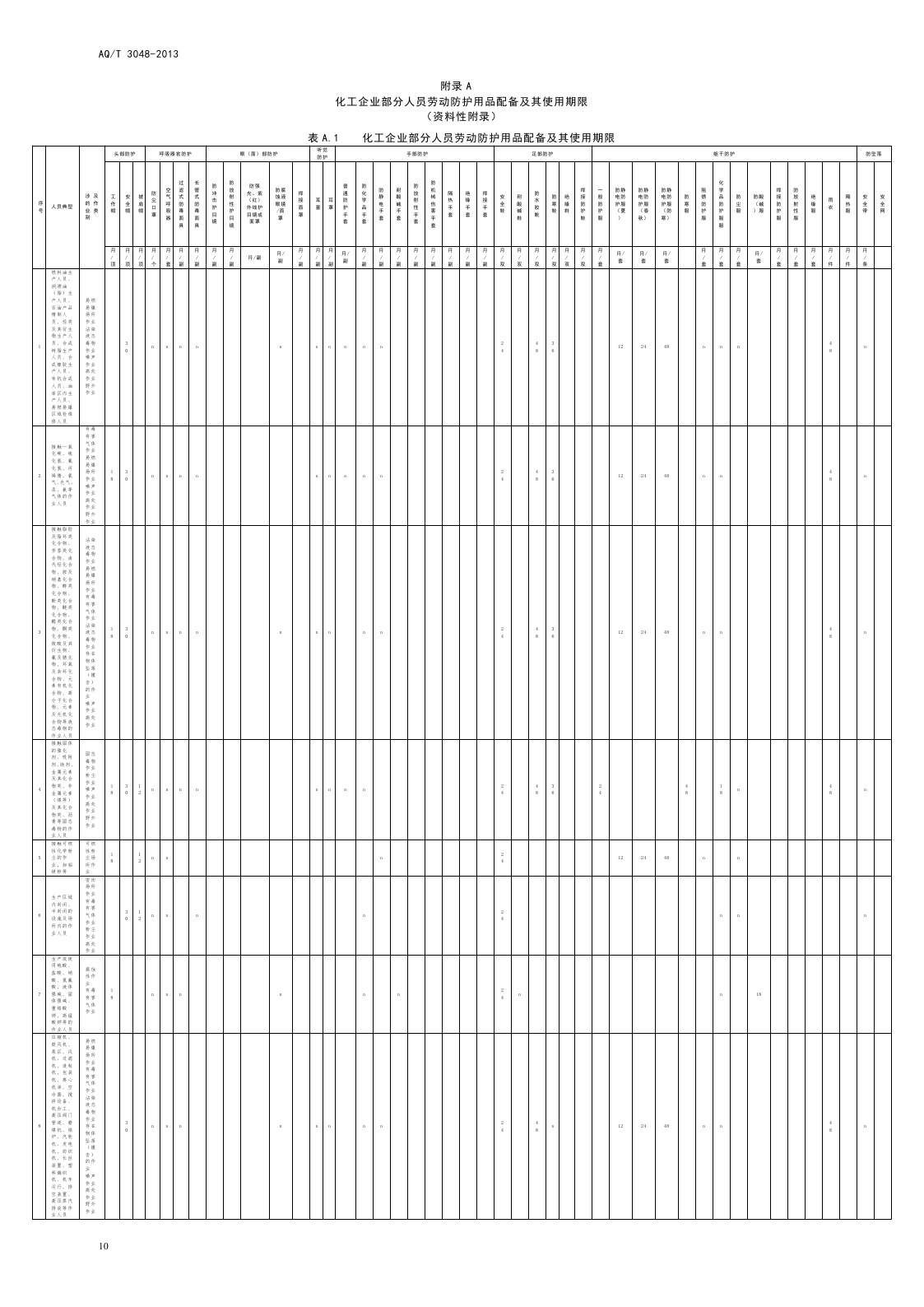 《化工企业劳动防护用品选用及配备(报批稿)》(AQ∕T3048-2013)