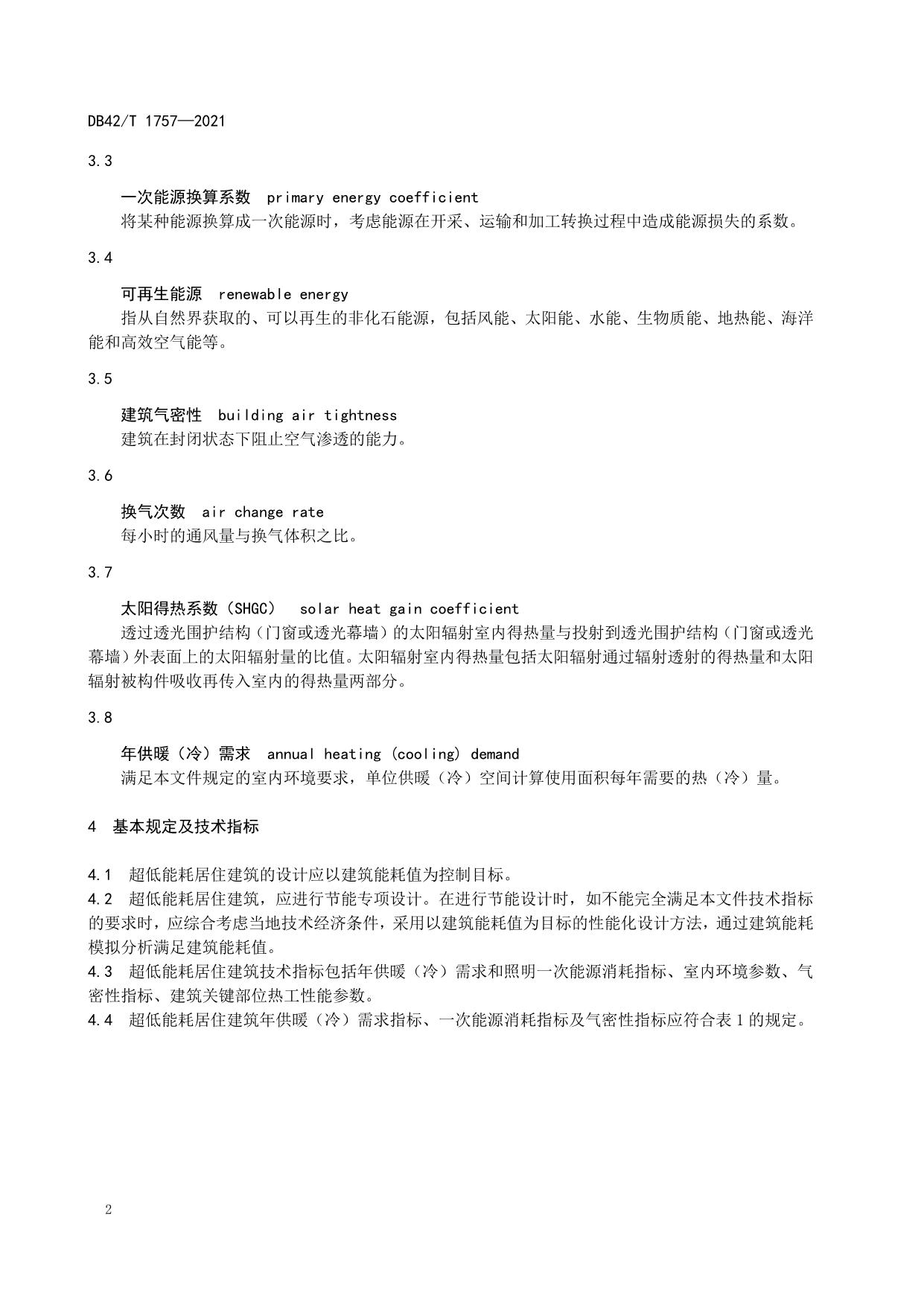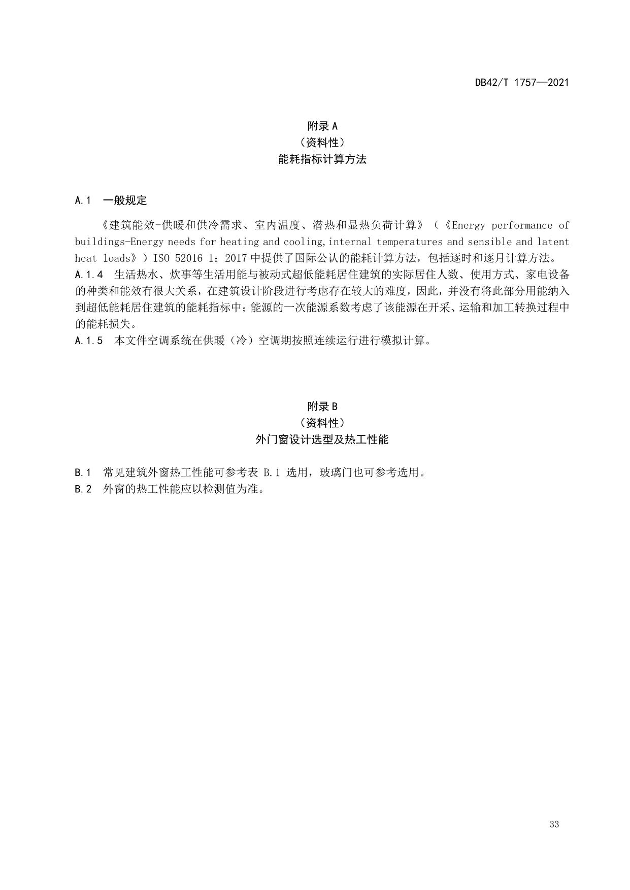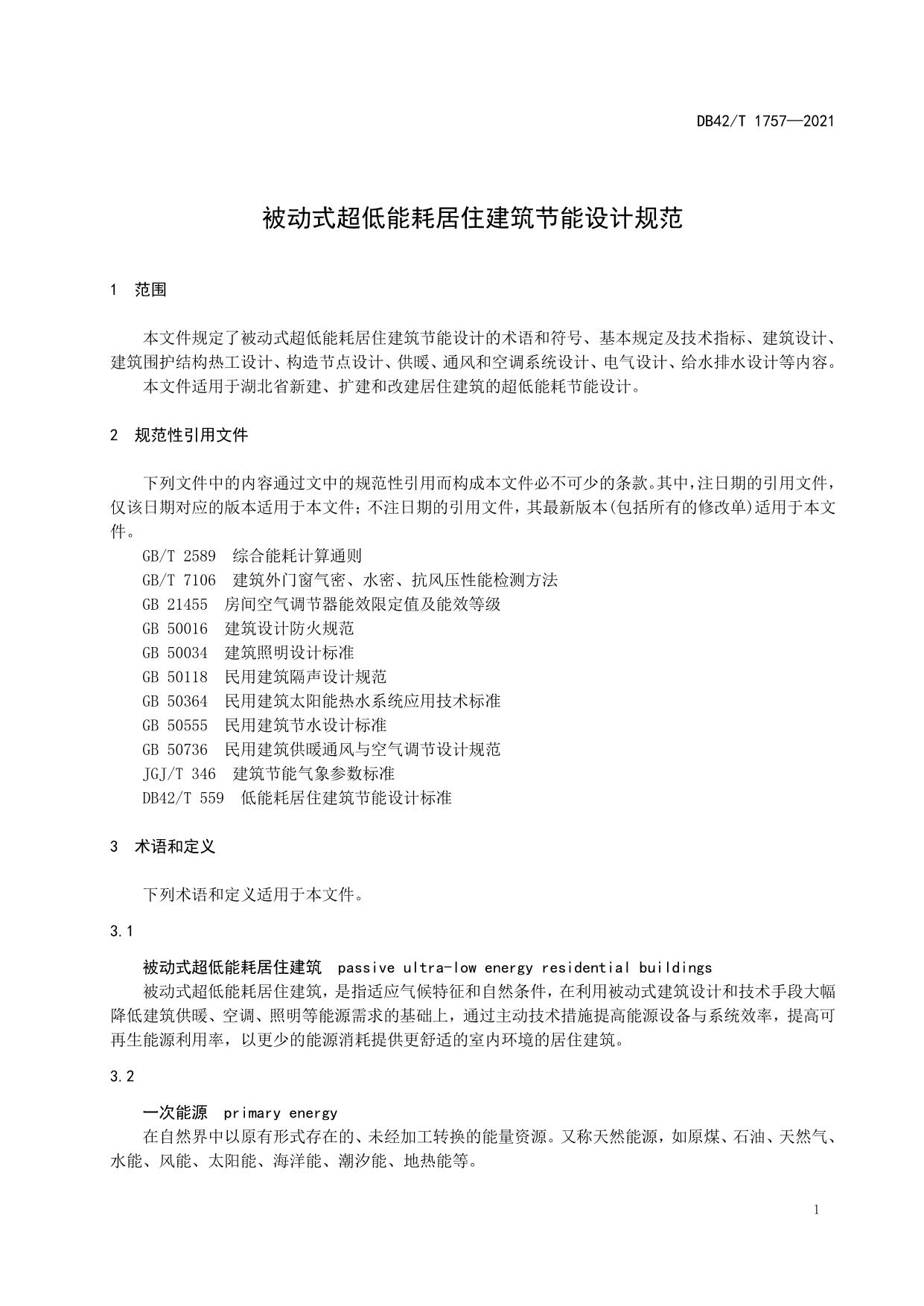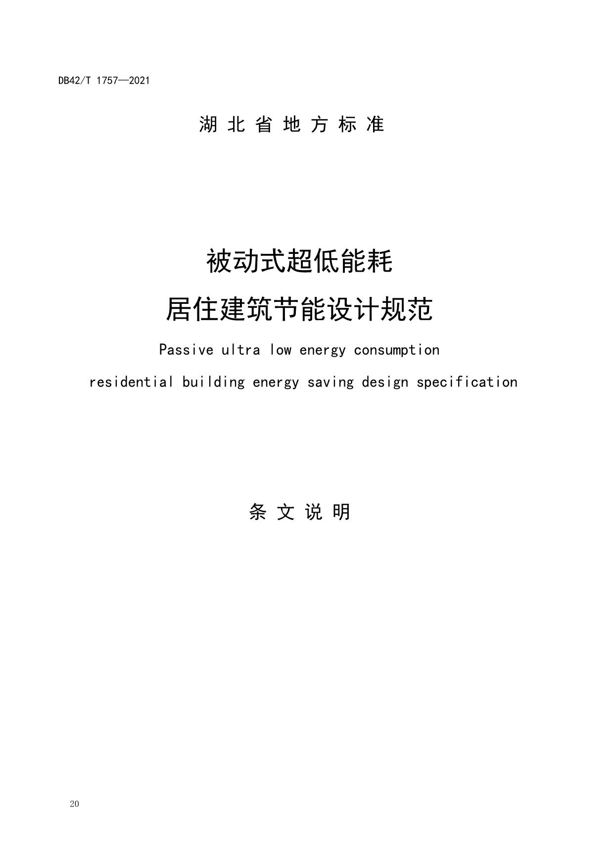 《被动式超低能耗居住建筑节能设计规范》(DB42/T 1757-2021)