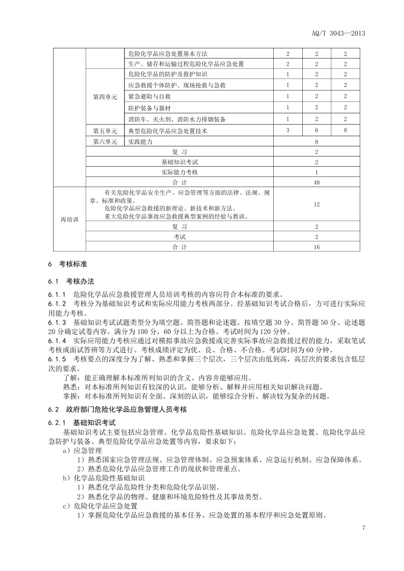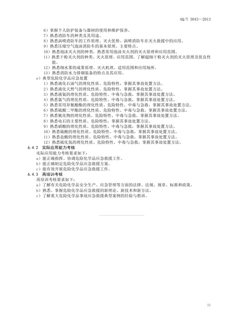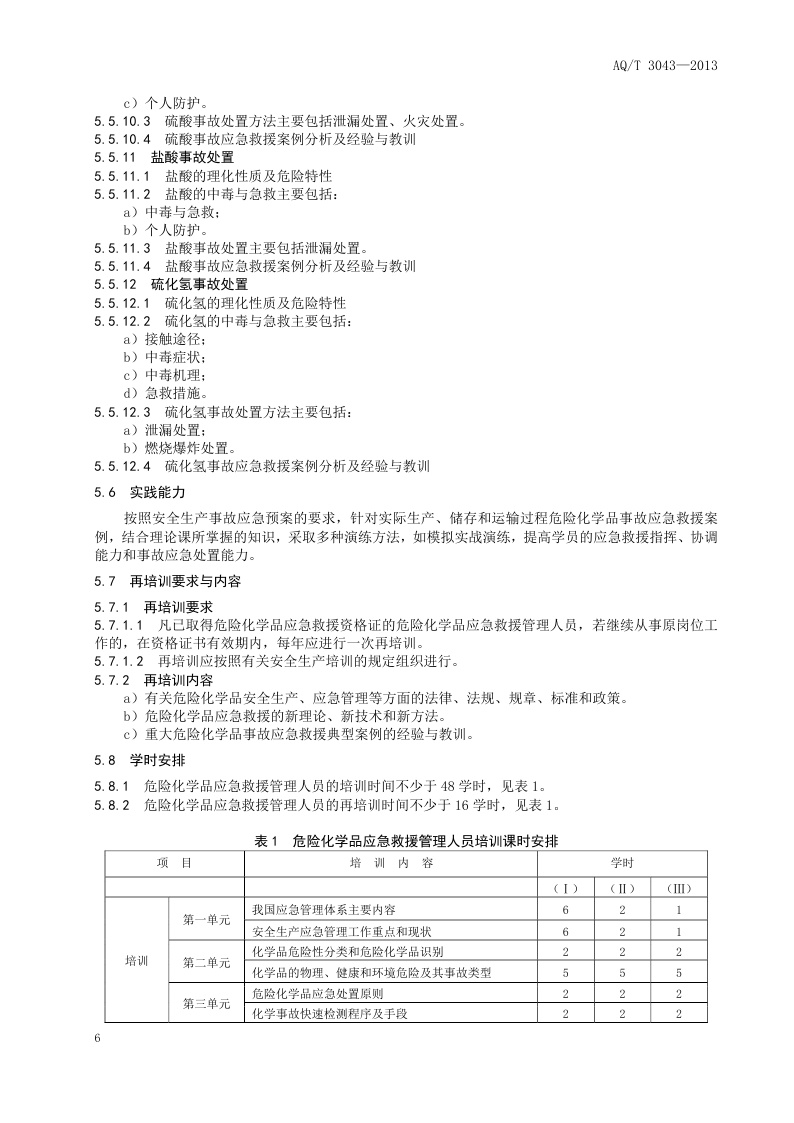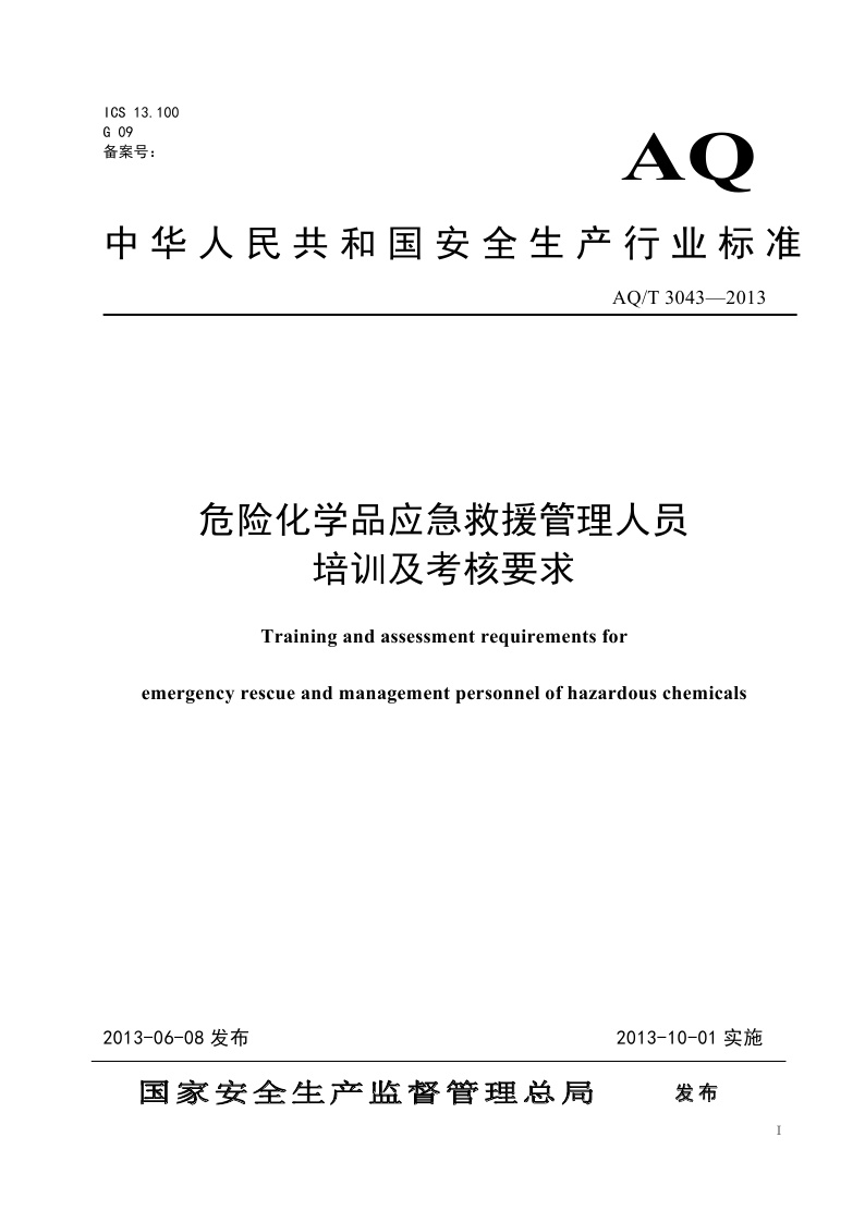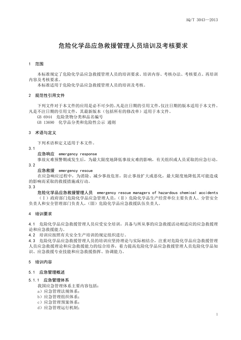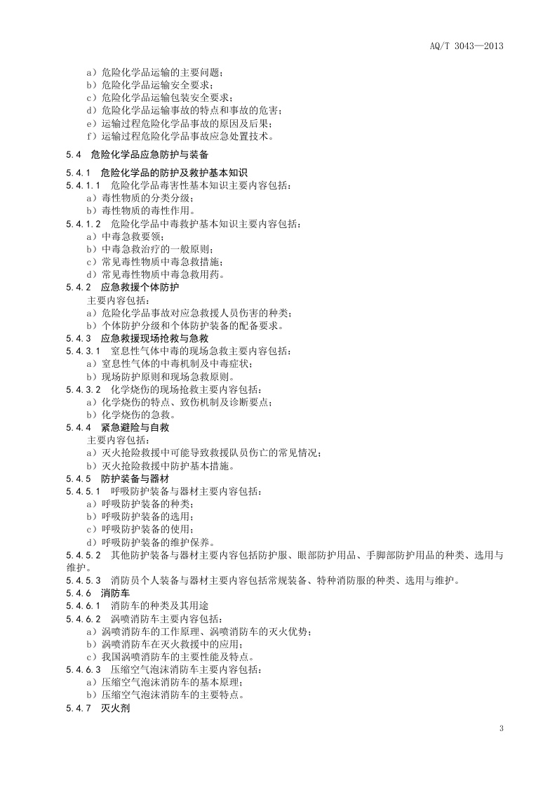 《危险化学品应急救援管理人员培训》(AQ∕T3043-2013)