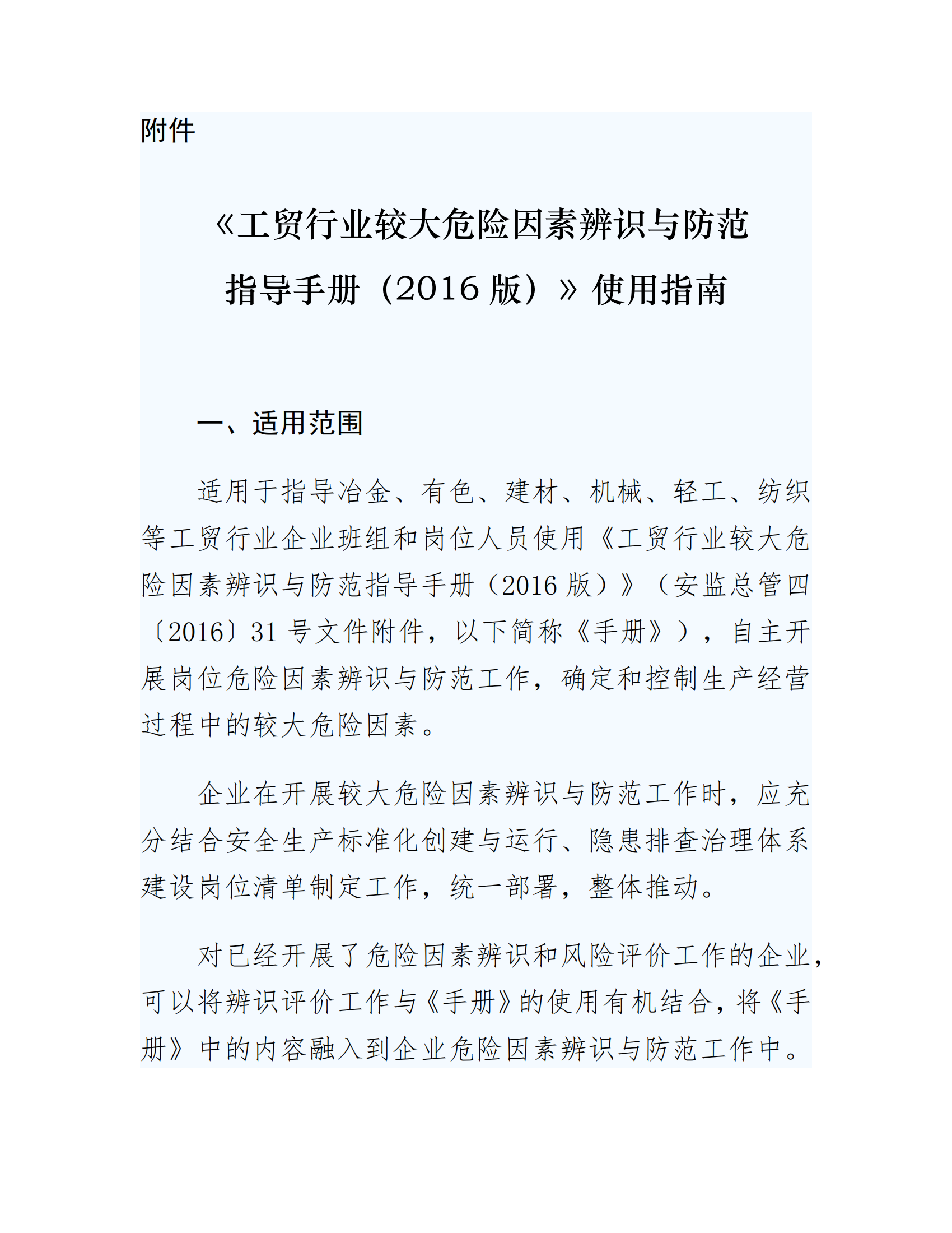 工贸行业较大危险因素辨识与防范指导手册