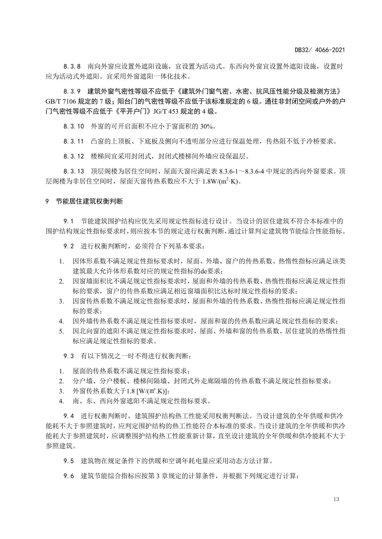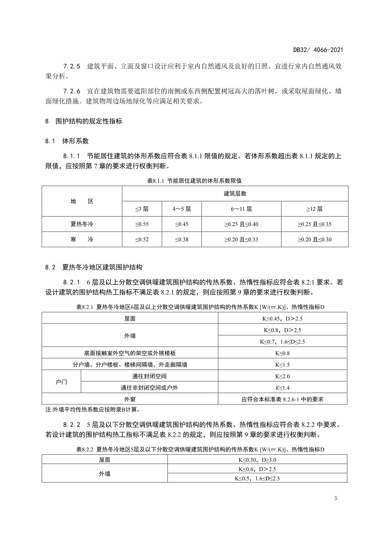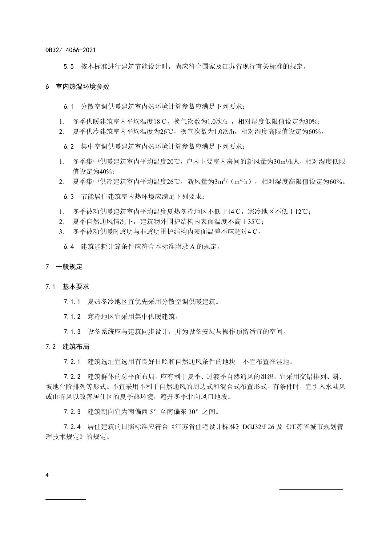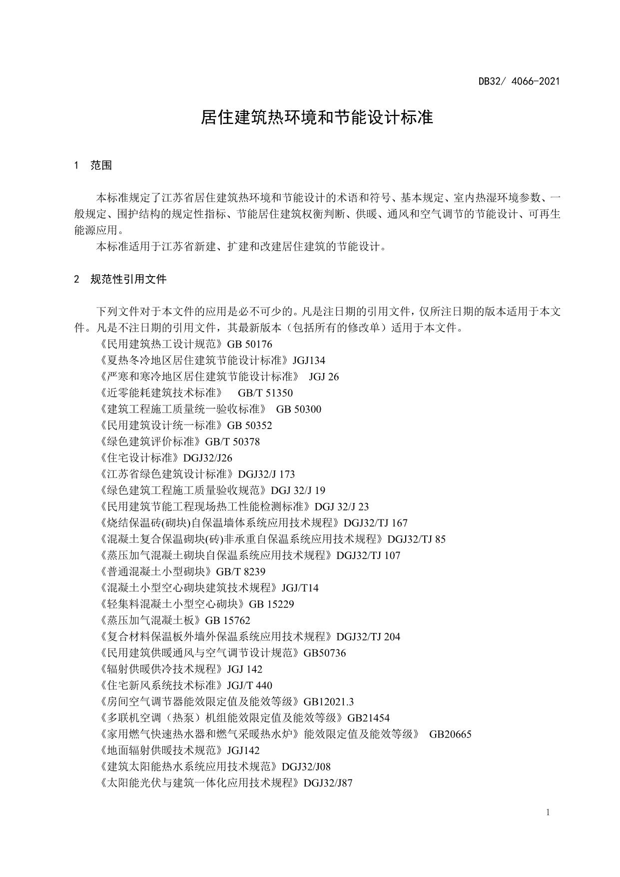 《居住建筑热环境和节能设计标准》(DB32/ 4066-2021)