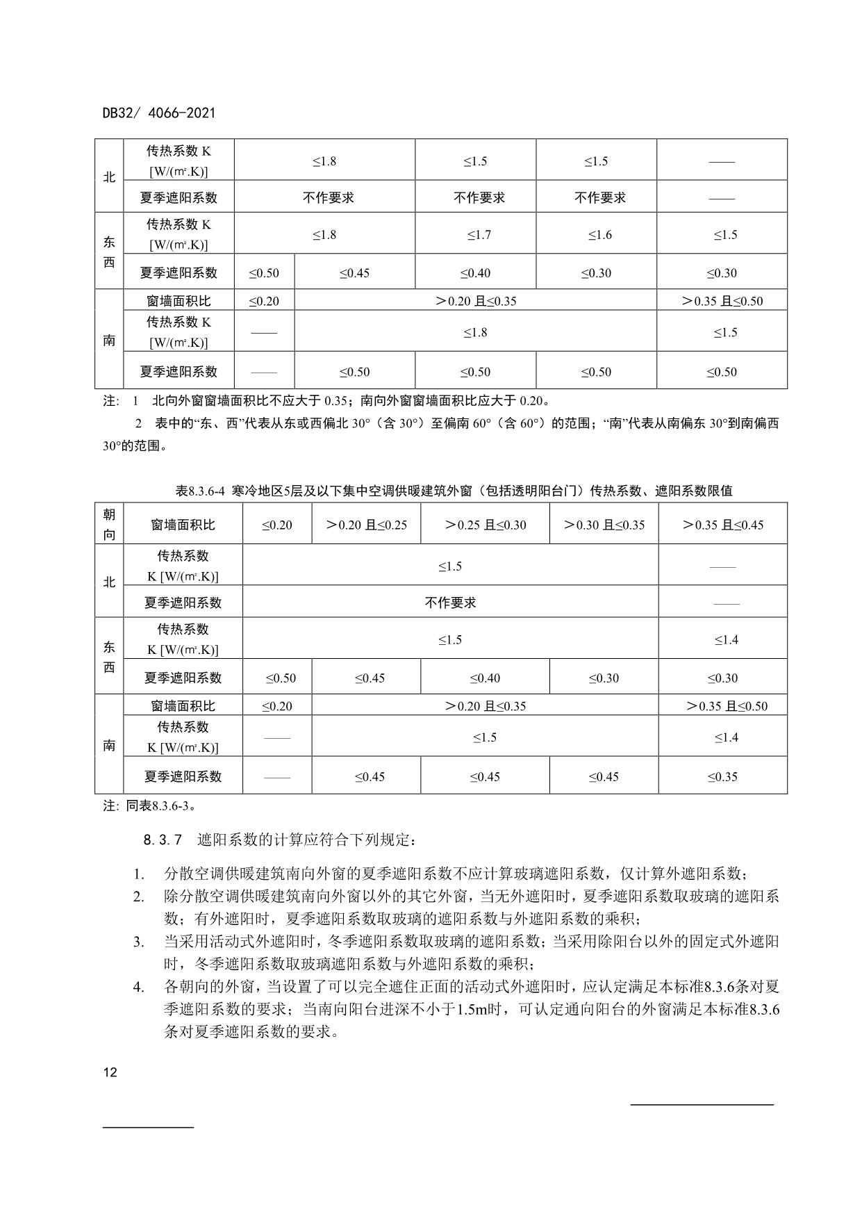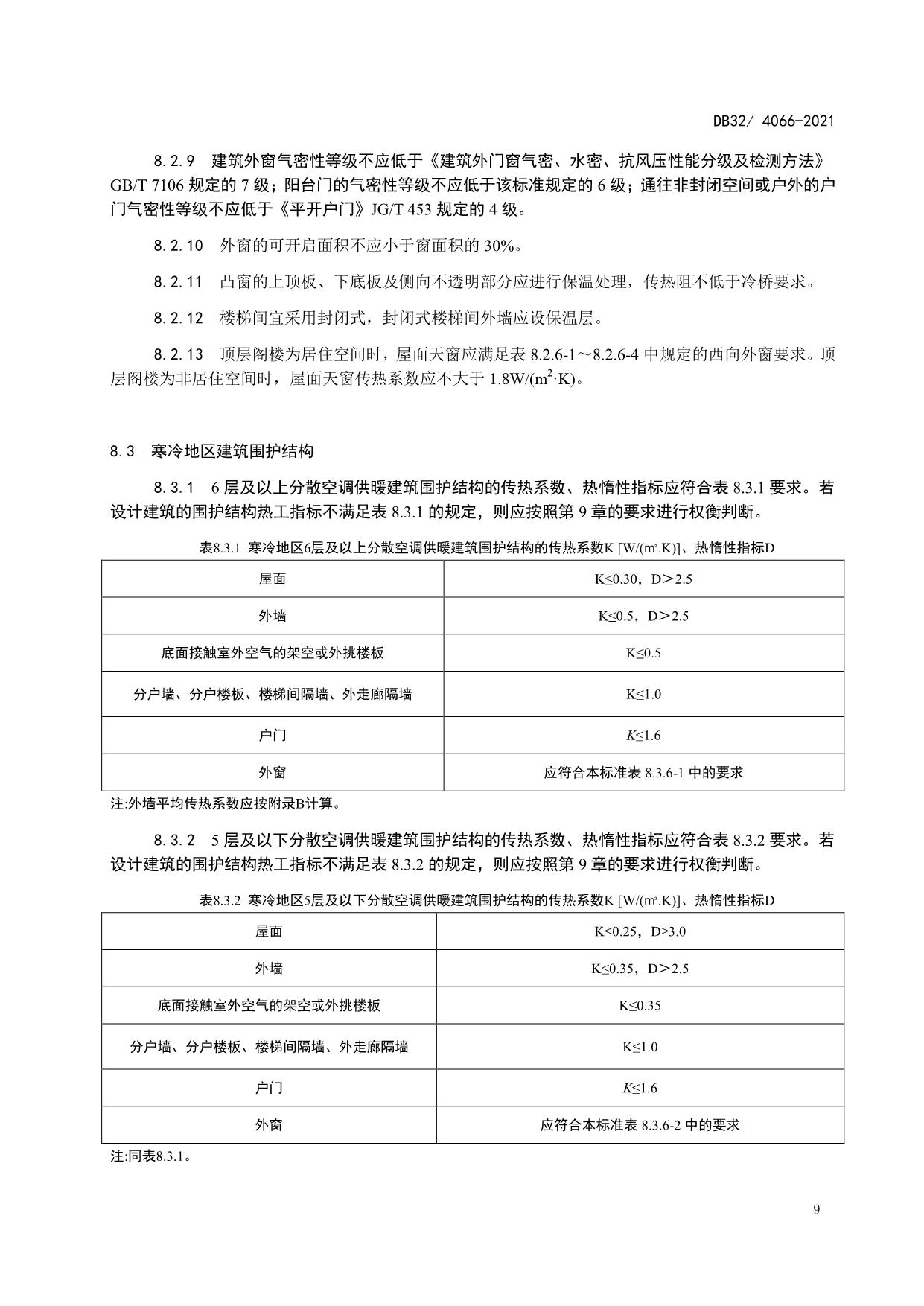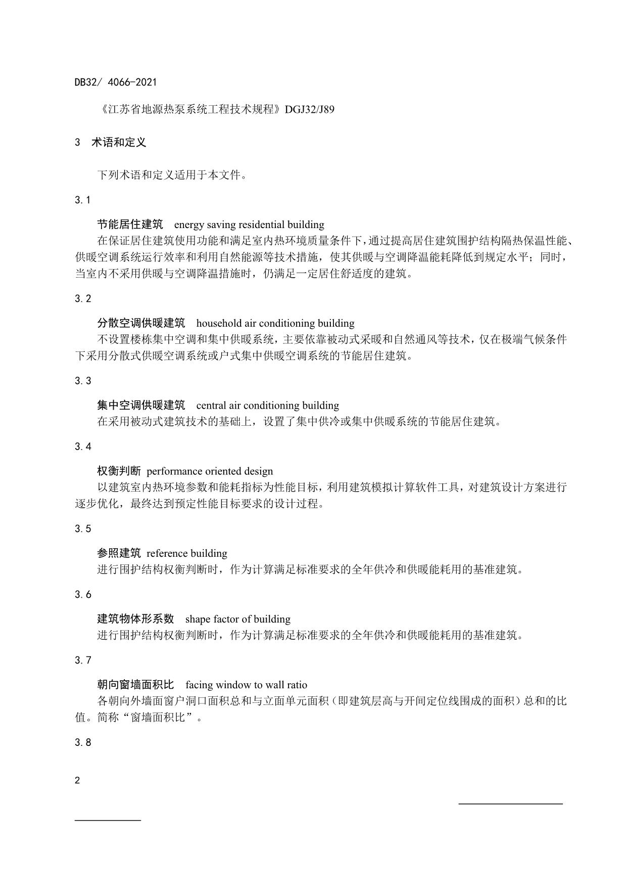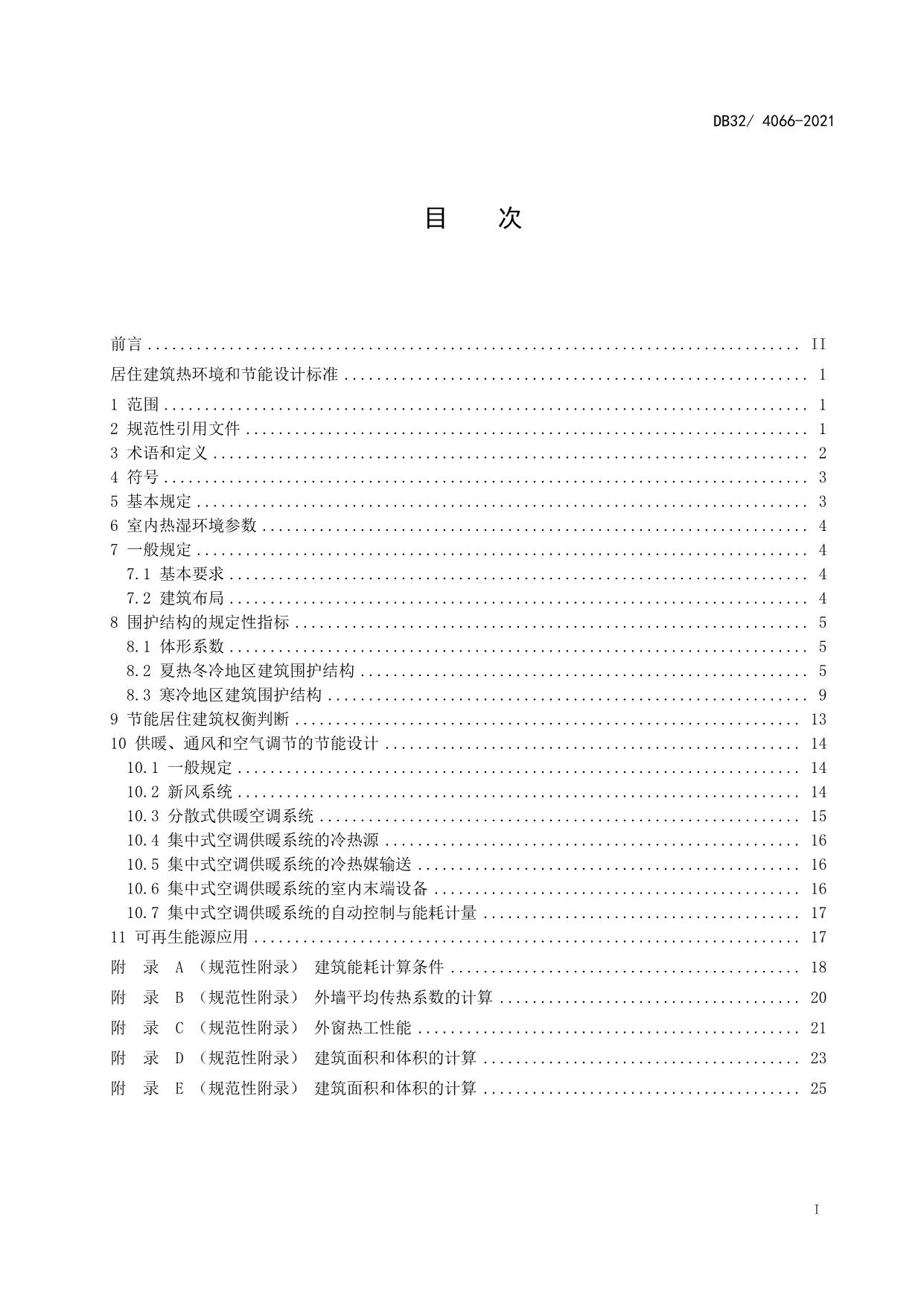 《居住建筑热环境和节能设计标准》(DB32/ 4066-2021)