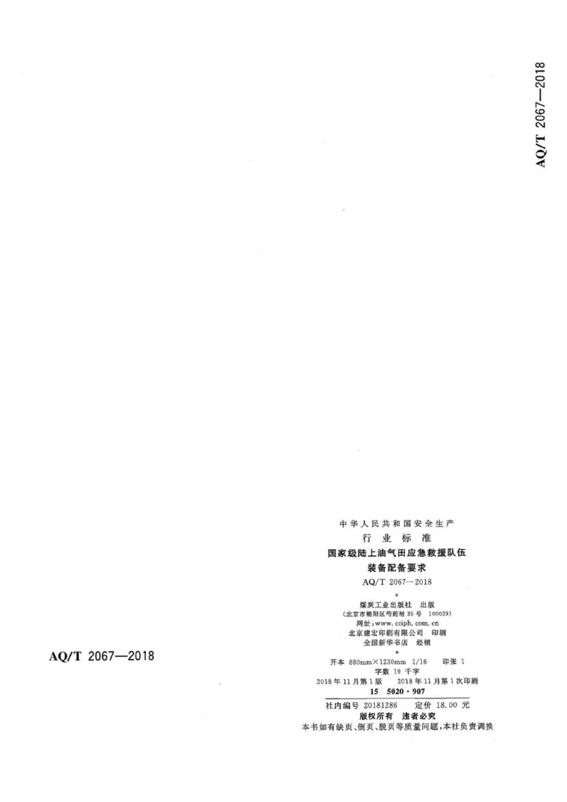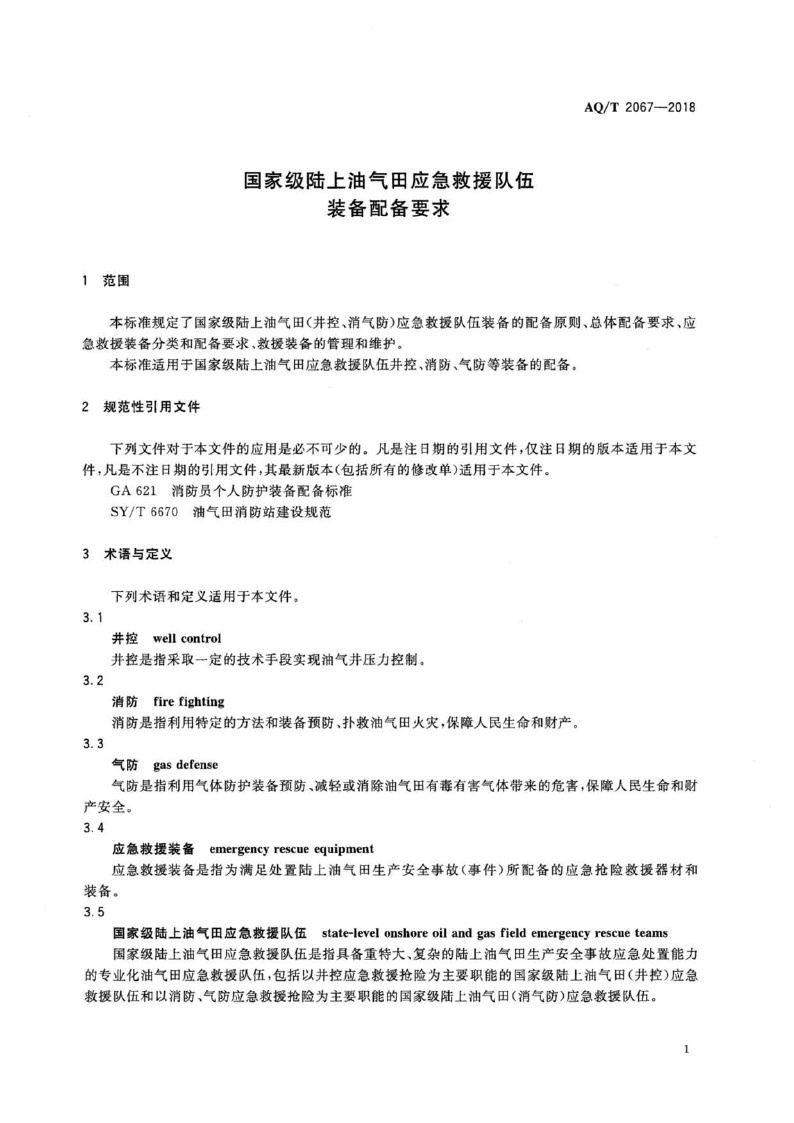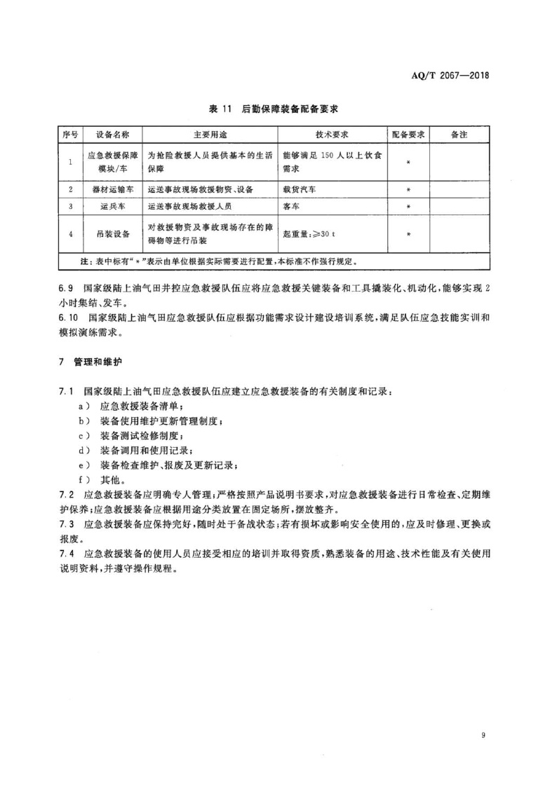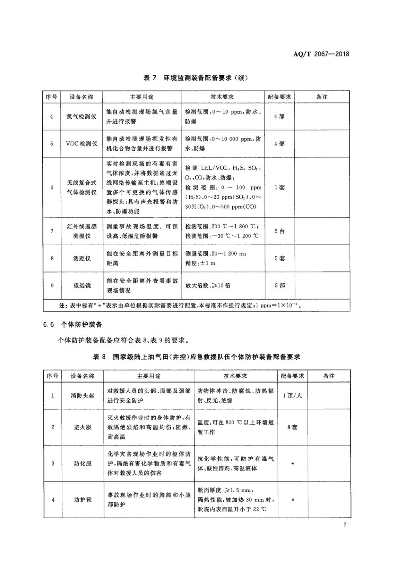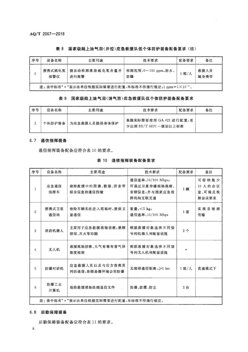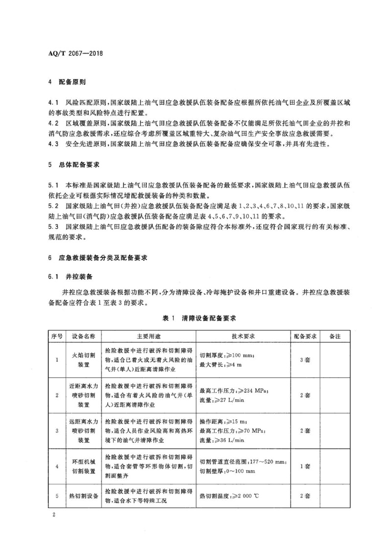 《国家级陆上油气田应急救援队伍装备配备要求》(AQ∕T2067-2018)