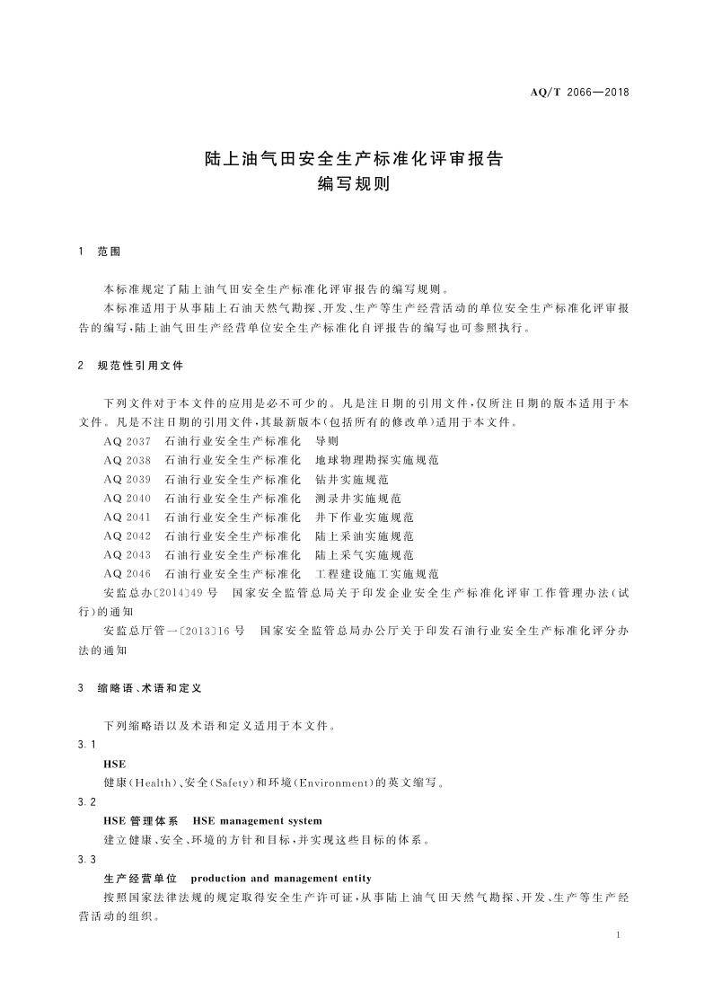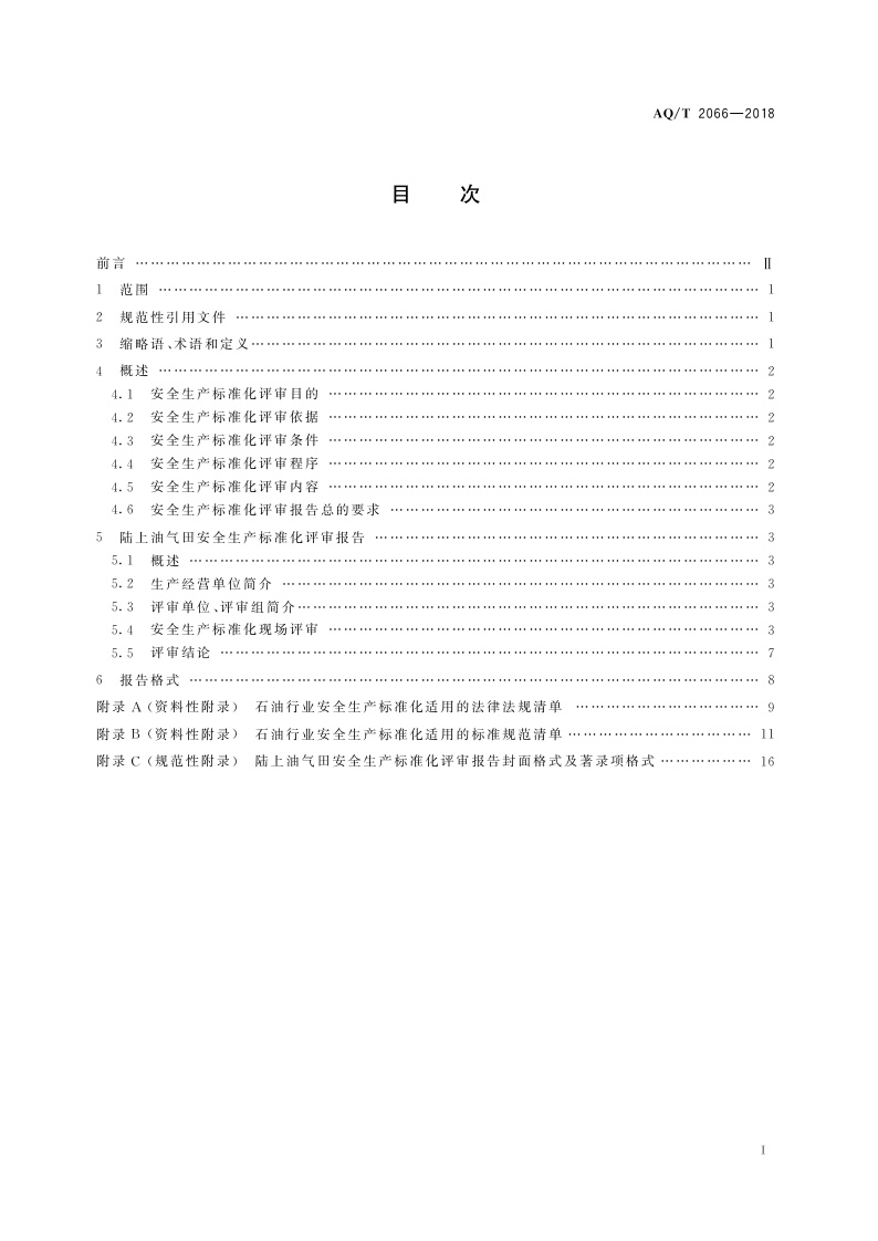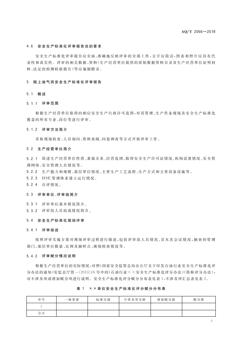 《陆上油气田安全生产标准化评审报告编写规则》(AQ∕T2066-2018)