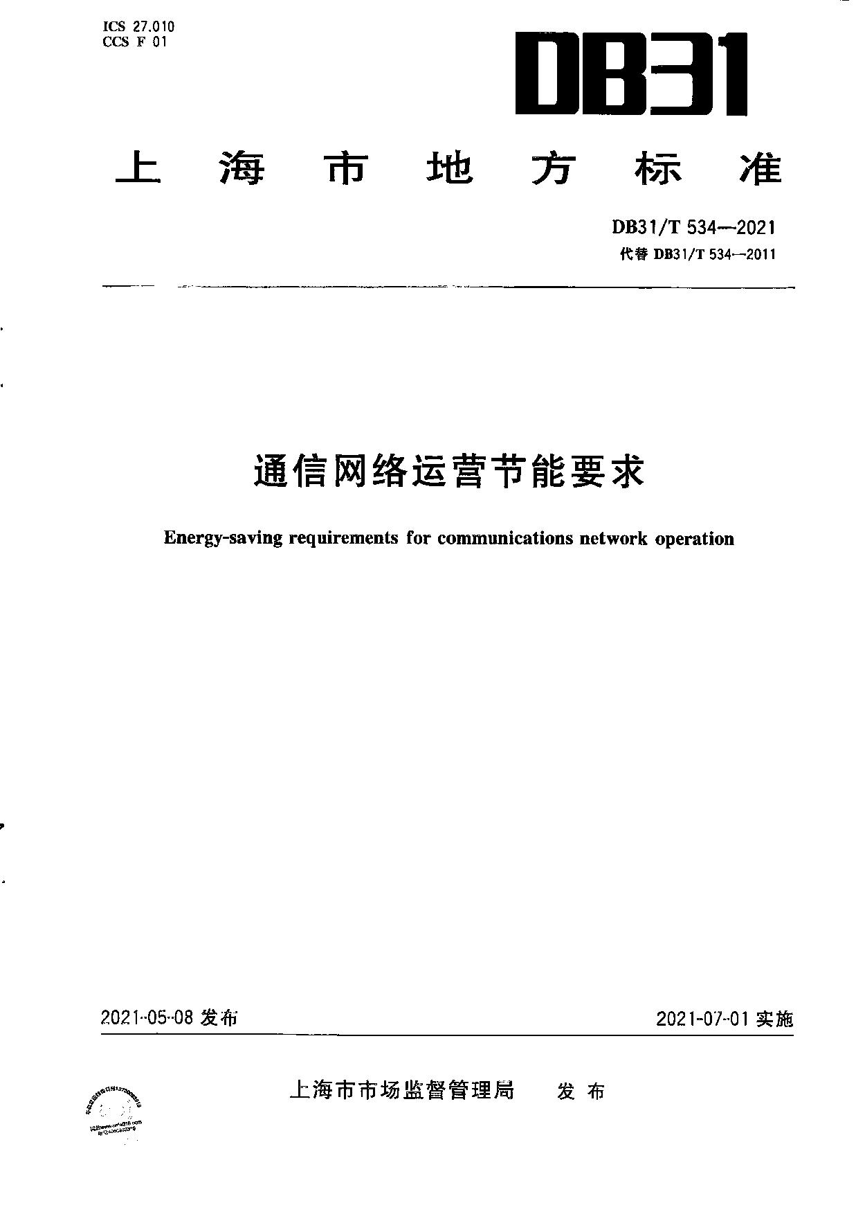 《通信网络运营节能要求》(DB31/T 534-2021 )