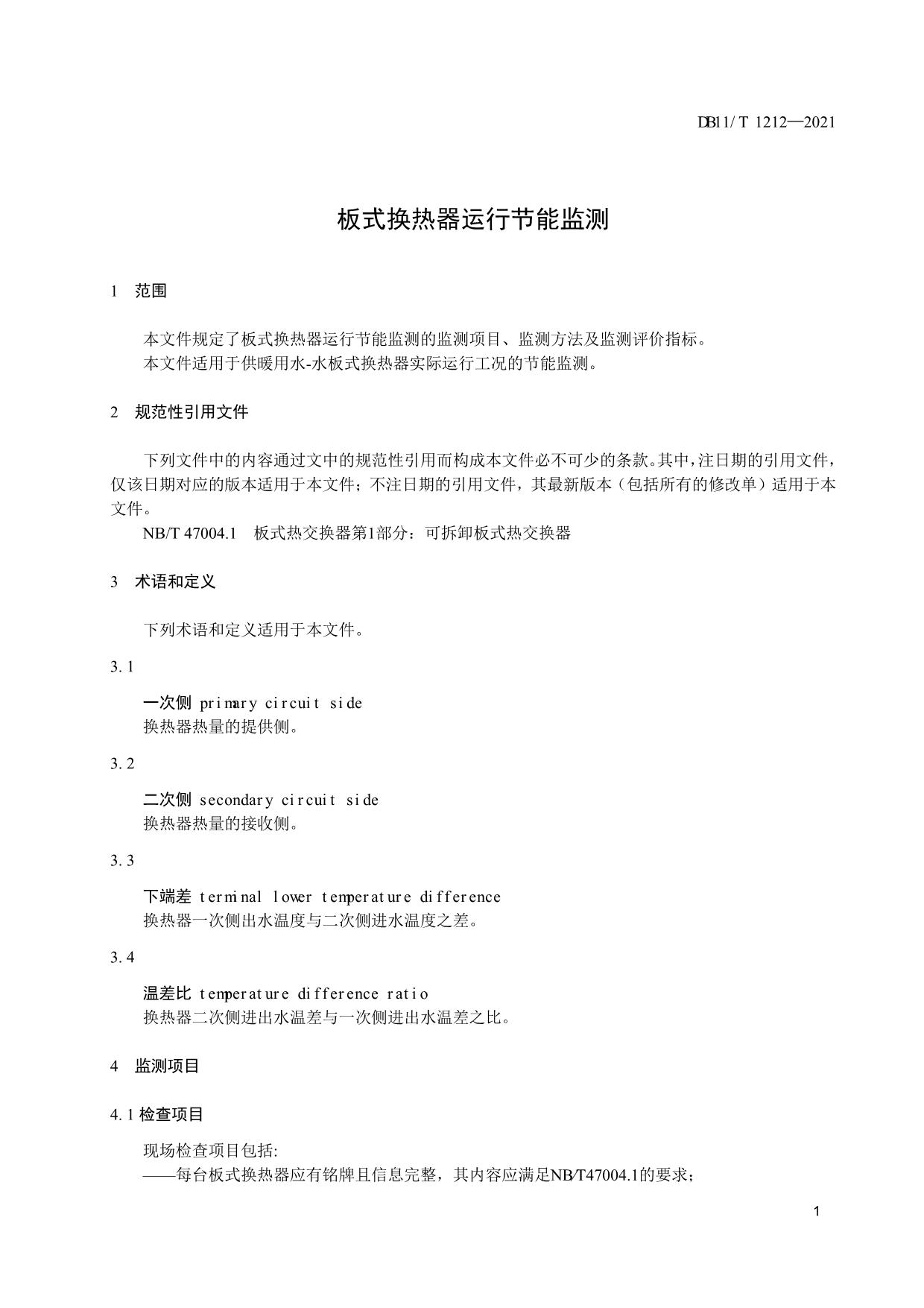 《板式换热器运行节能监测》(DB11/T 1212-2021)