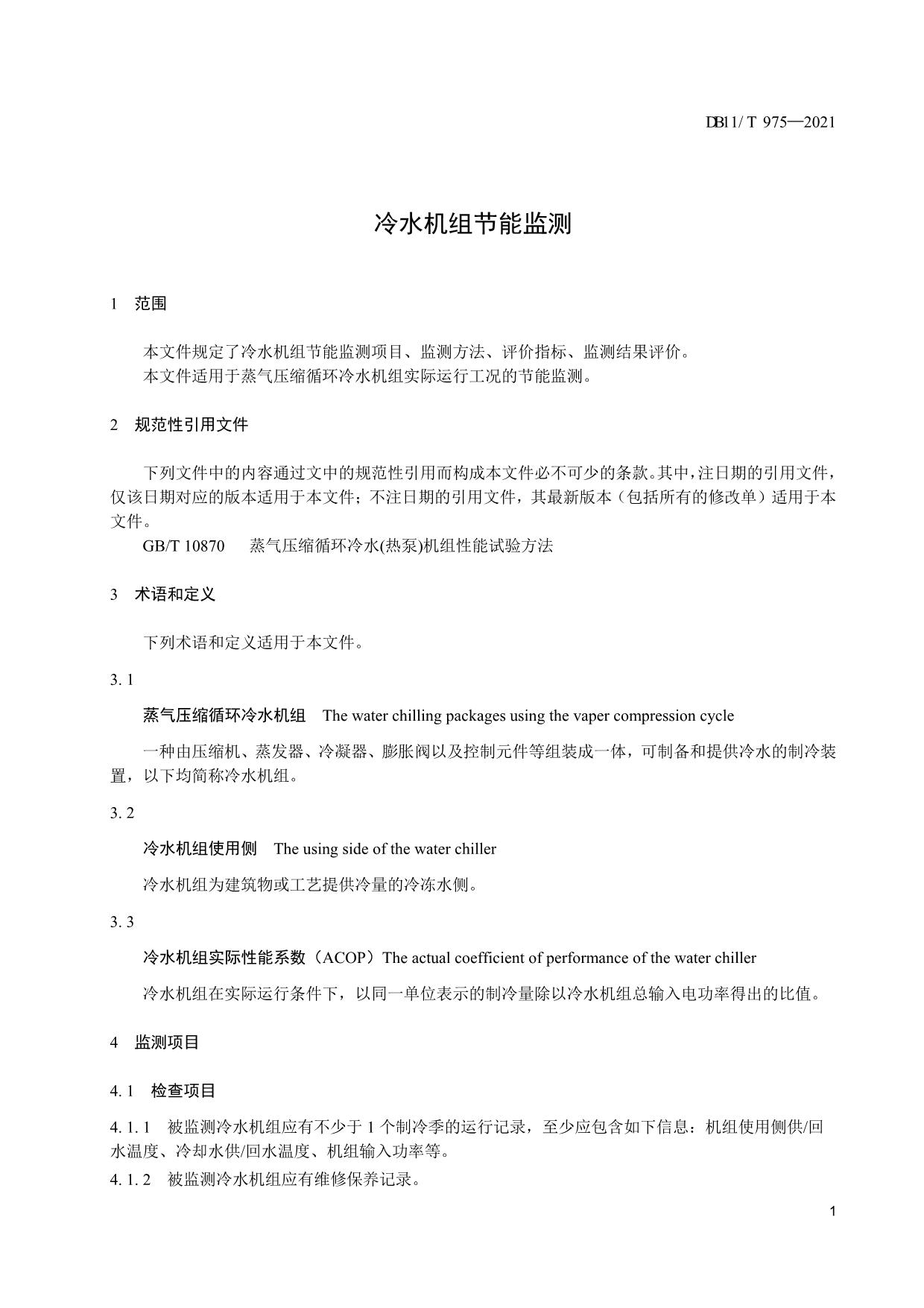 《冷水机组节能监测》(DB11/T 975-2021)
