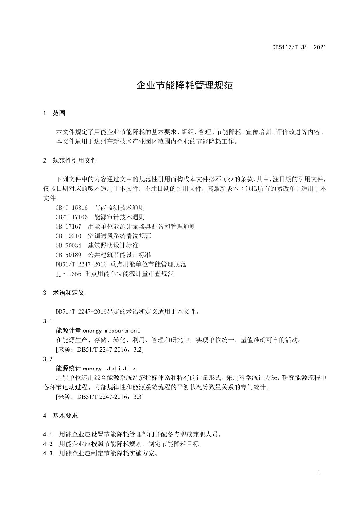 《企业节能降耗管理规范》(DB5117/T 36-2021 )