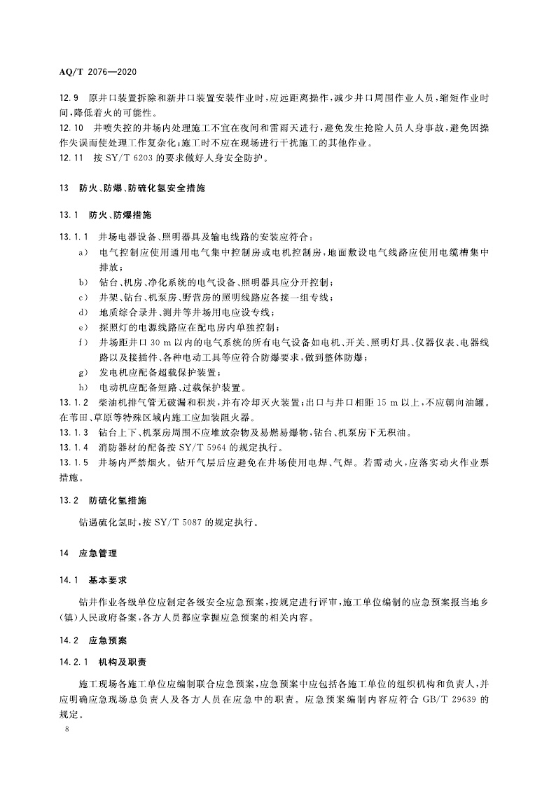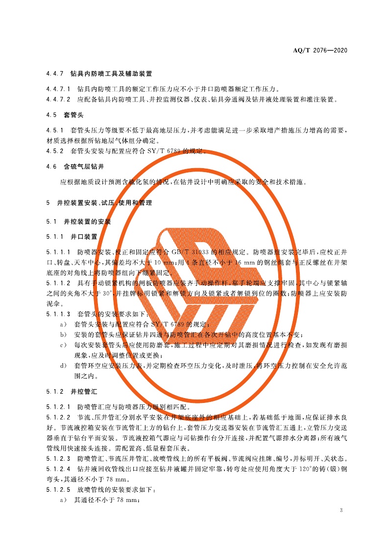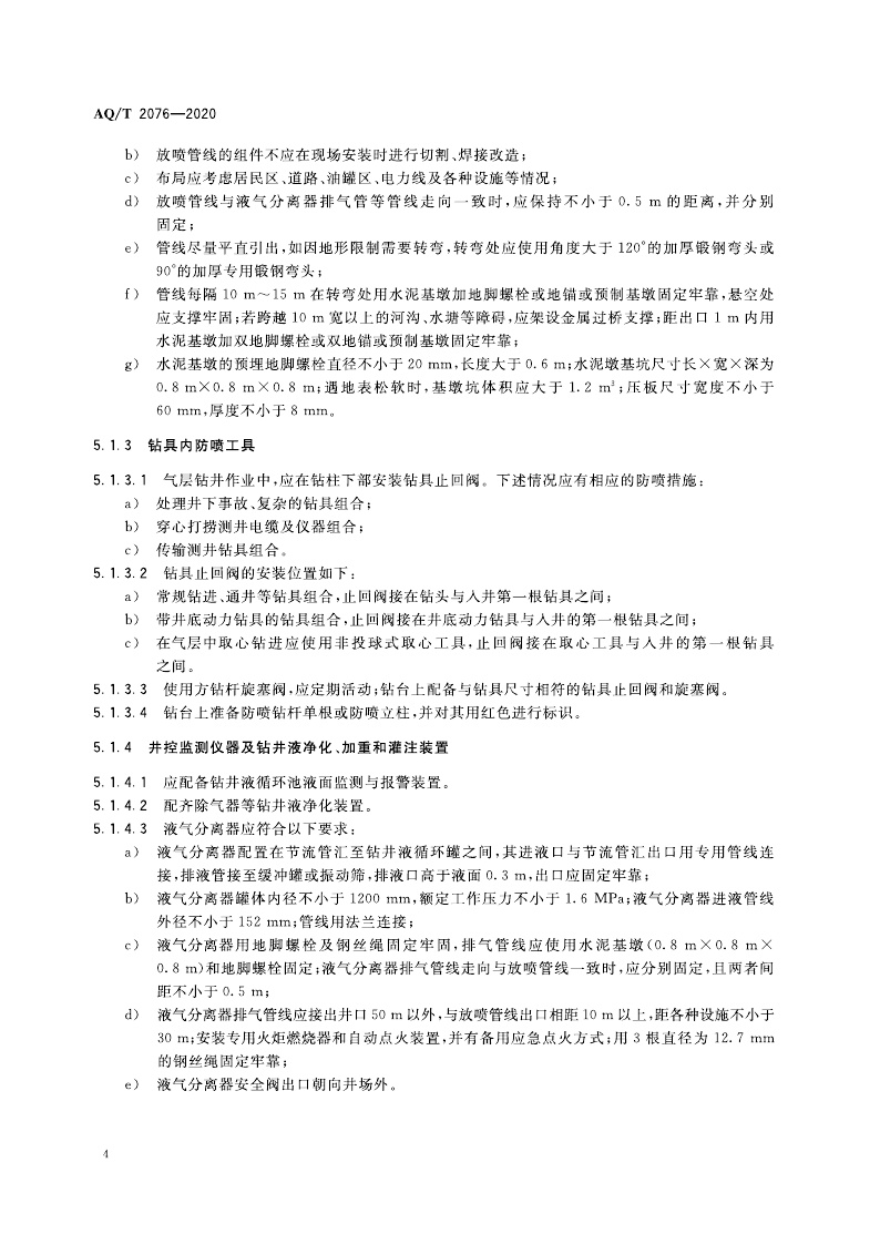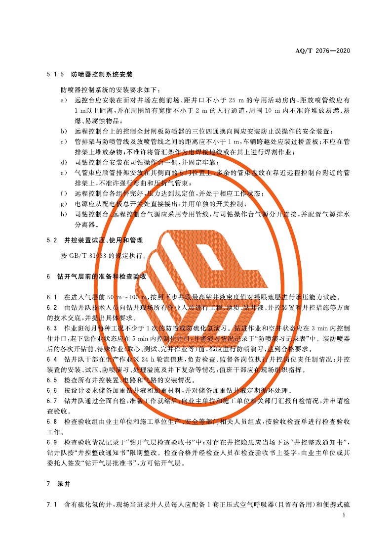 《页岩气钻井井控安全技术规范》(AQ / T2076-2020)
