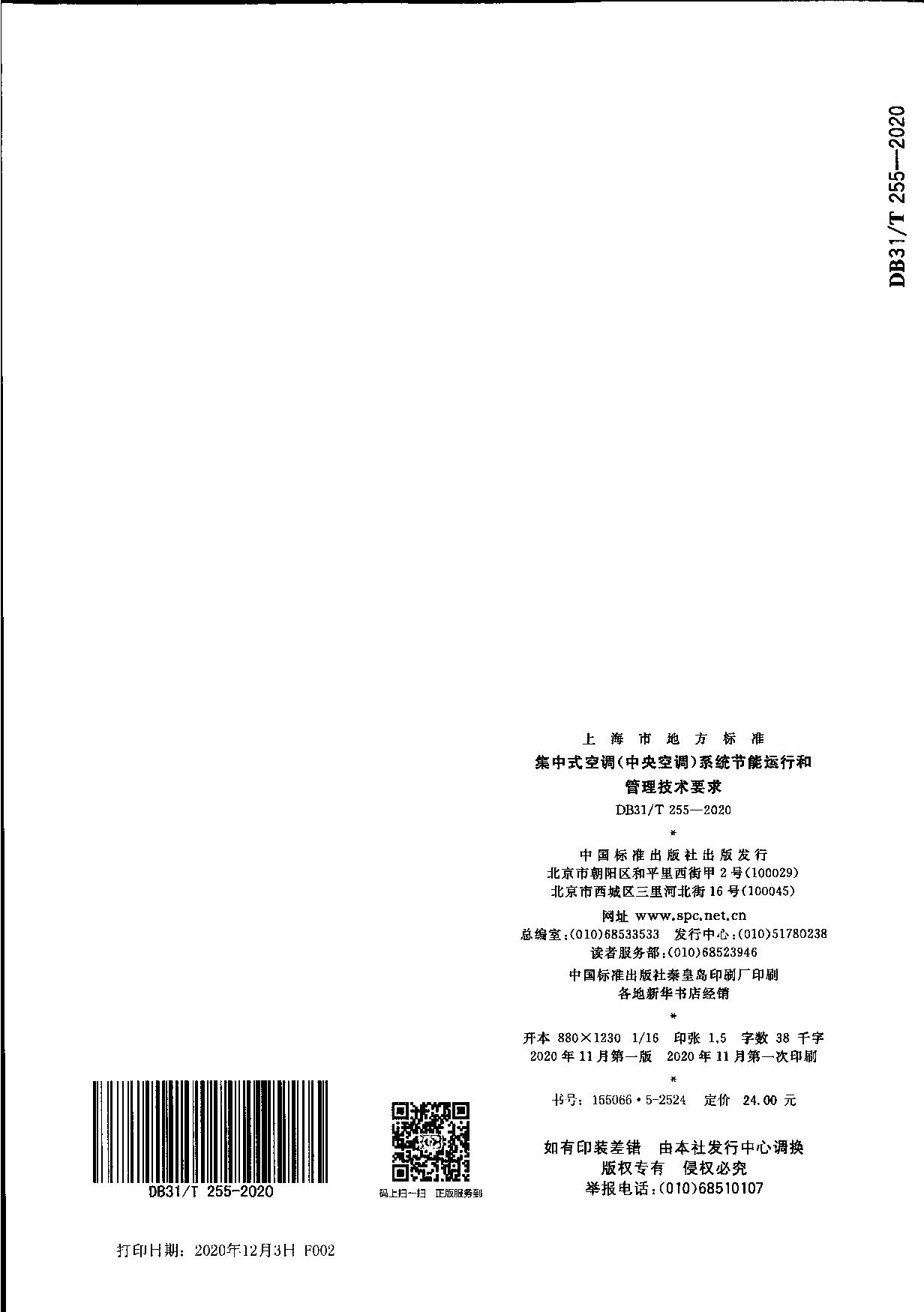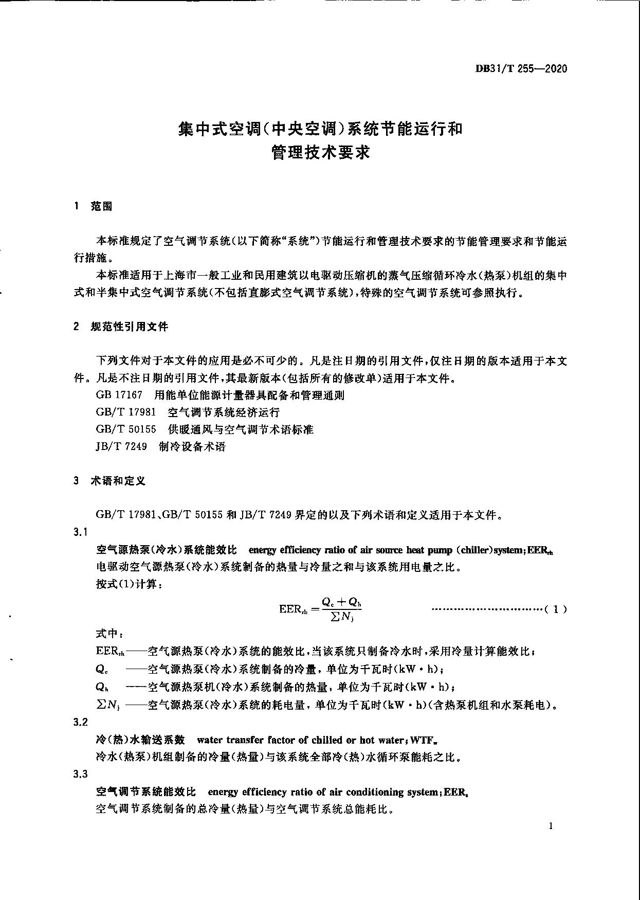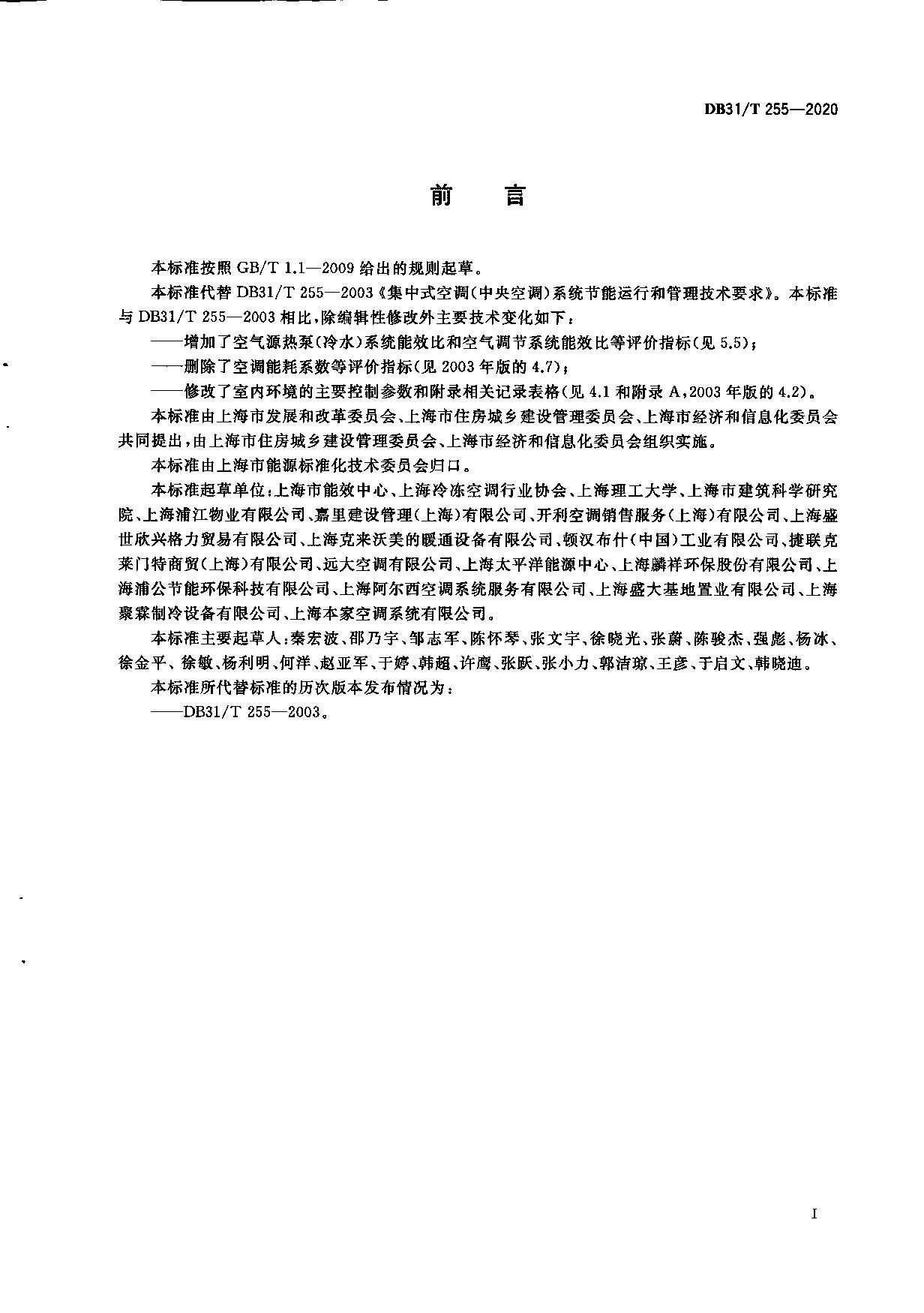 《集中式空调(中央空调)系统节能运行和管理技术要求》(DB31/T 255-2020)