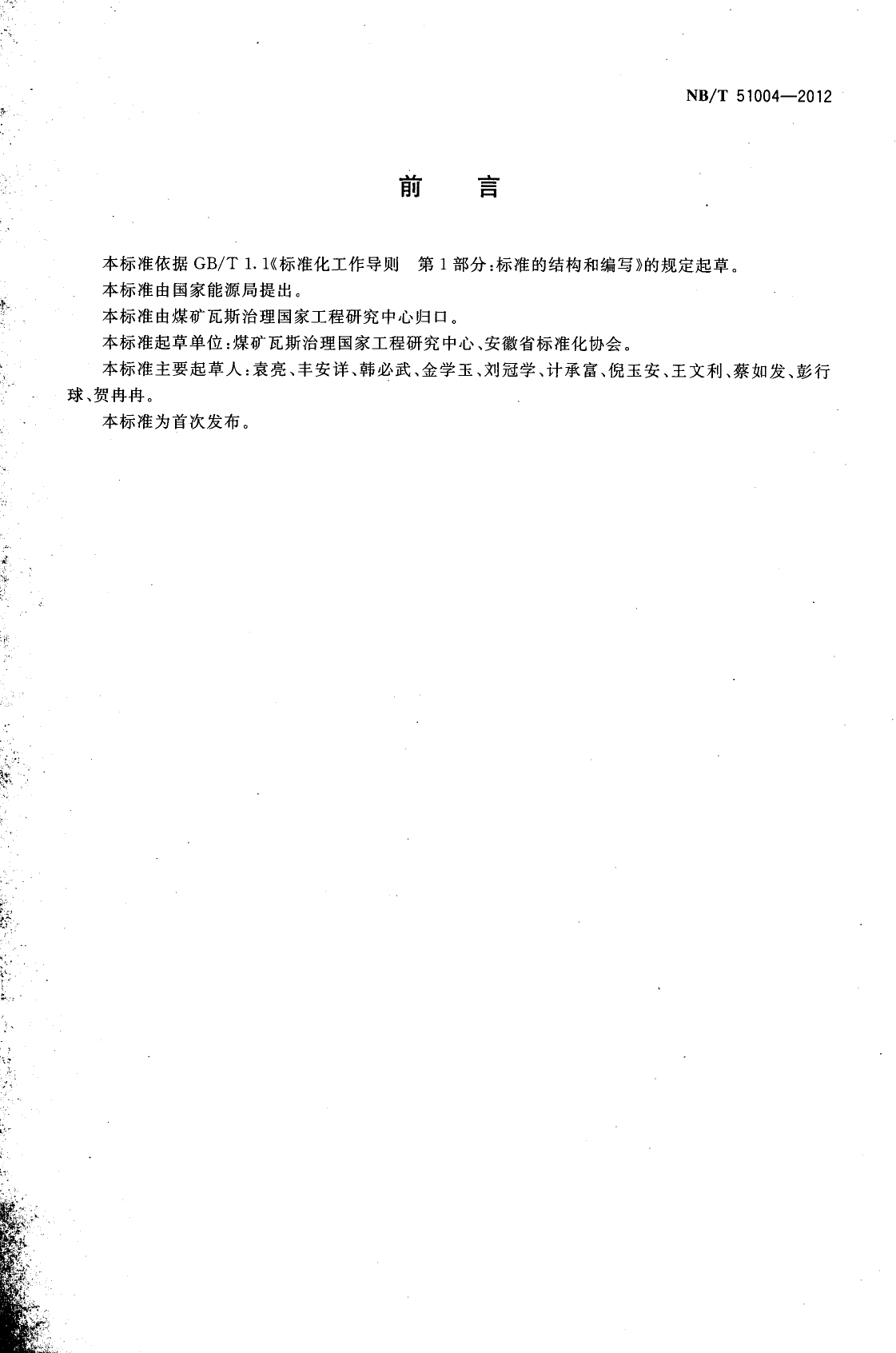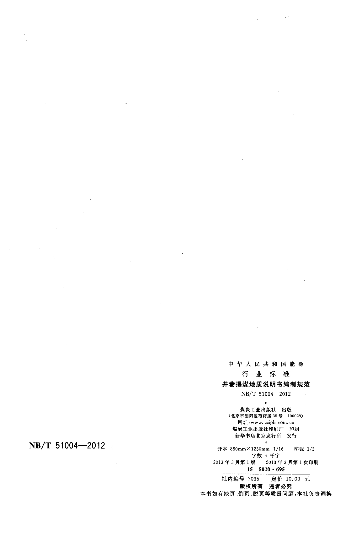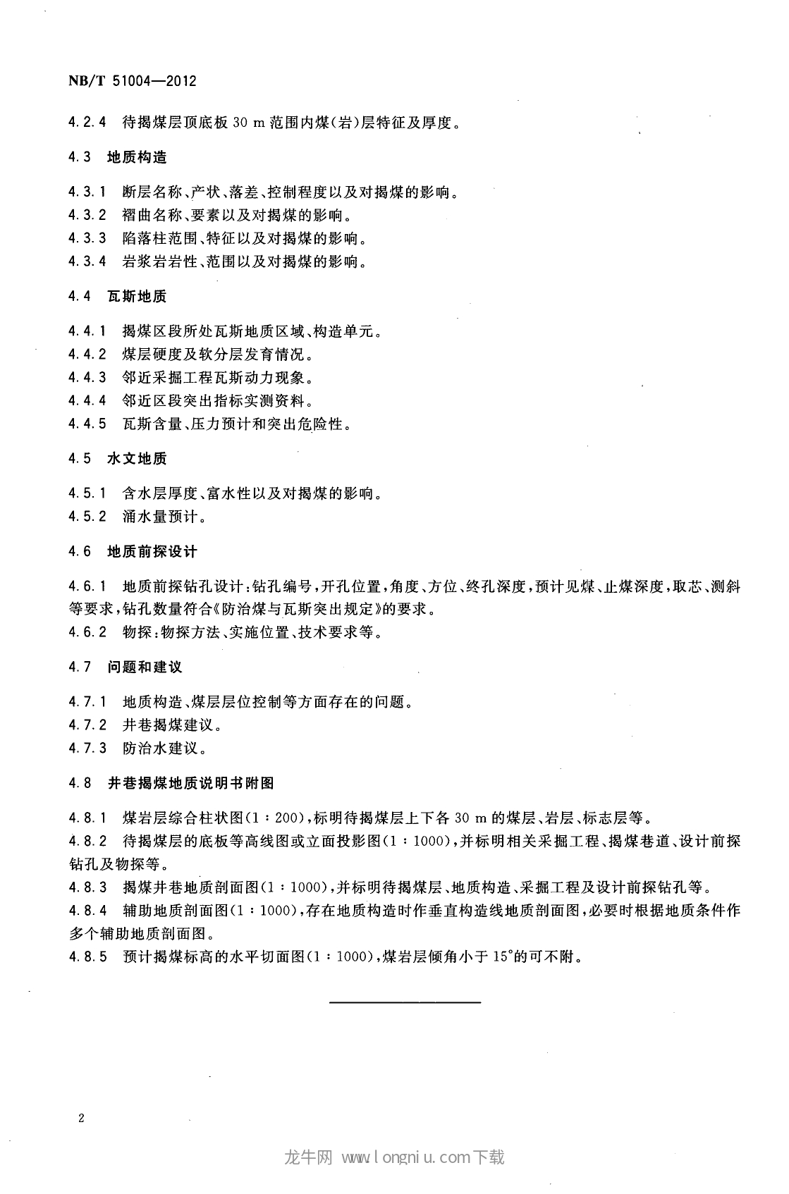 NBT51004-2012井巷揭煤地质说明书编制规范