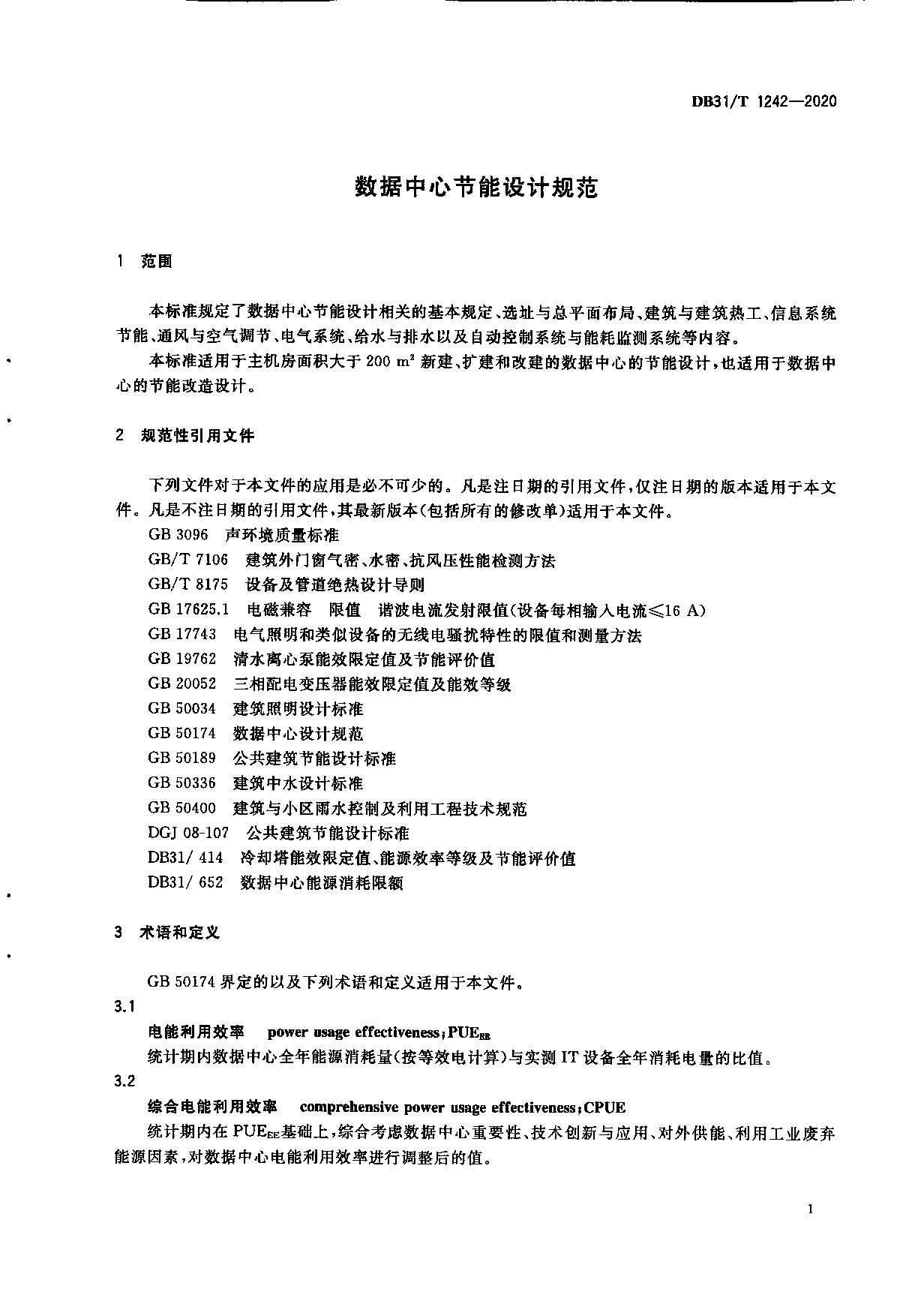 《数据中心节能设计规范》(DB31/T 1242-2020)