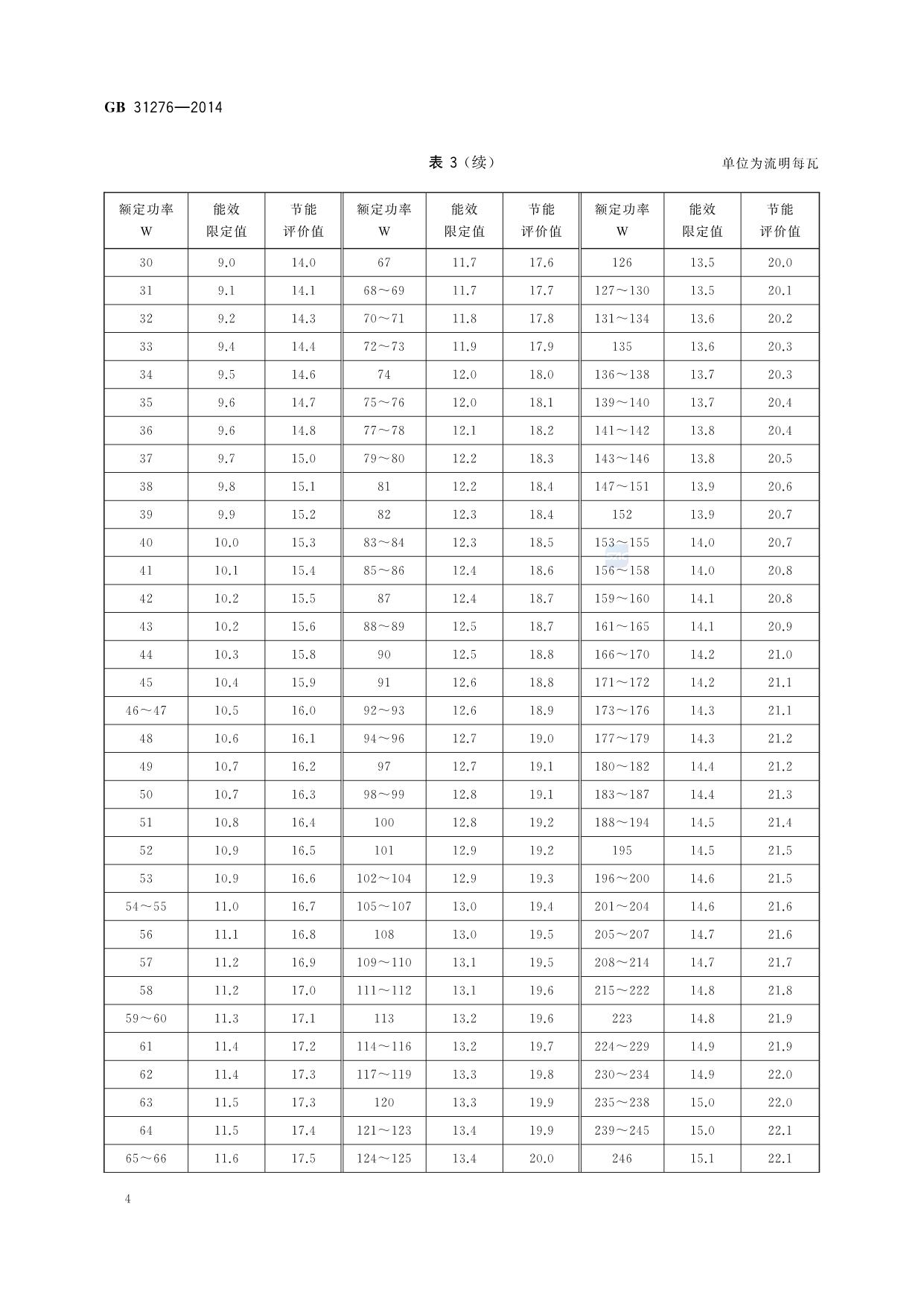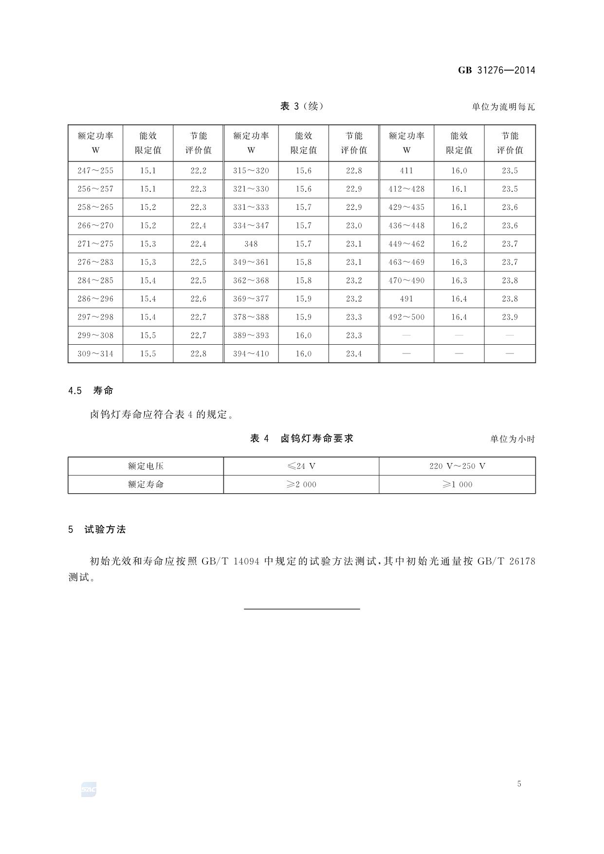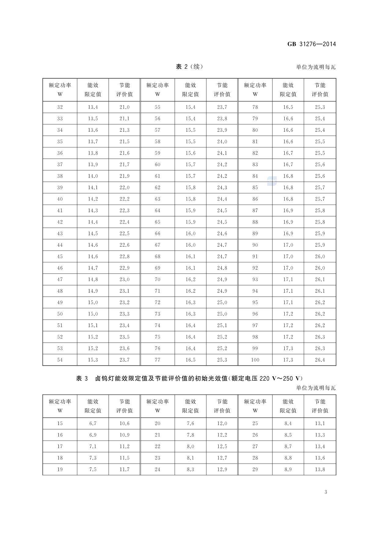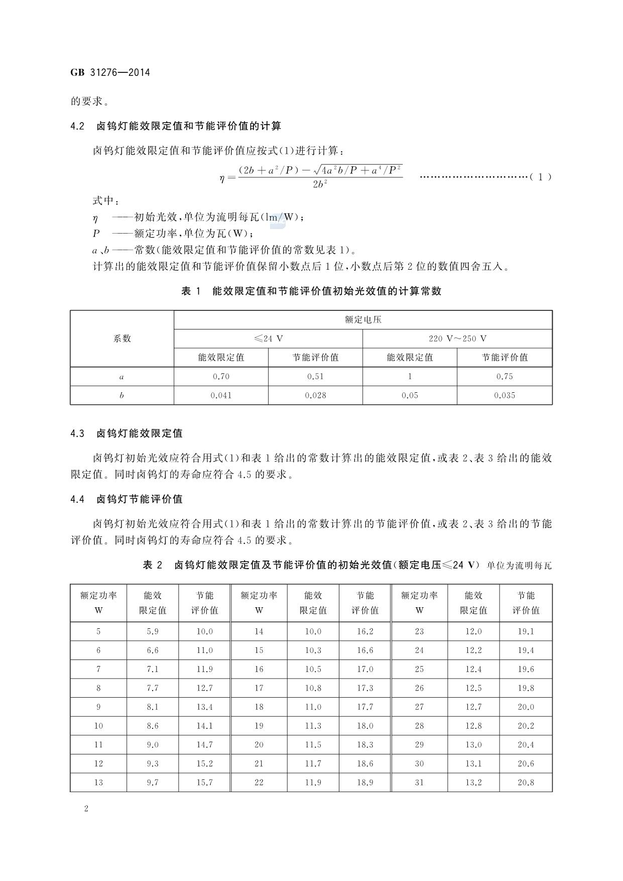 《普通照明用卤钨灯能效限定值及节能评价值》(GB 31276-2014)