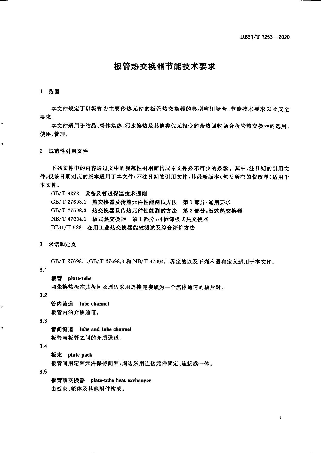 《板管热交换器节能技术要求》(DB31/T 1253-2020)
