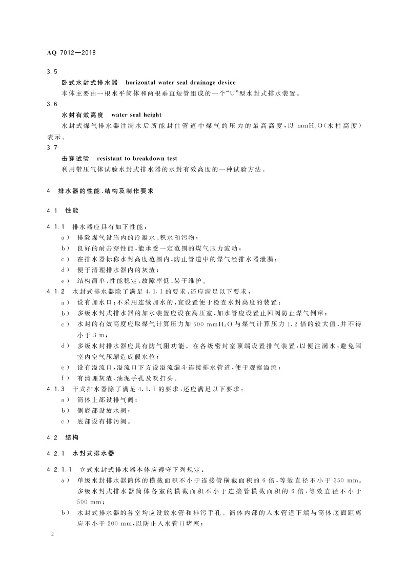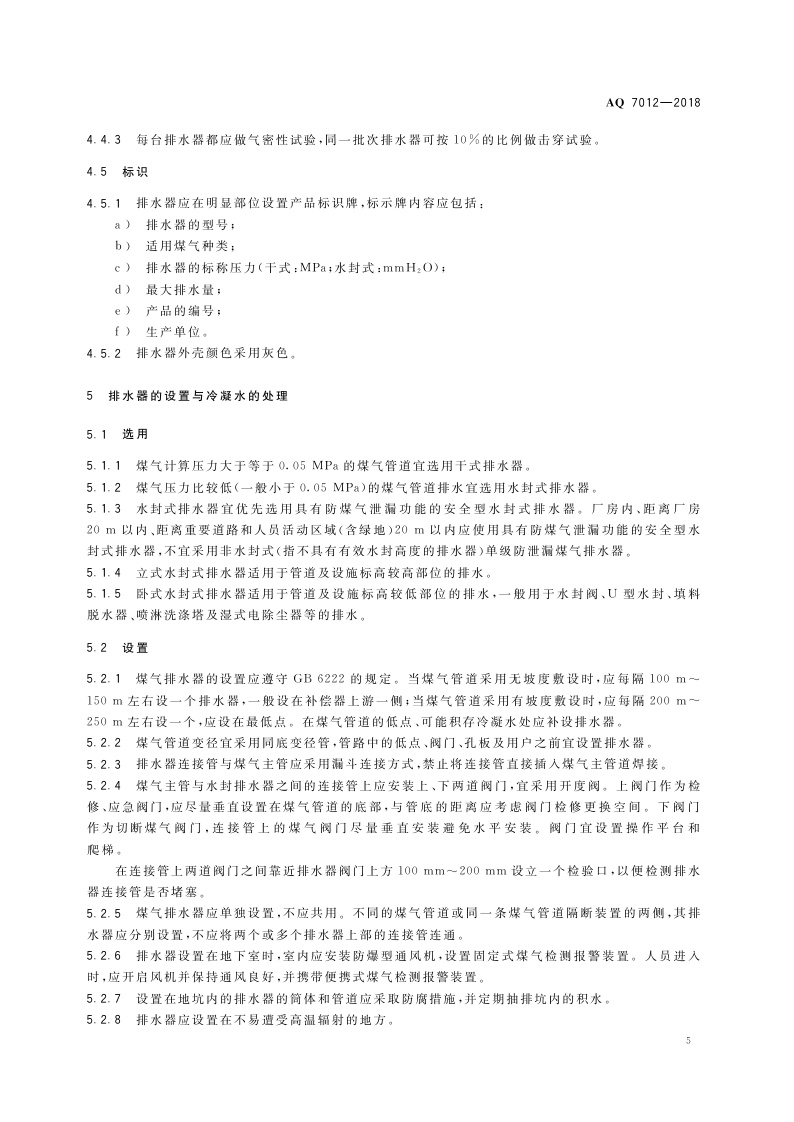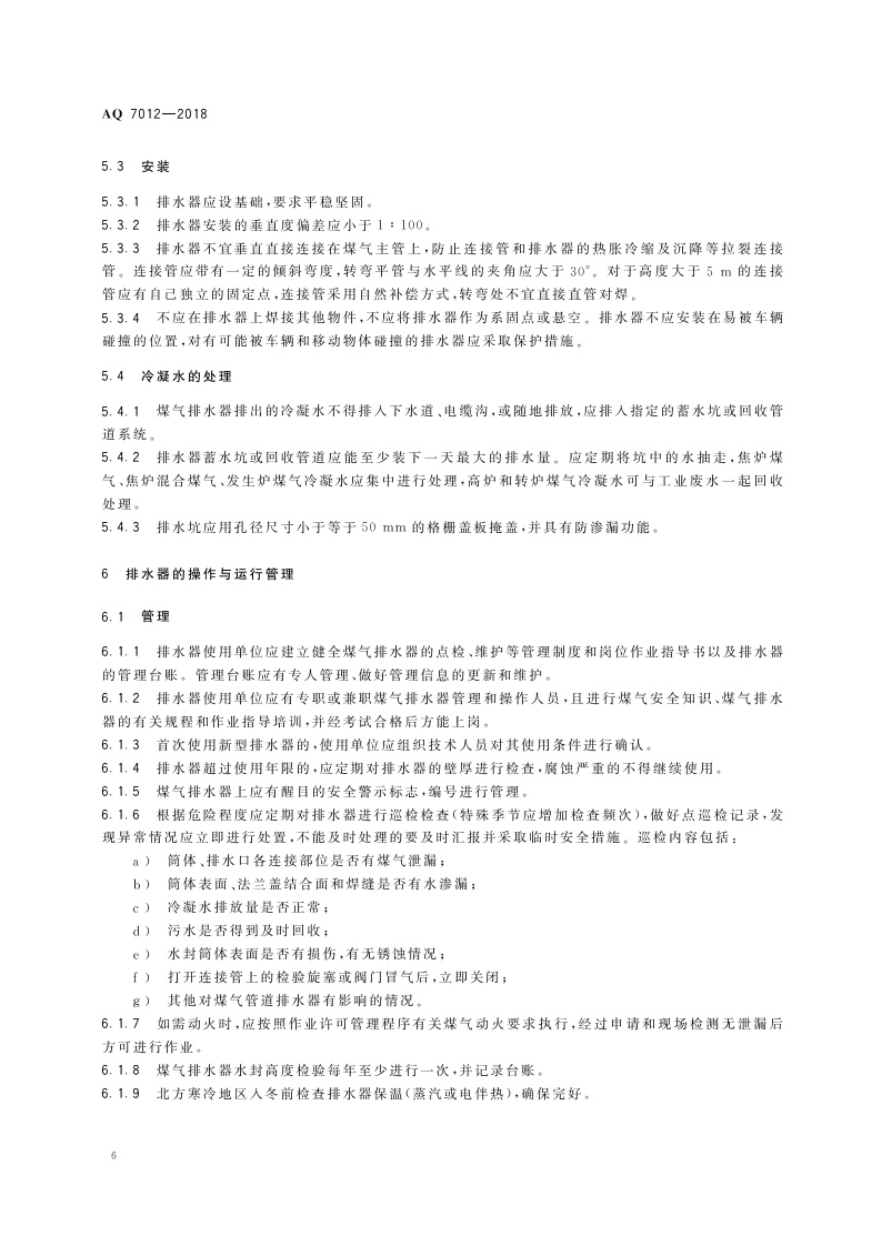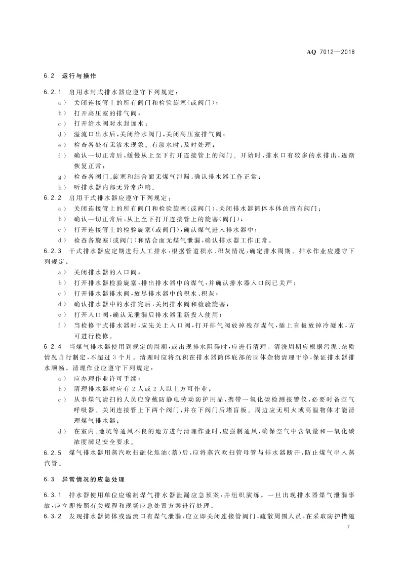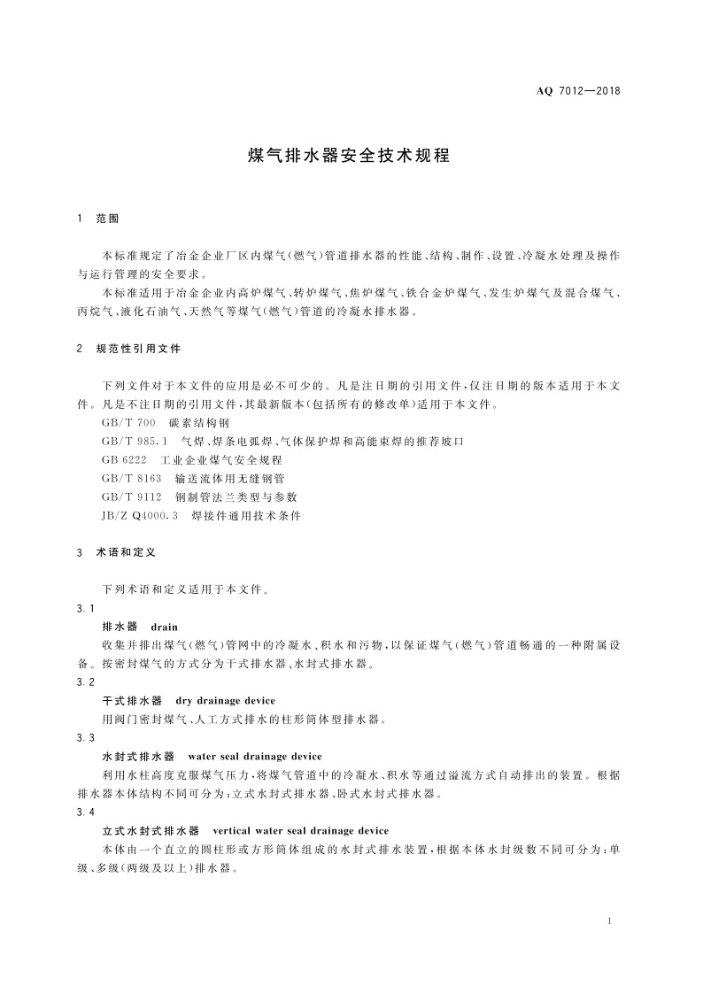 《煤气排水器安全技术规程》(AQ 7012-2018)