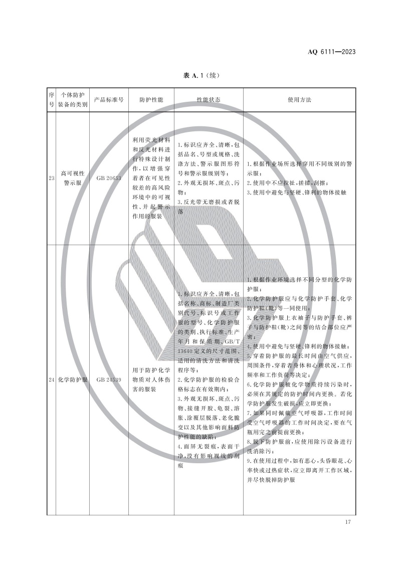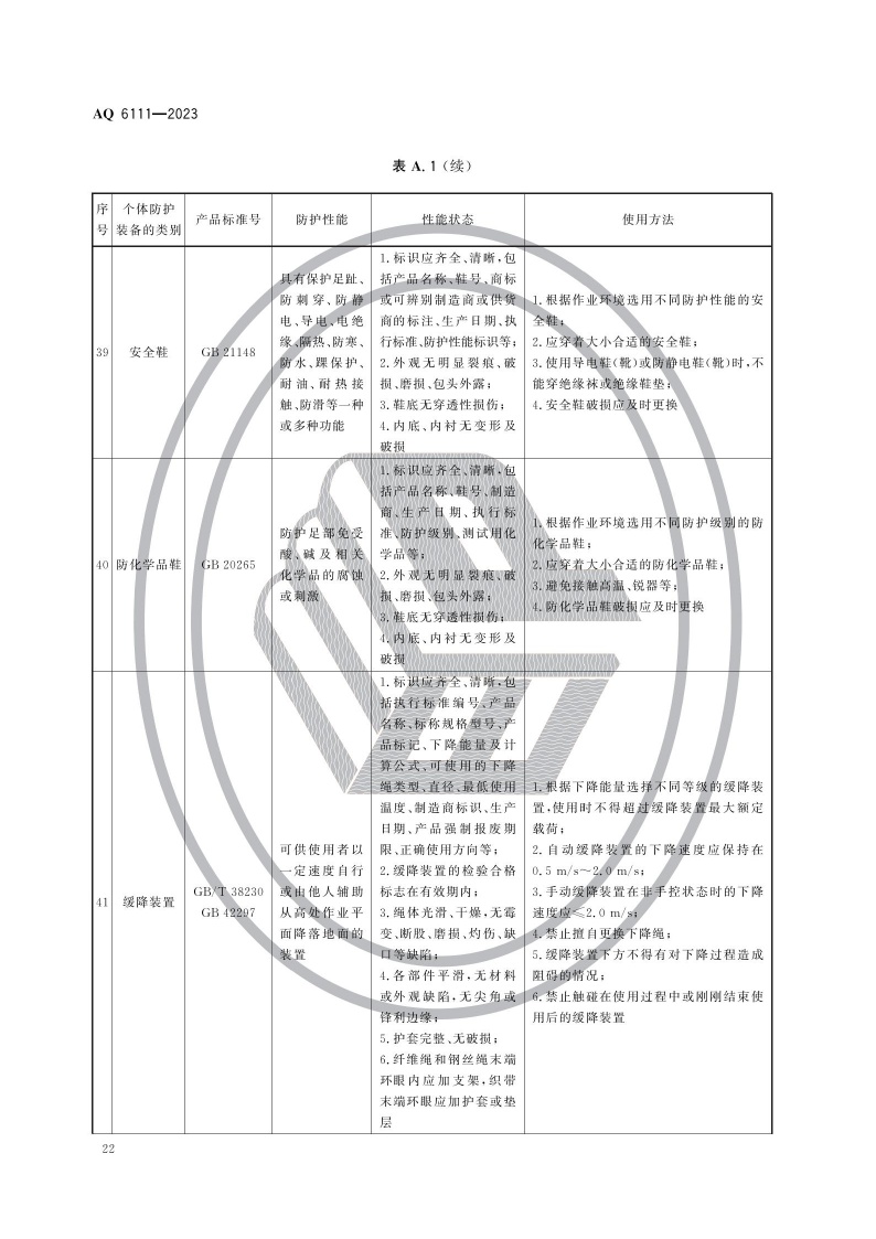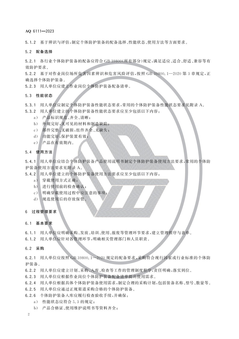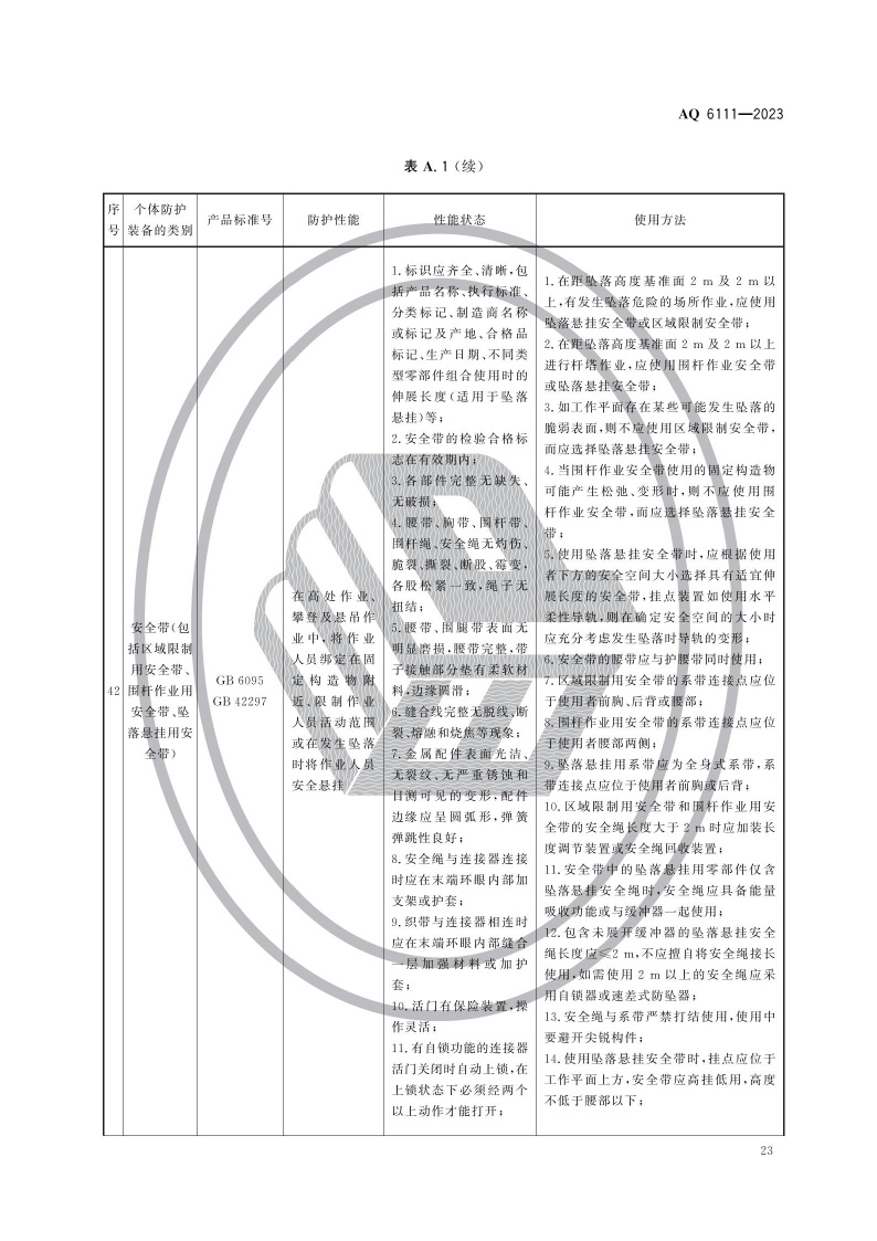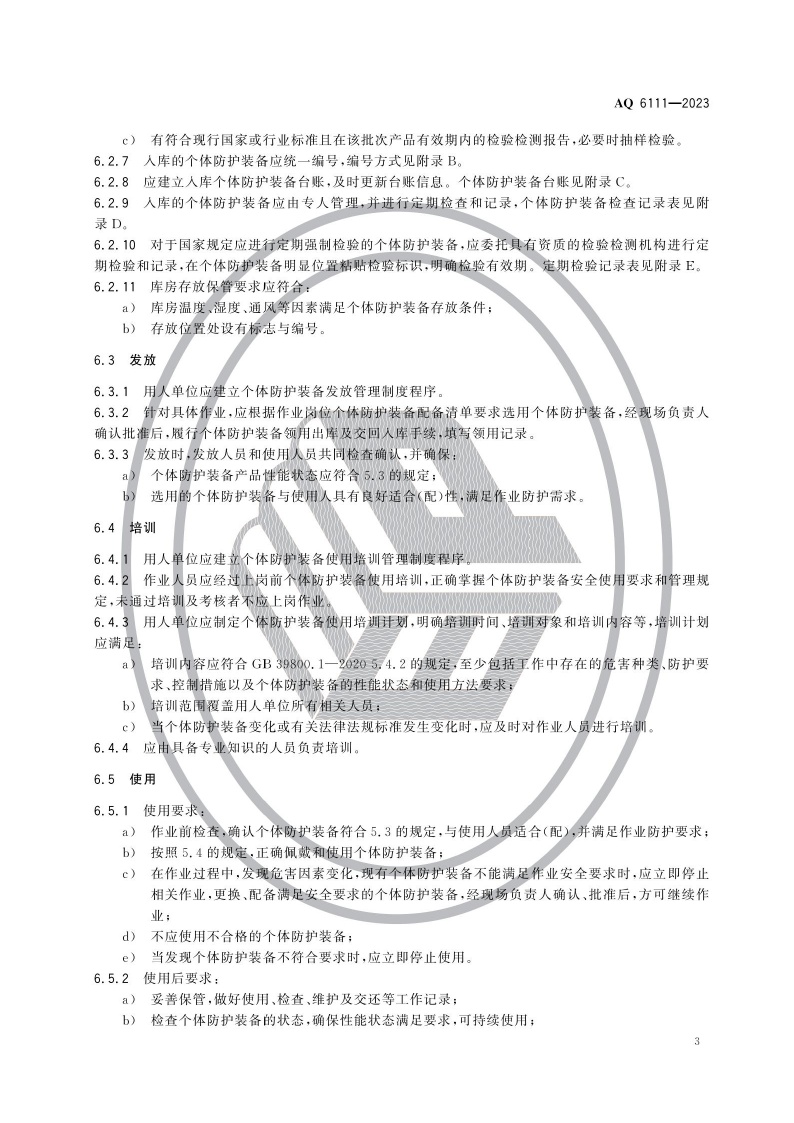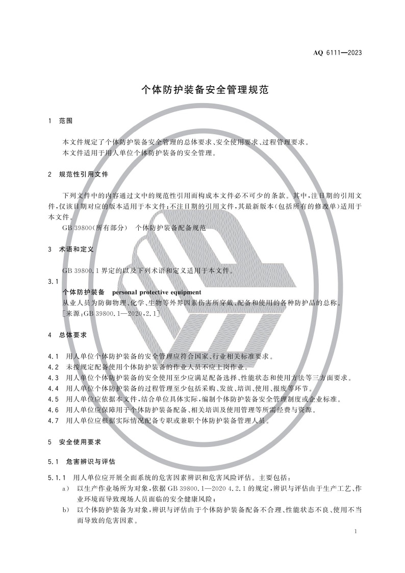 《各个体防护装备安全管理规范》(AQ 6111-2023)