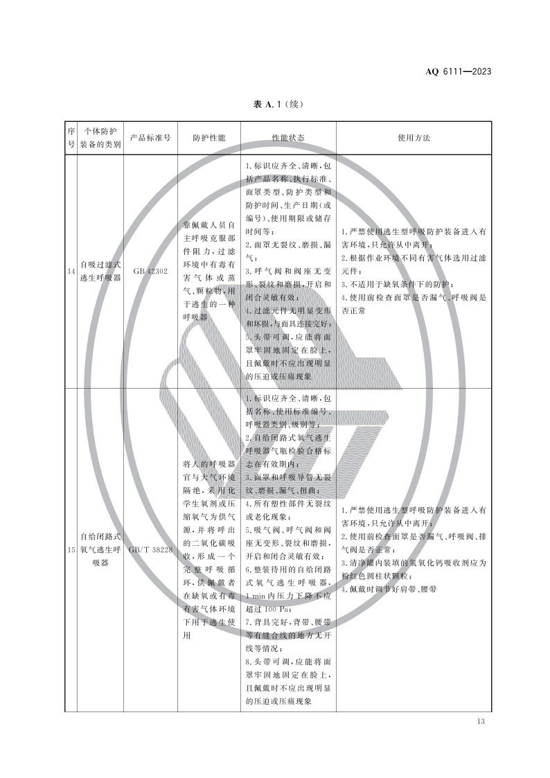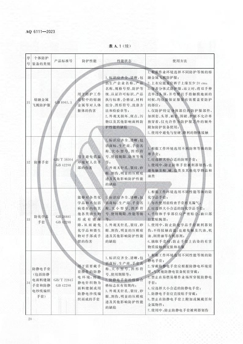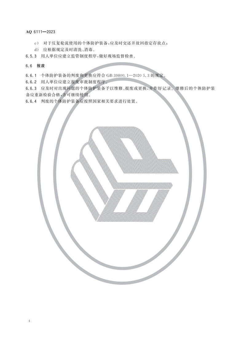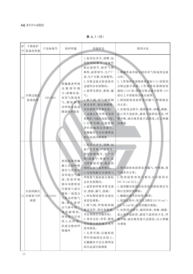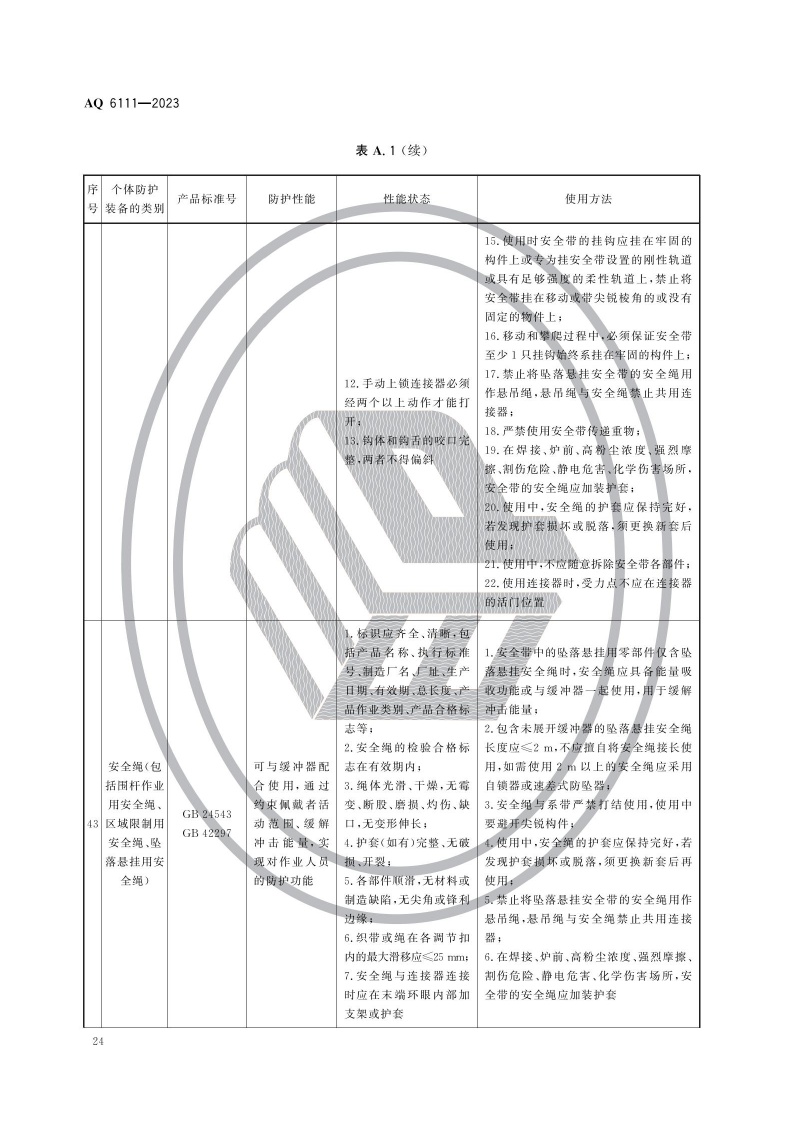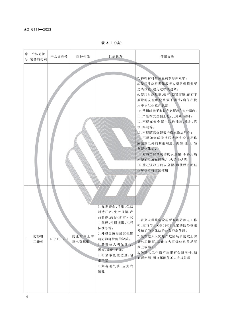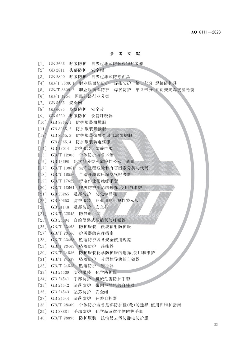 《各个体防护装备安全管理规范》(AQ 6111-2023)