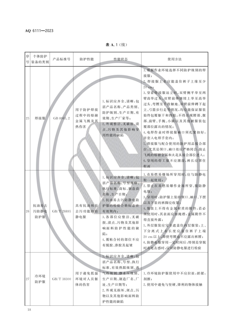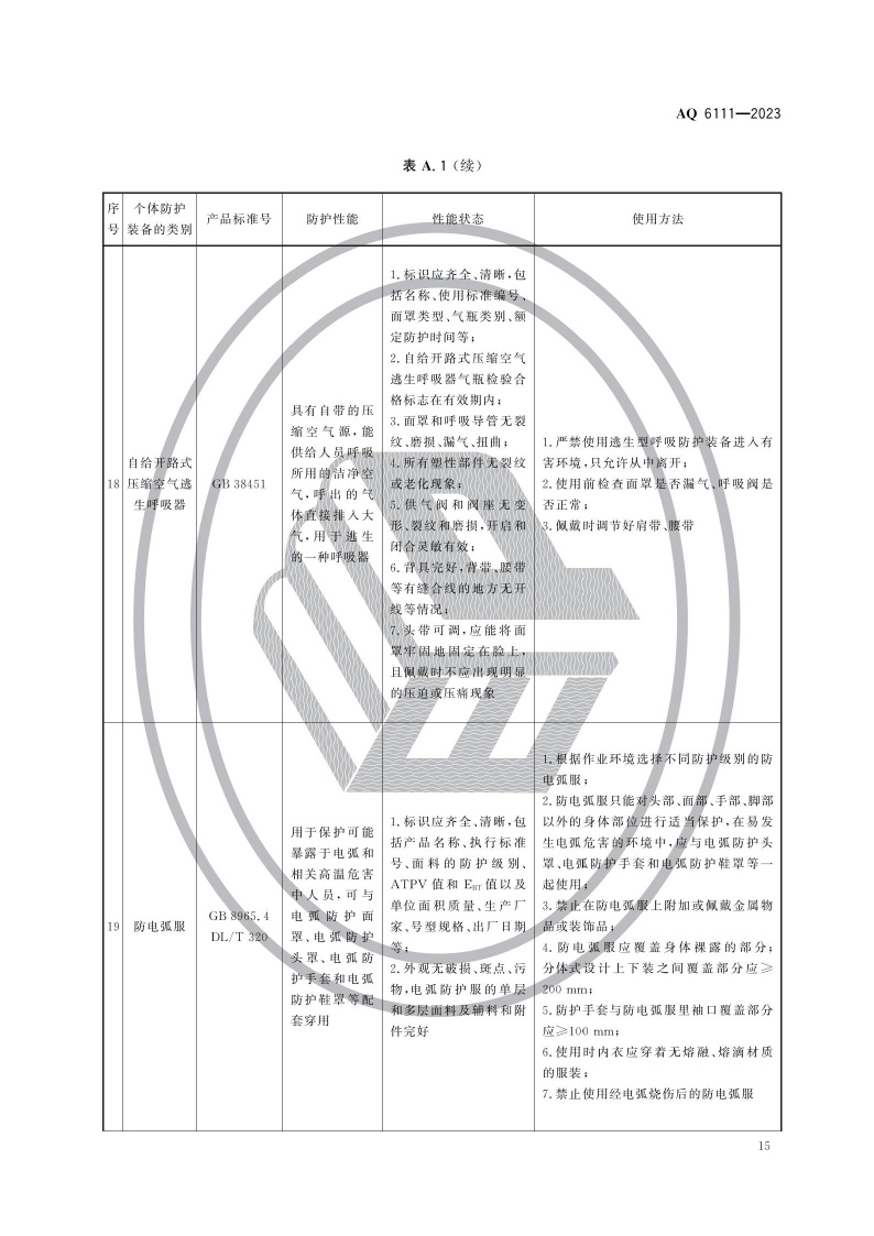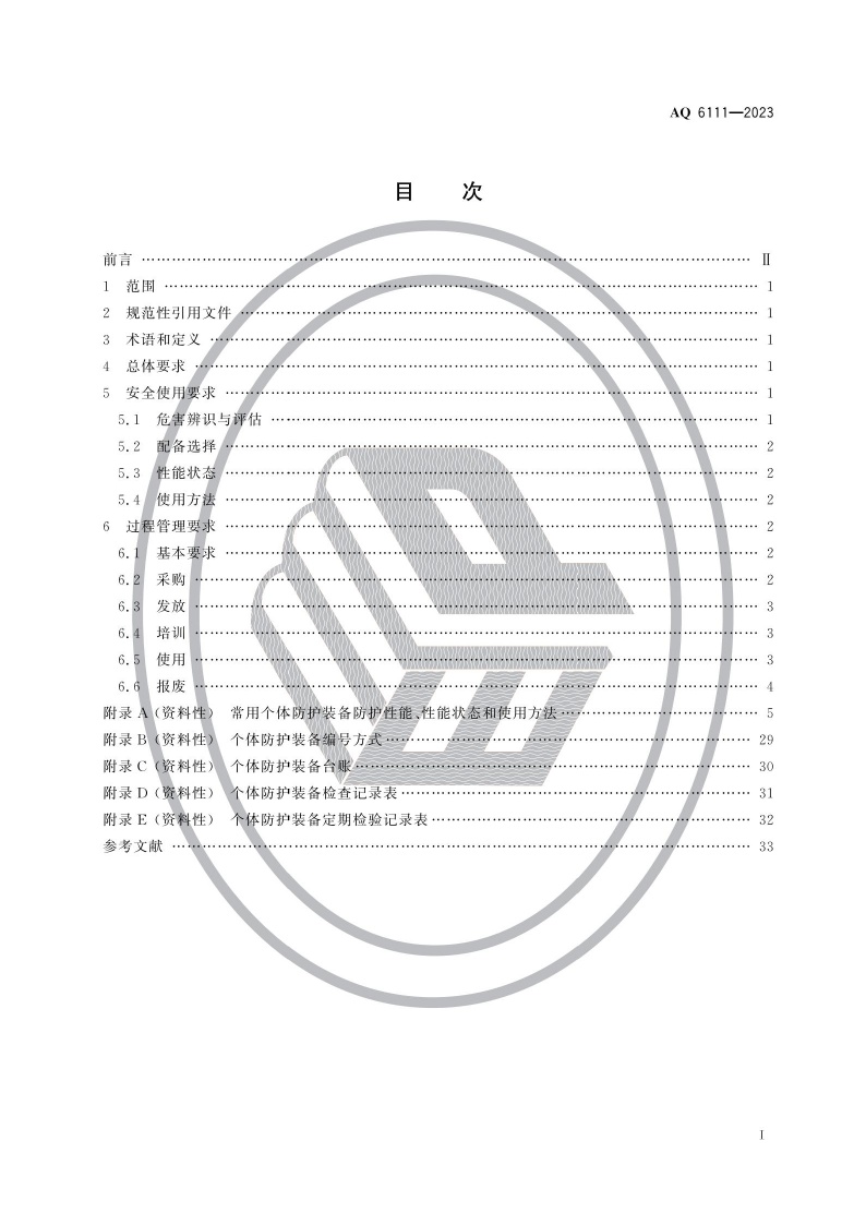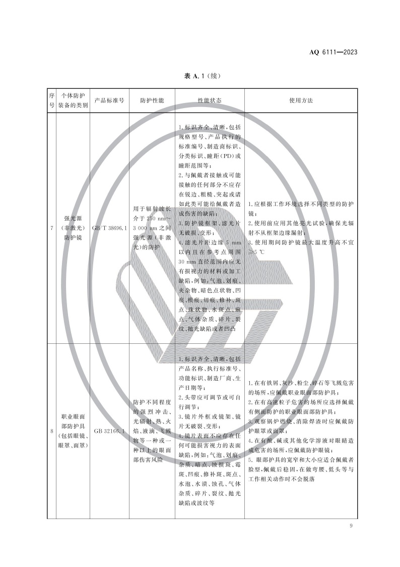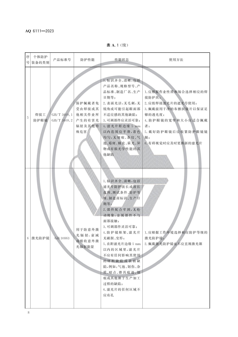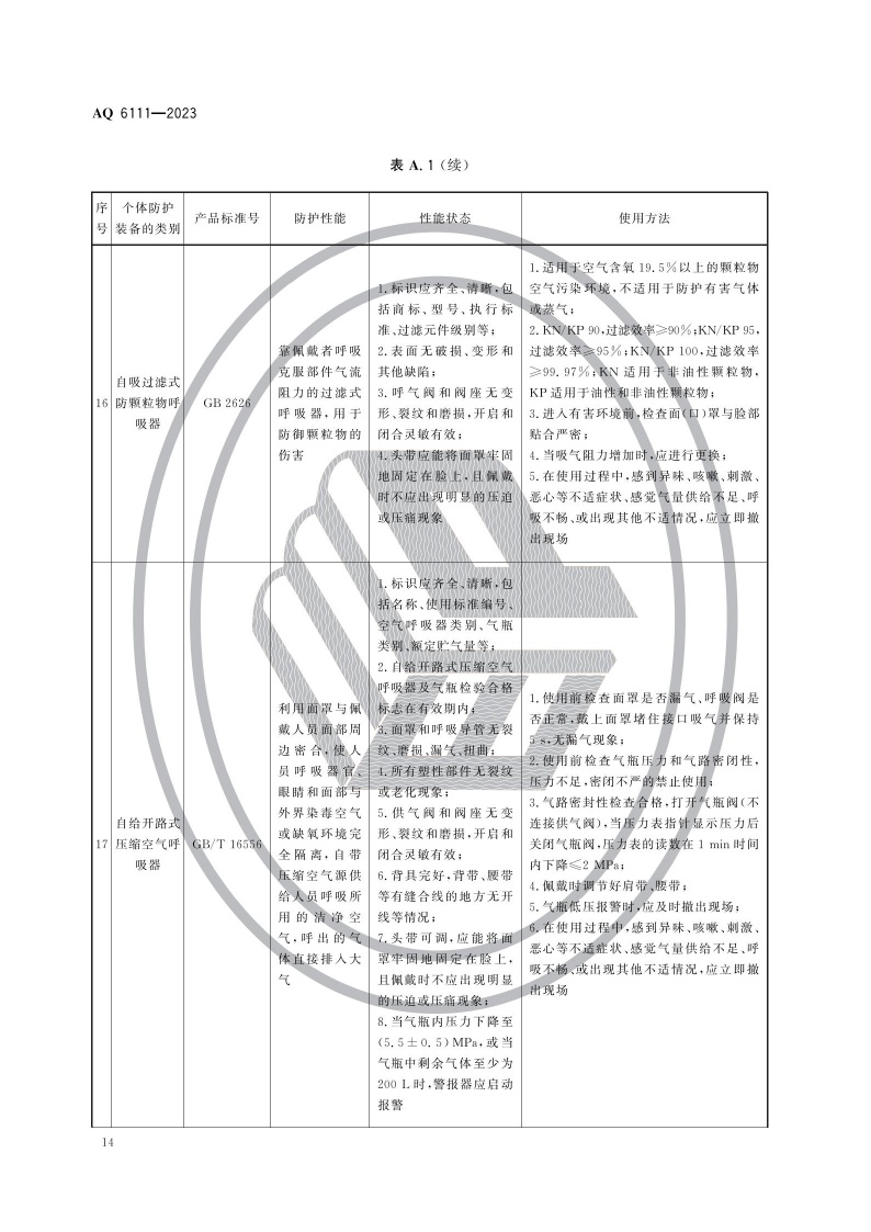 《各个体防护装备安全管理规范》(AQ 6111-2023)