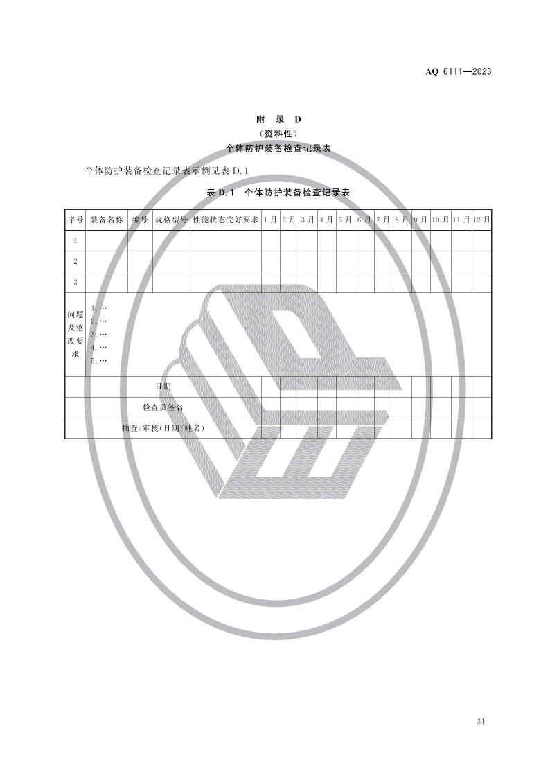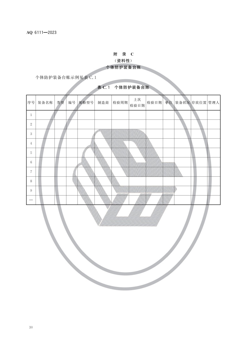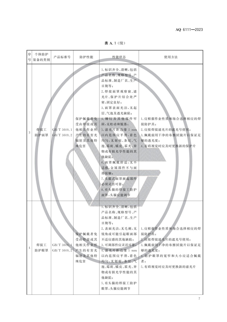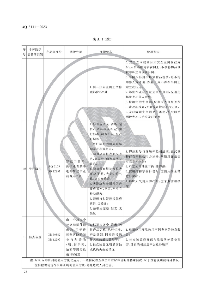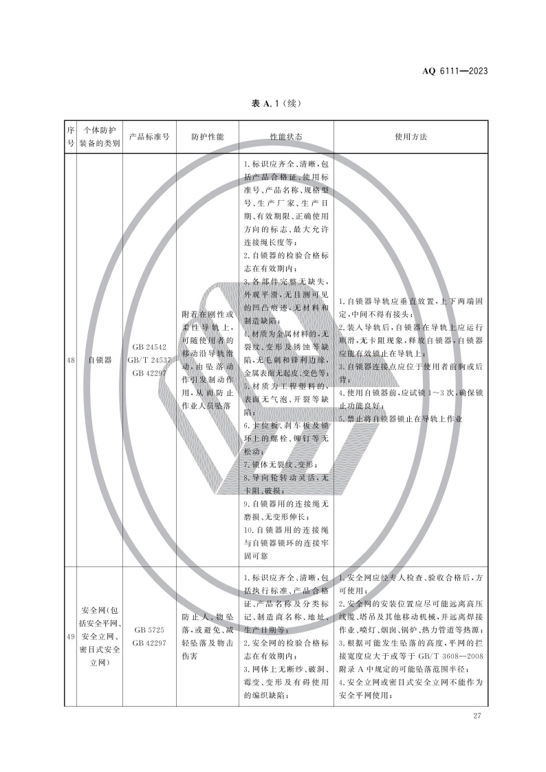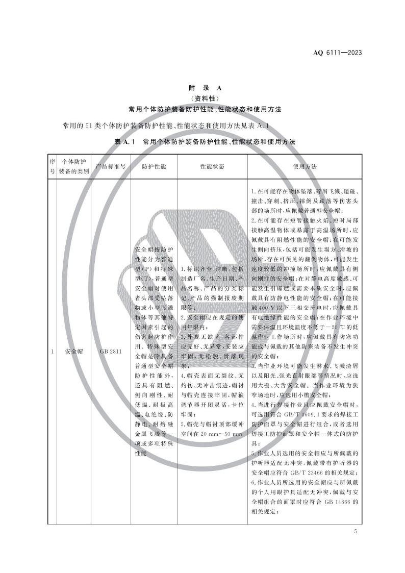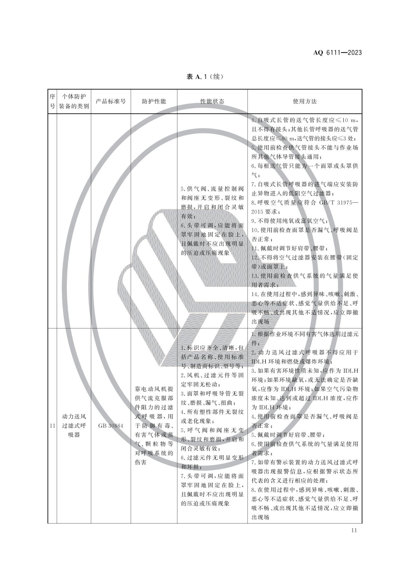 《各个体防护装备安全管理规范》(AQ 6111-2023)