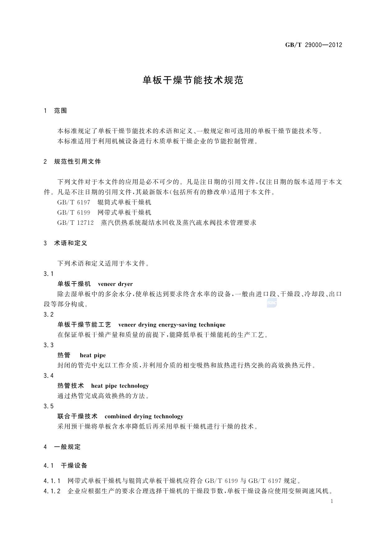 《单板干燥节能技术规范》(GB/T 29000-2012)