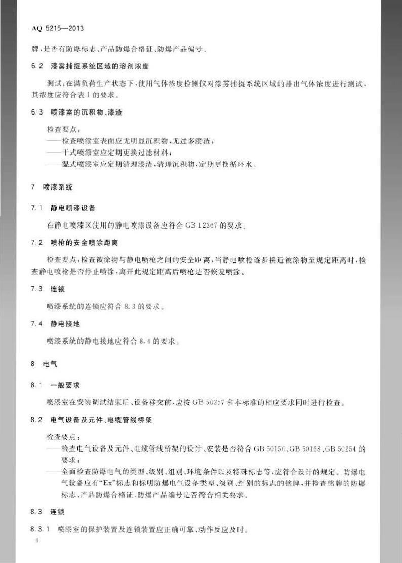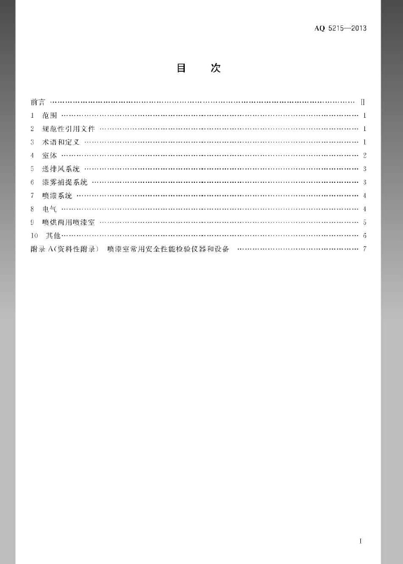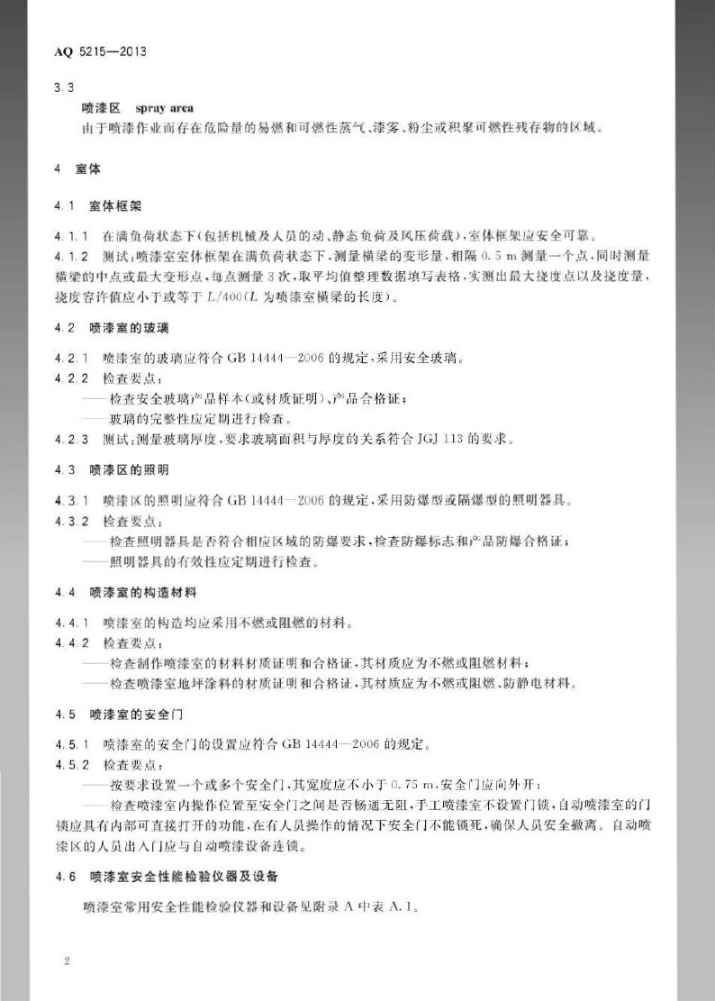 《喷漆室安全性能检测方法》(AQ 5215-2013)