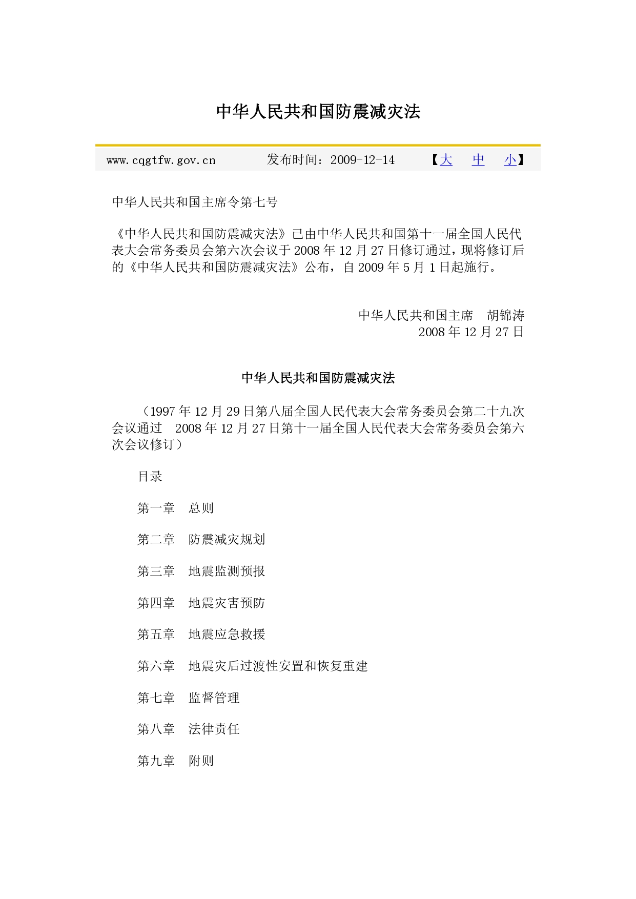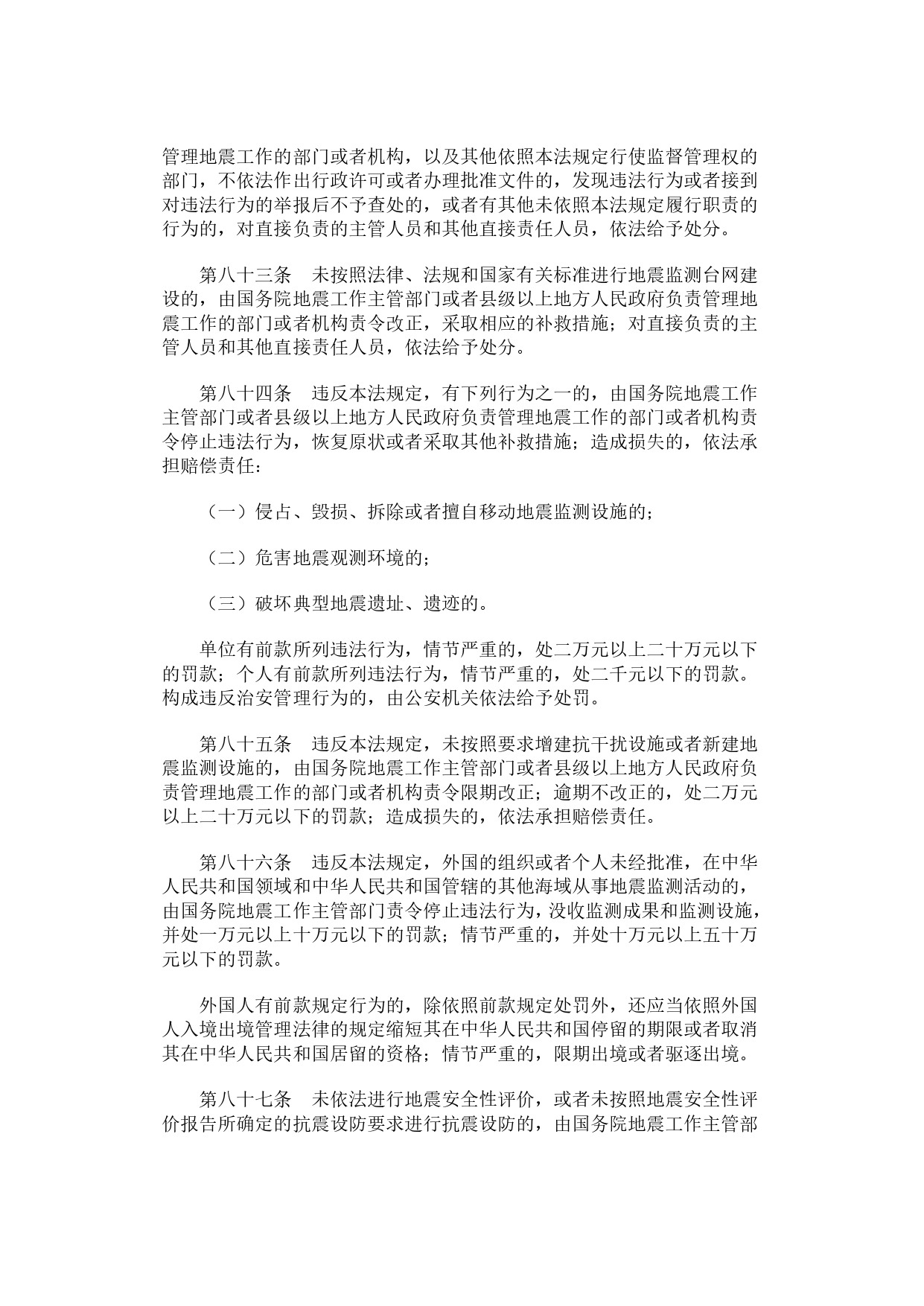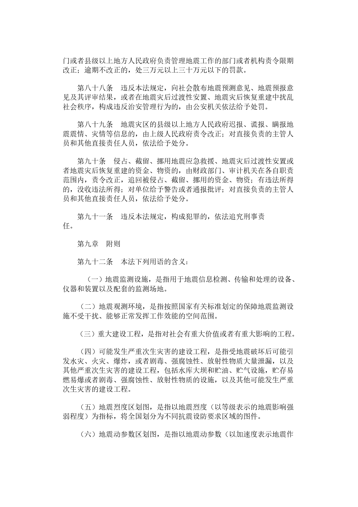 《中华人民共和国防震减灾法》(国家主席令〔1997〕第94号,〔2008〕第7号修订)