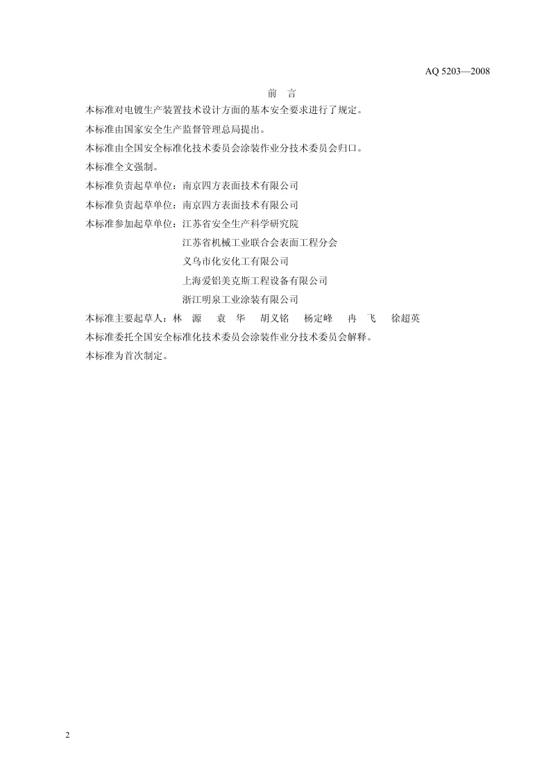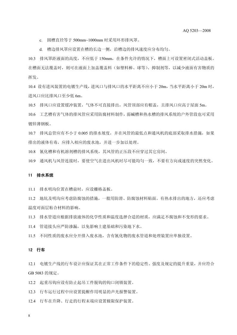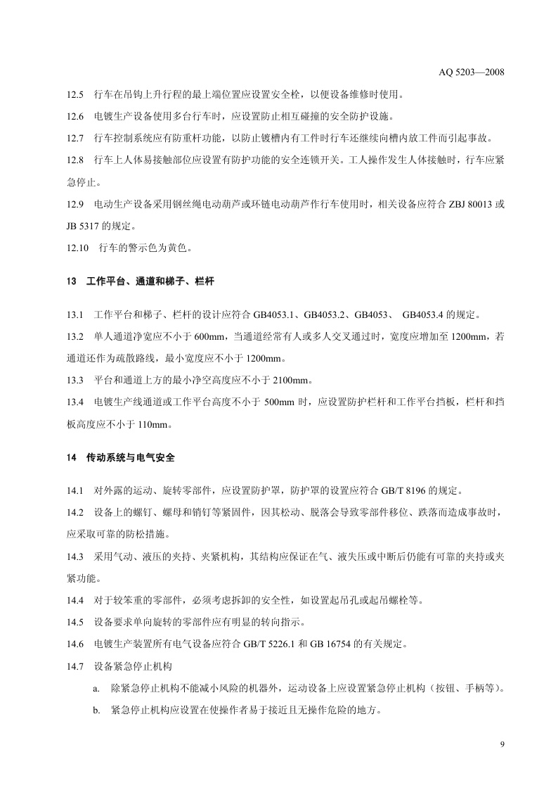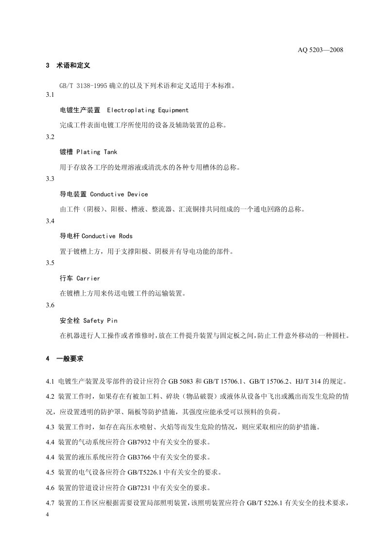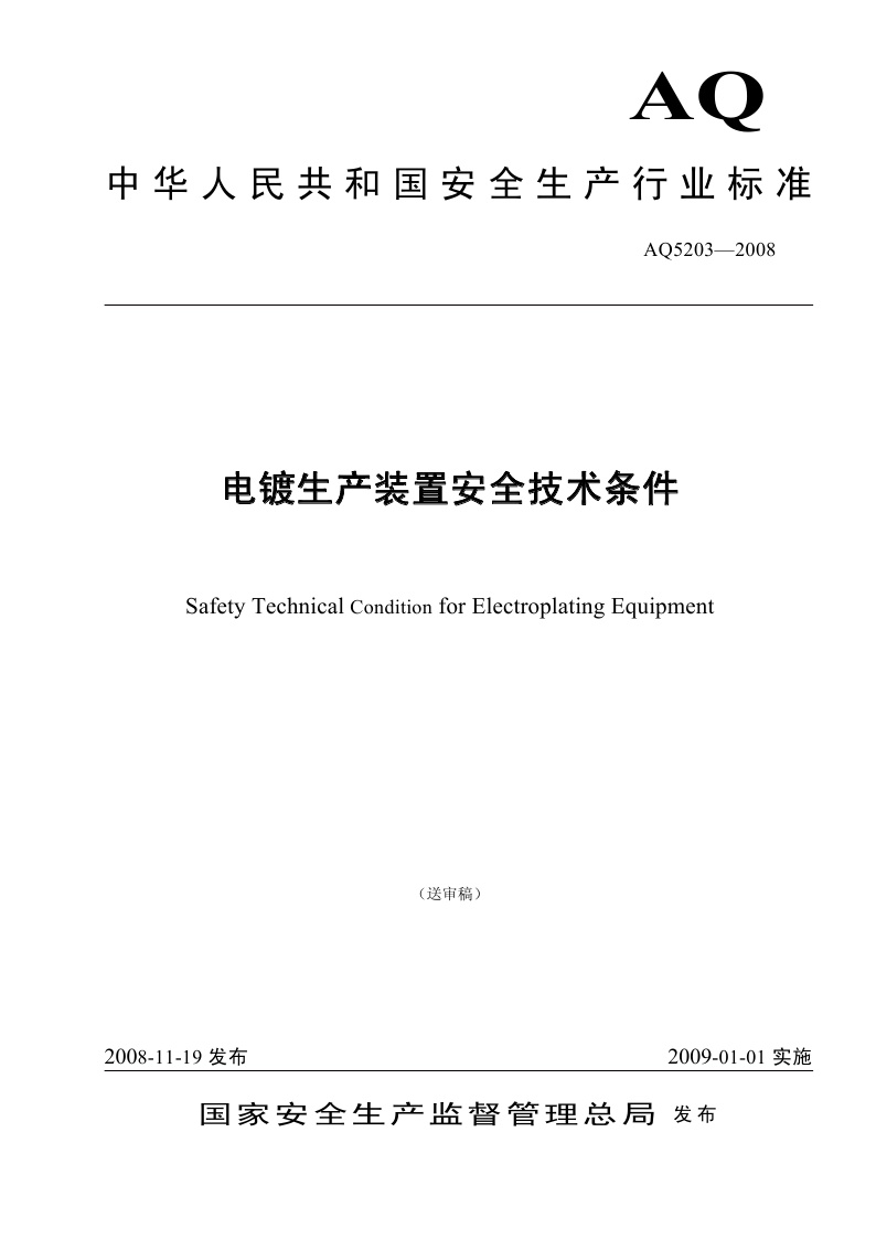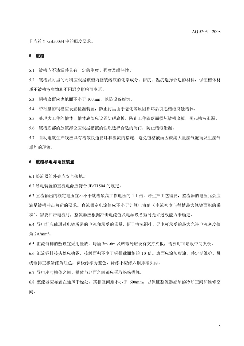 《电镀生产装置安全技术条件》(AQ 5203-2008)