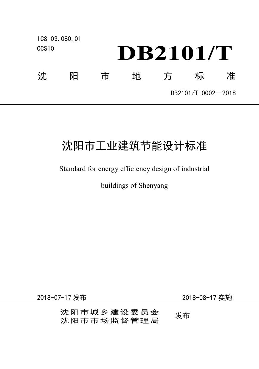 《沈阳市工业建筑节能设计标准》(DB2101/T 0002—2018)