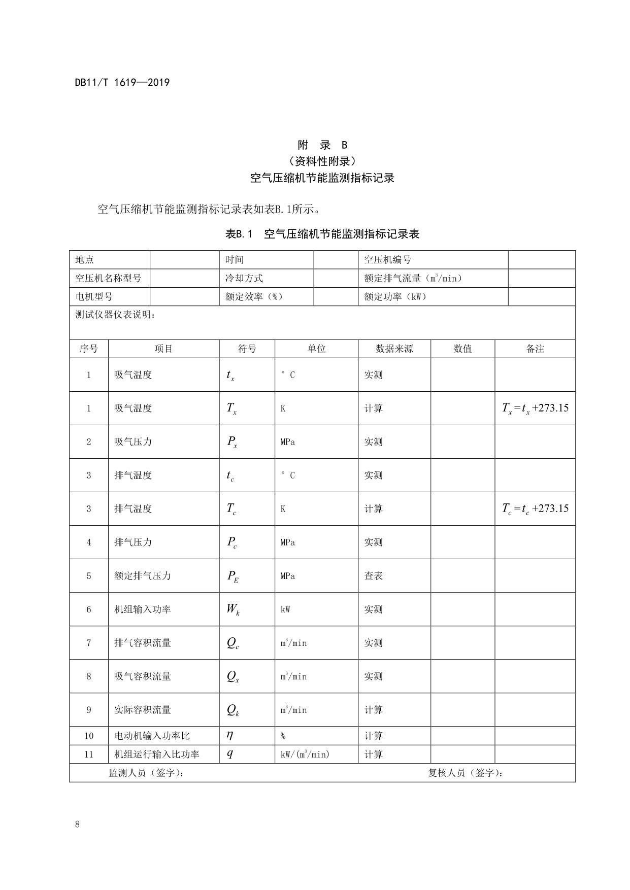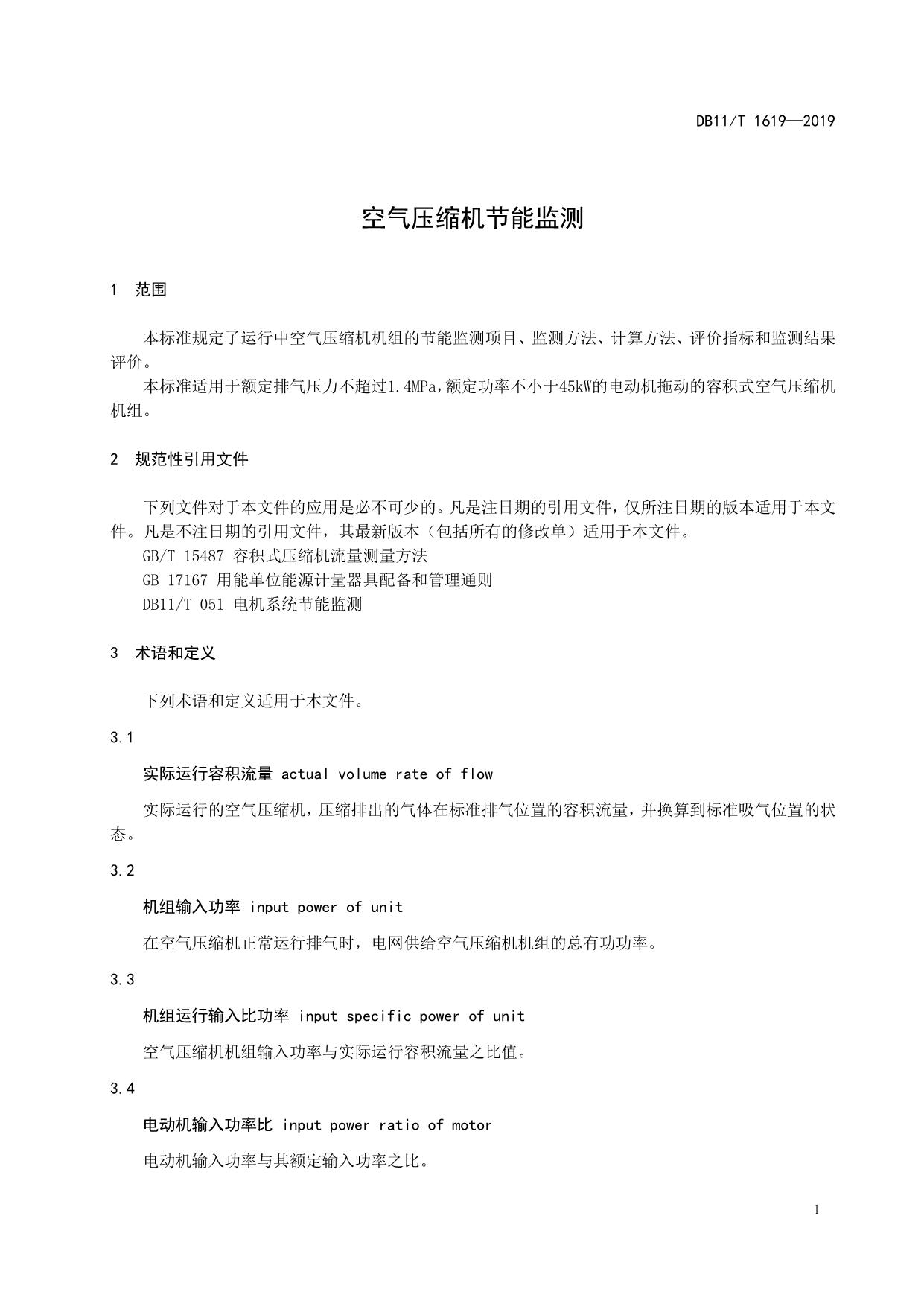 《空气压缩机节能监测》(DB11/T 1619-2019 )