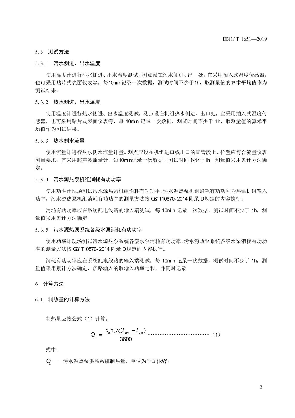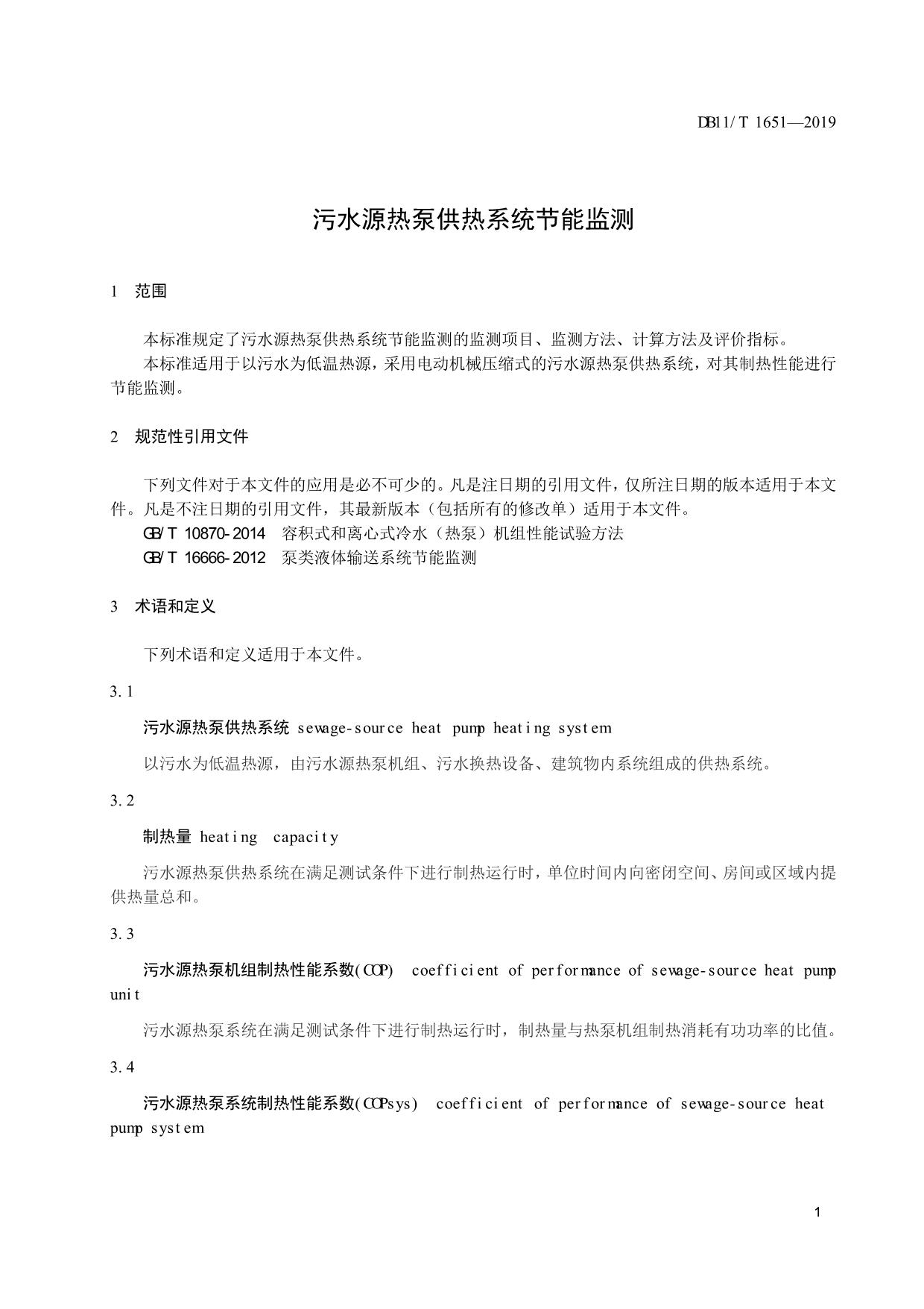 《污水源热泵供热系统节能监测》(DB11/T 1651-2019)