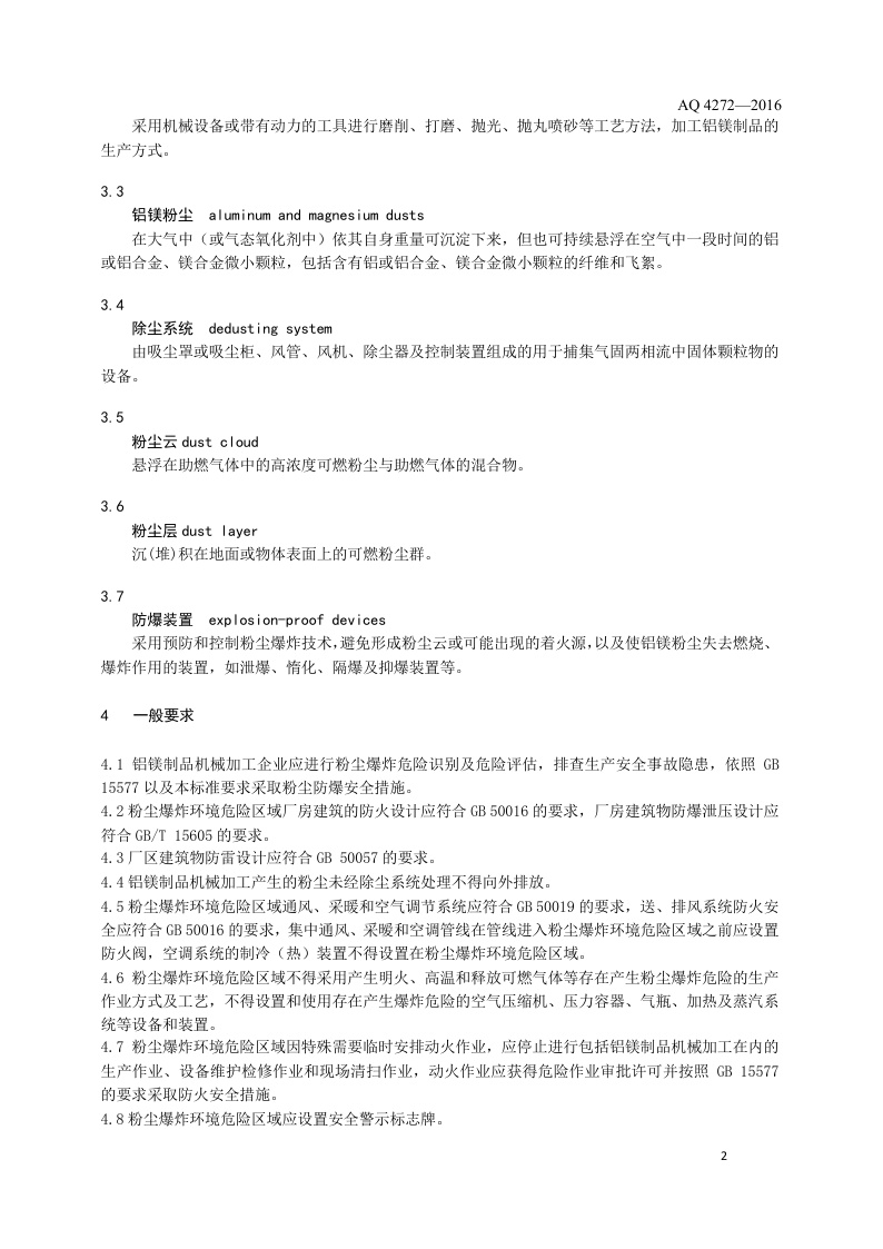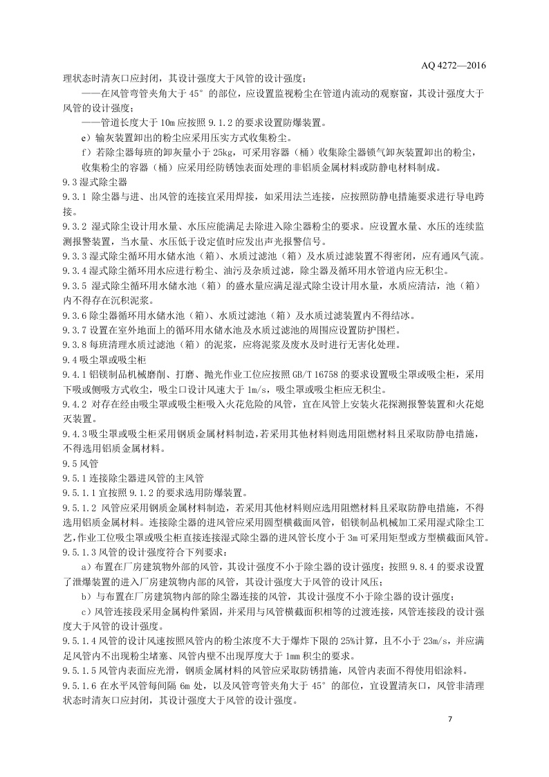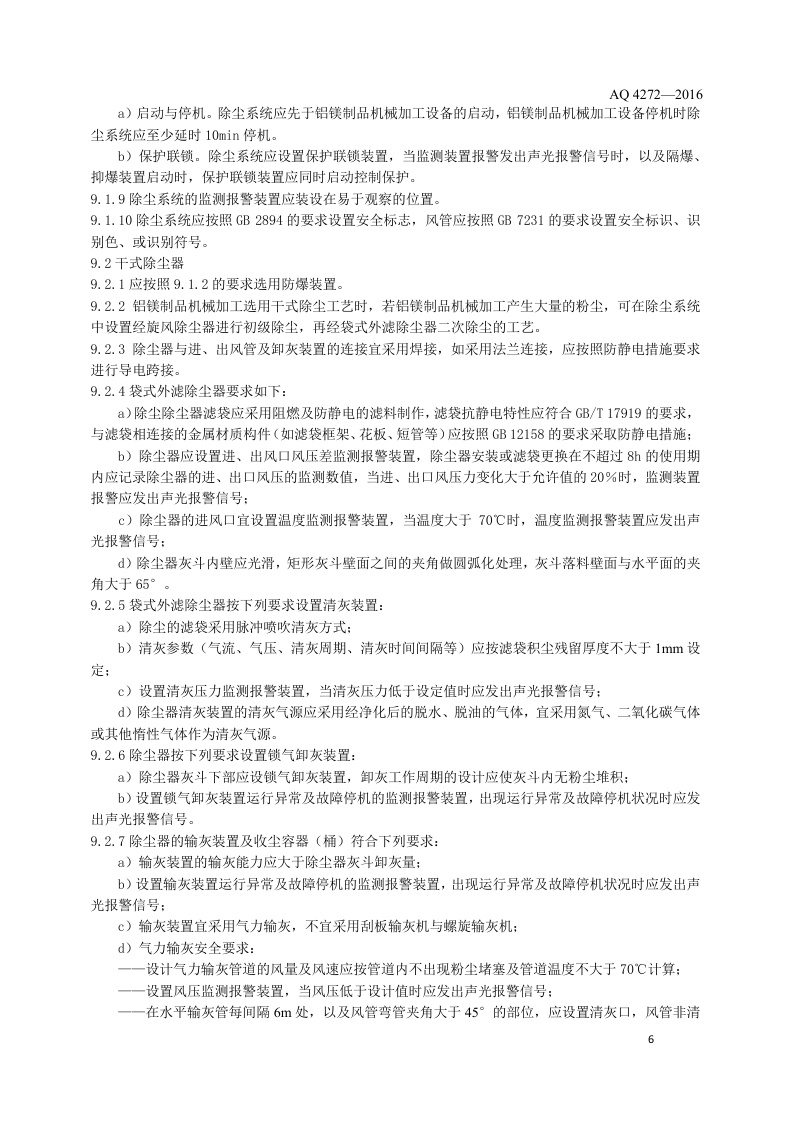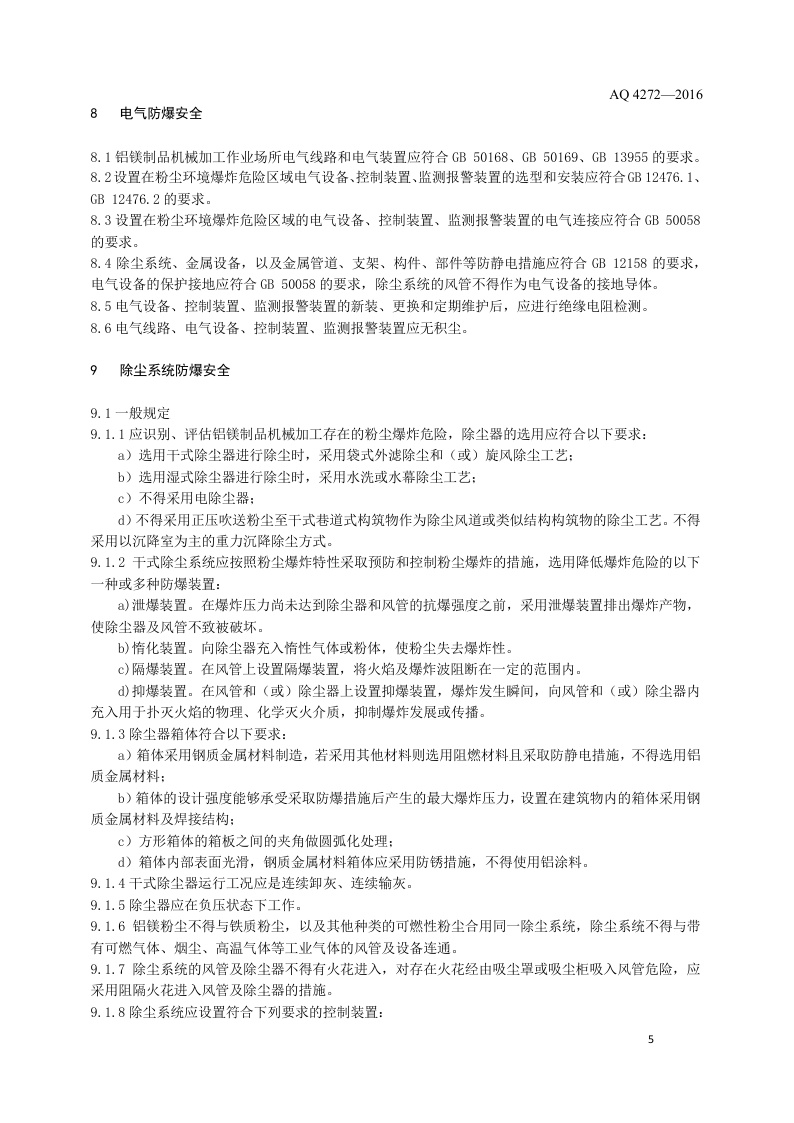 《铝镁制品机械加工粉尘防爆安全技术规范》(AQ 4272-2016)