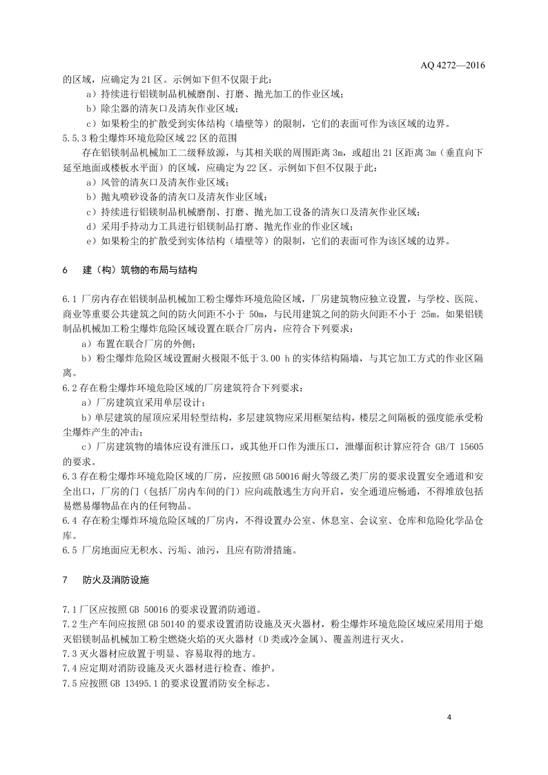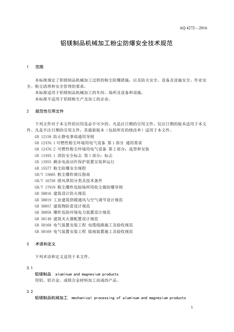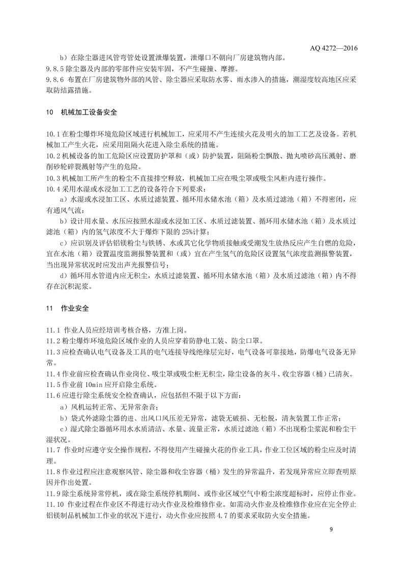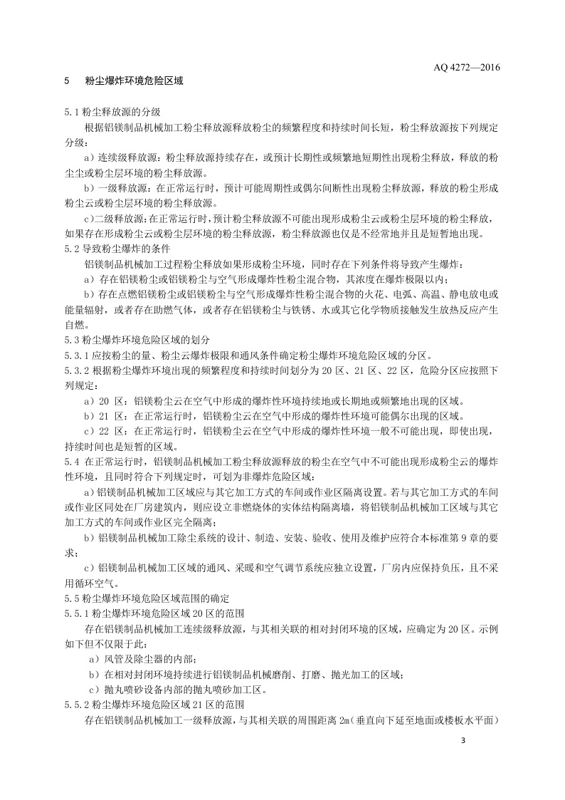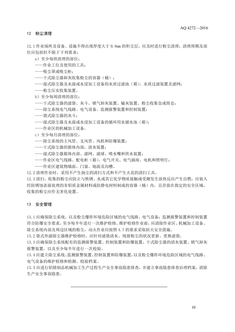 《铝镁制品机械加工粉尘防爆安全技术规范》(AQ 4272-2016)