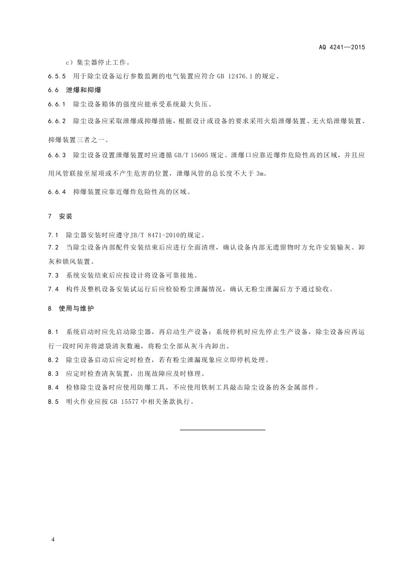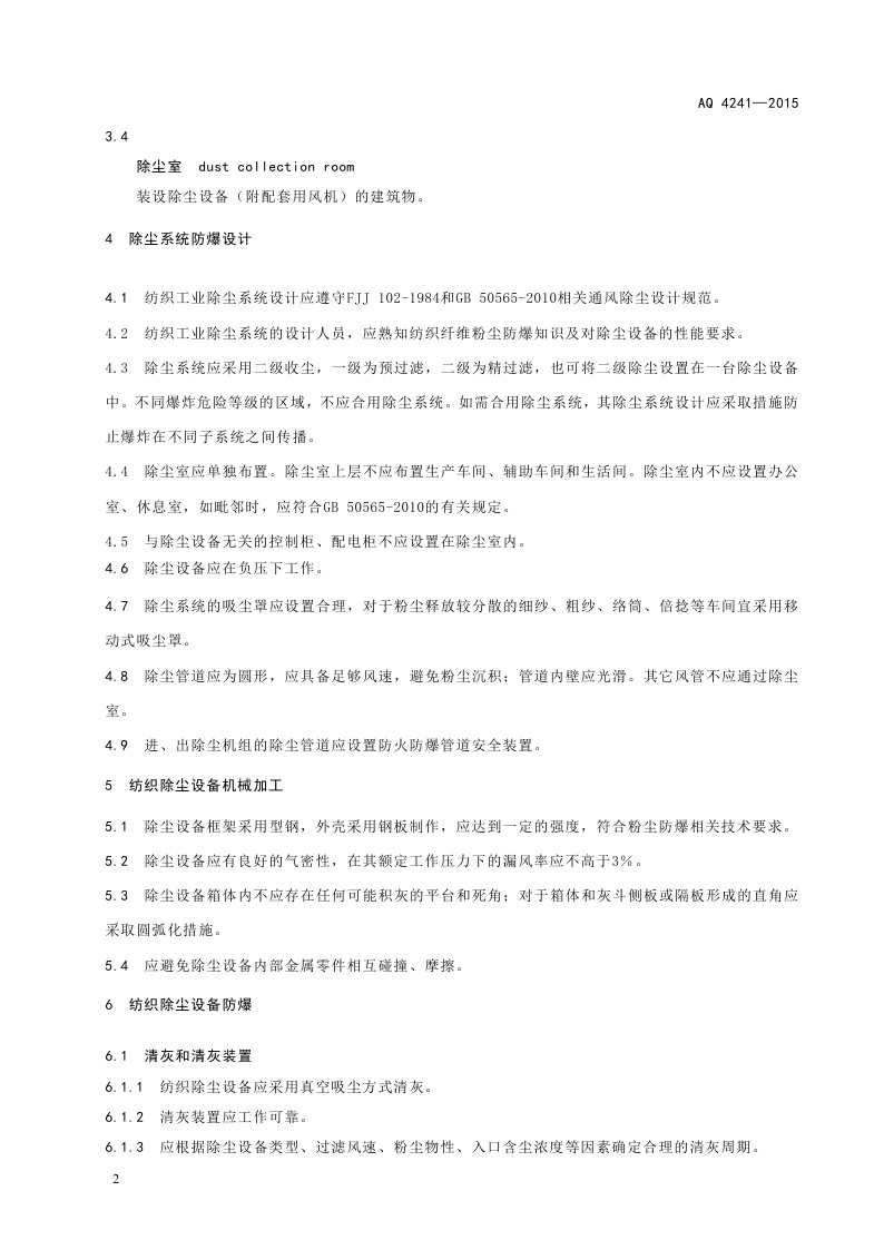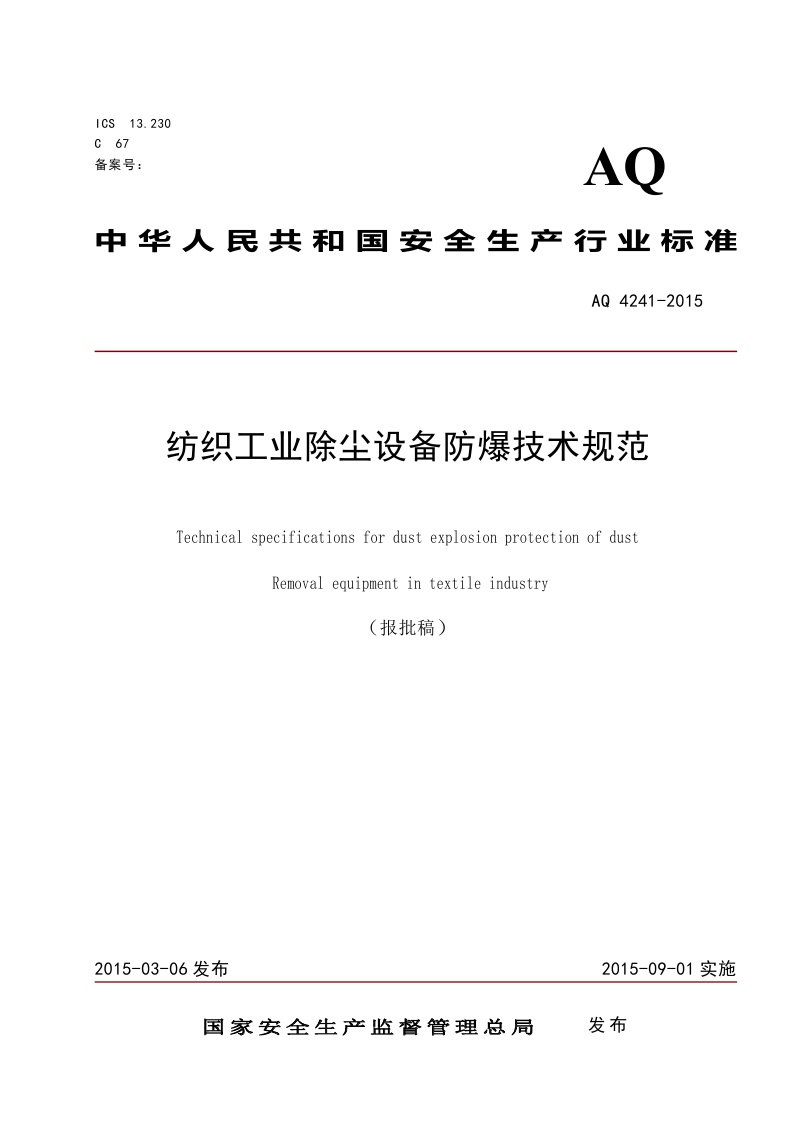 《纺织工业除尘设备防爆技术规范》(AQ 4241-2015)