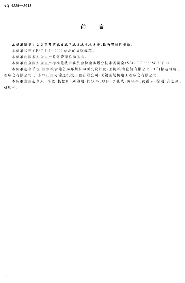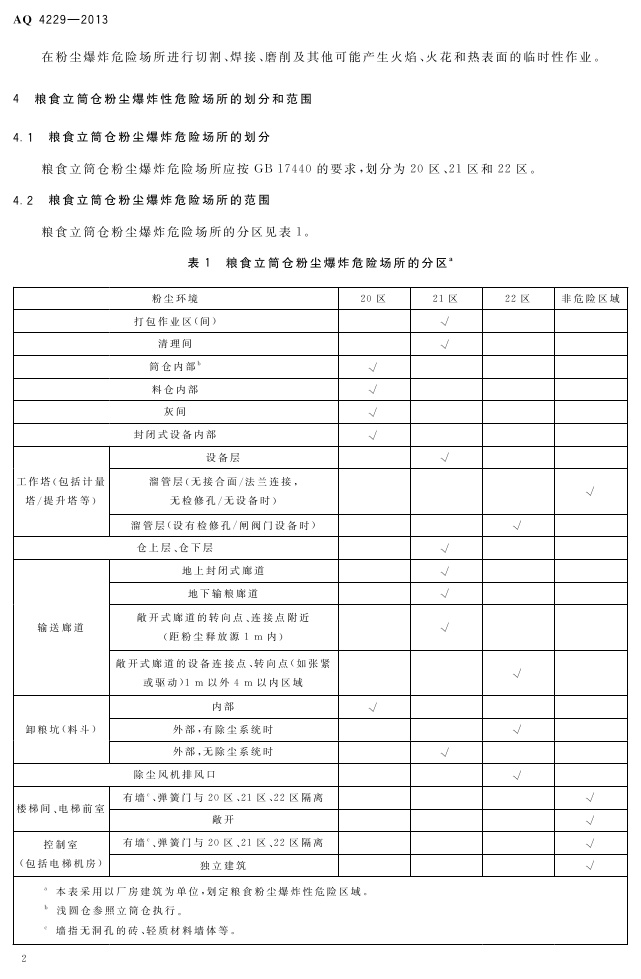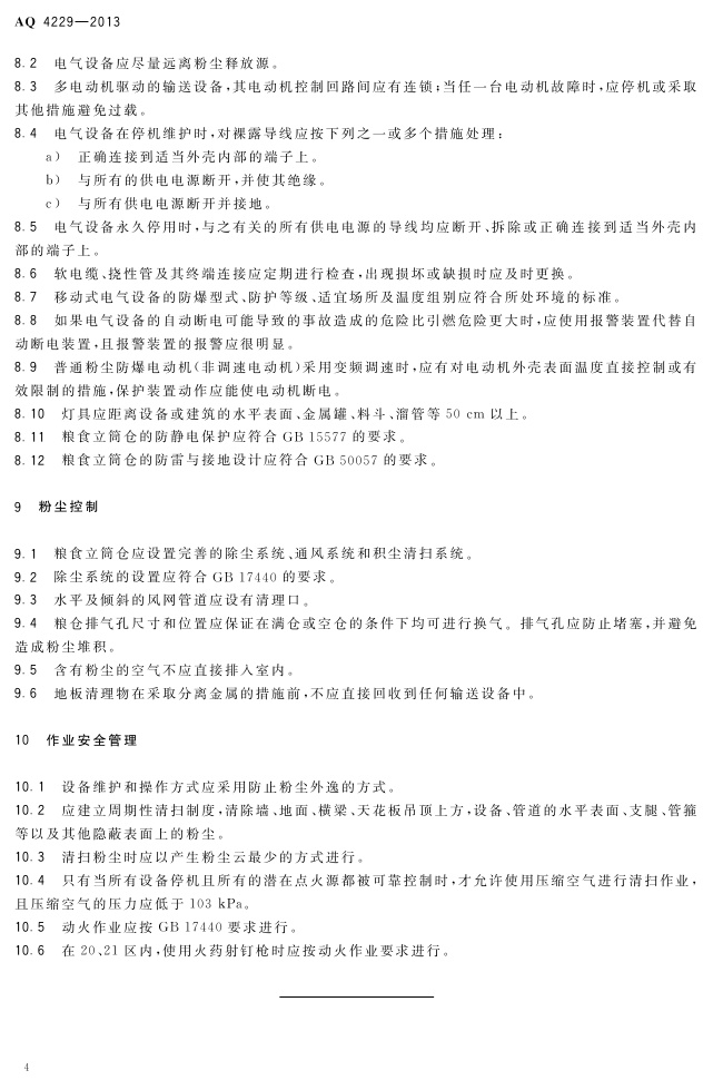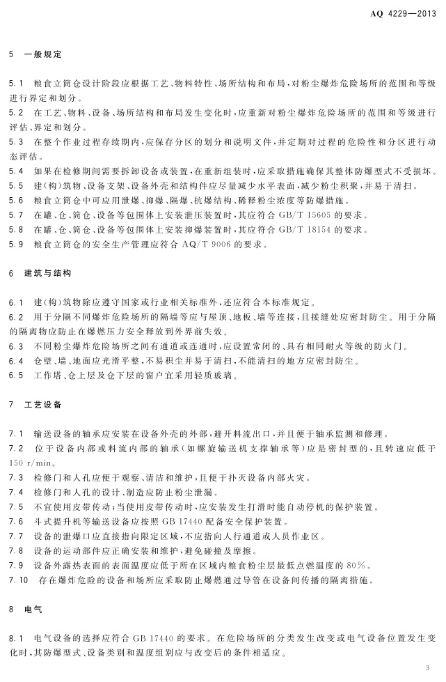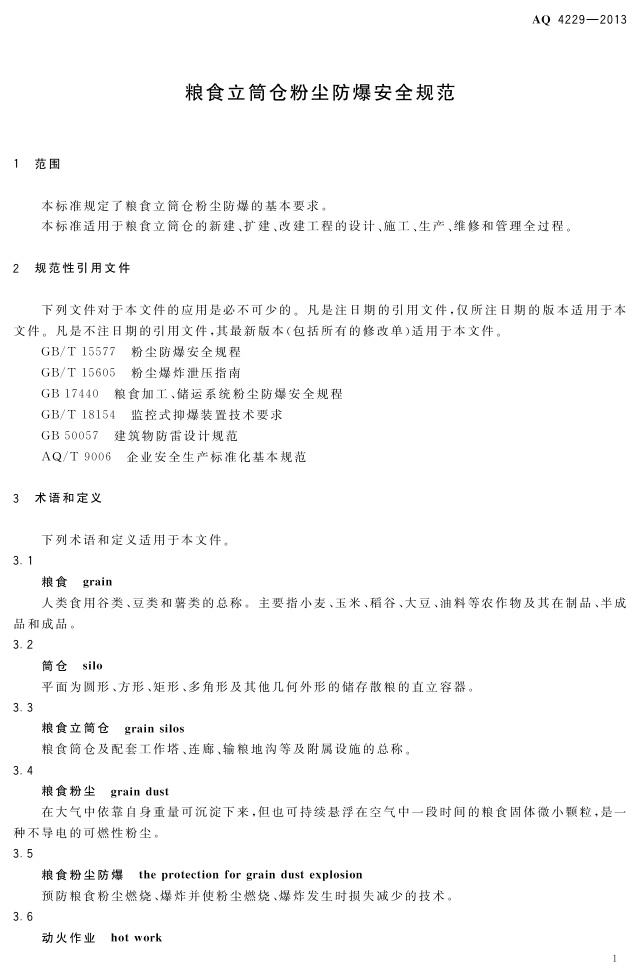 《粮食立筒仓粉尘防爆安全规范》(AQ 4229-2013)