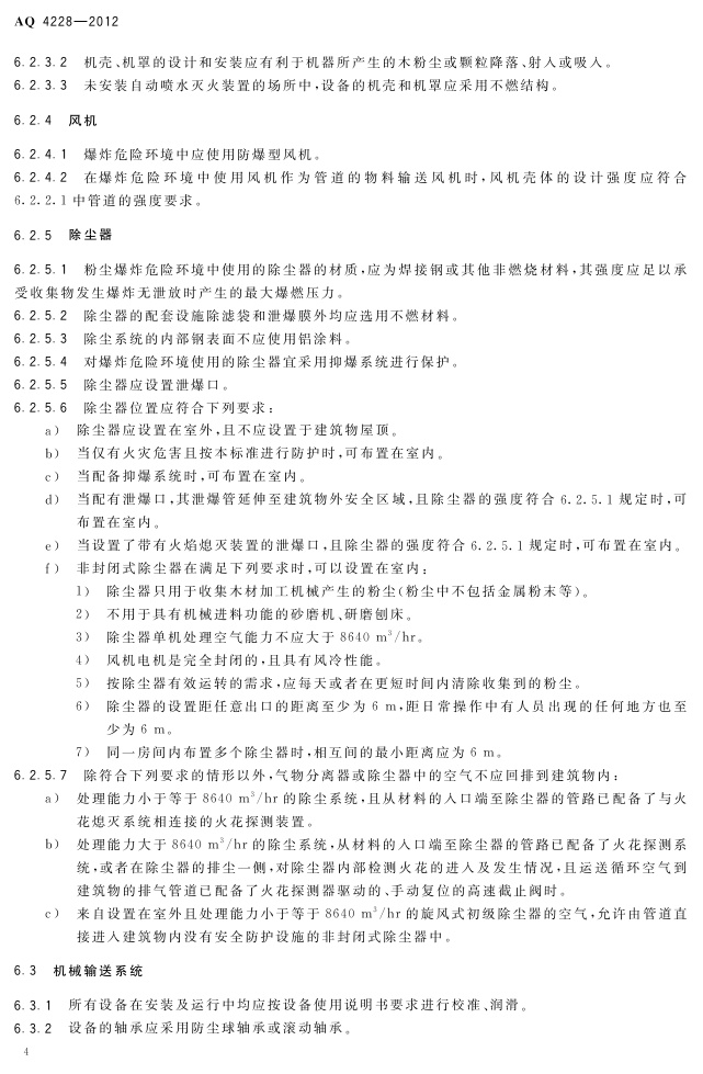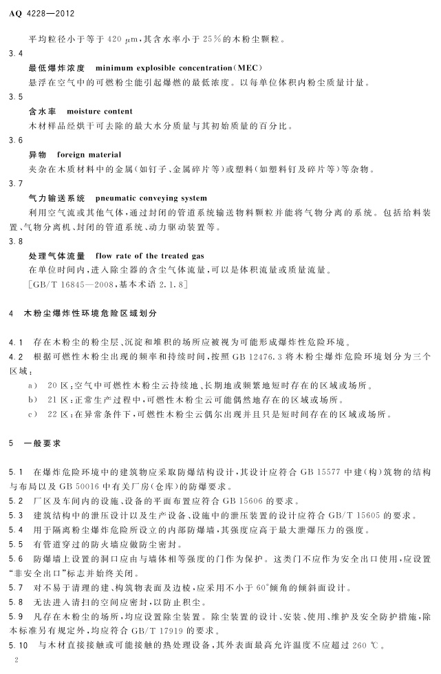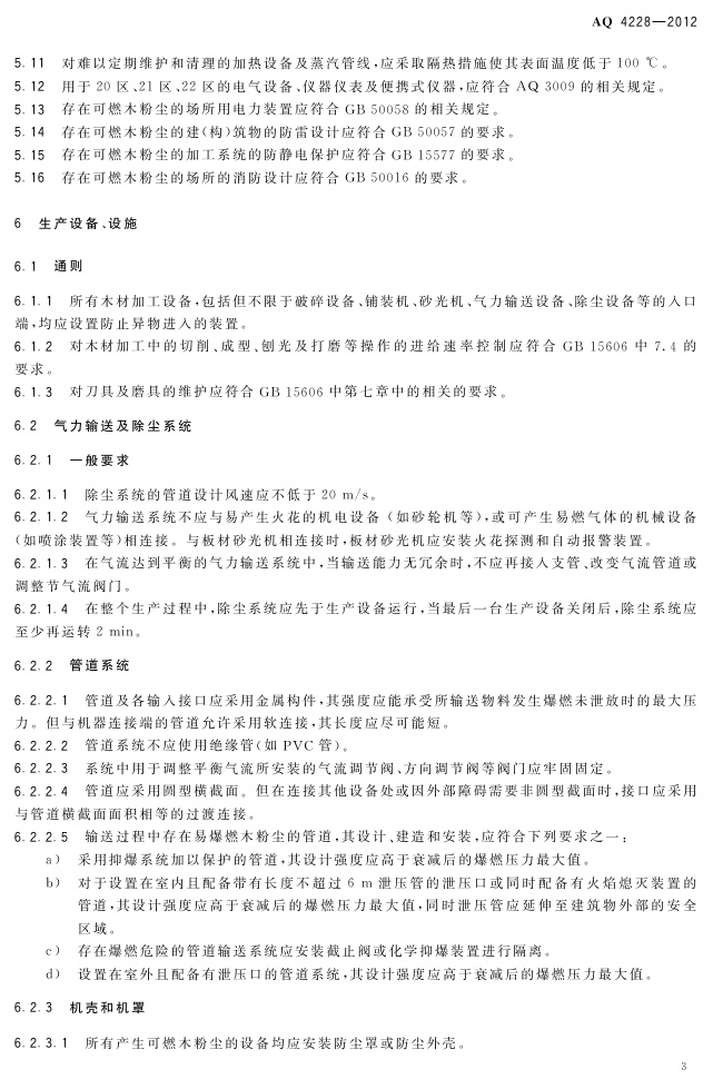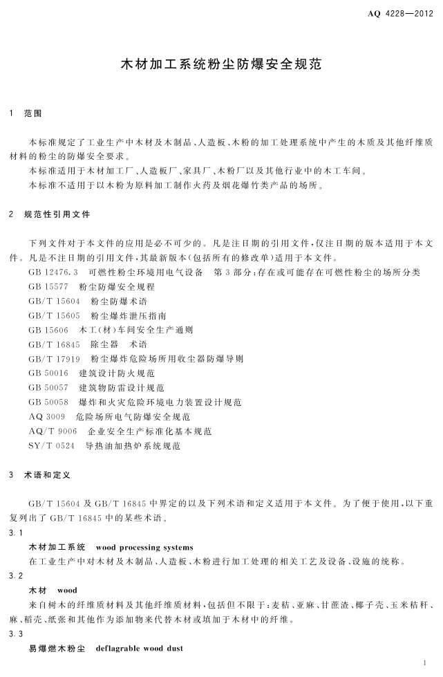 《木材加工系统粉尘防爆安全规范》(AQ 4228-2012)