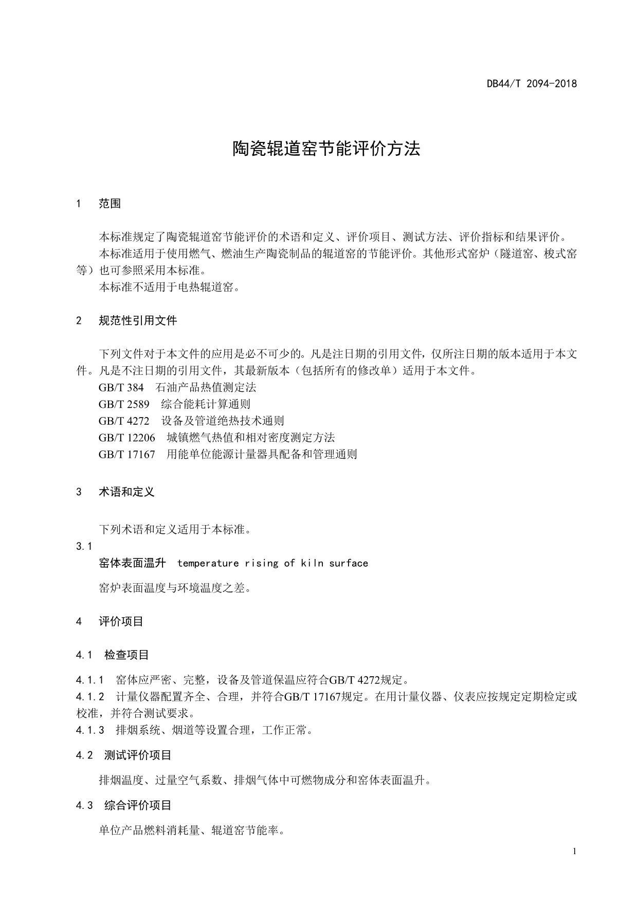 《陶瓷辊道窑节能评价方法》(DB44/T 2094-2018)
