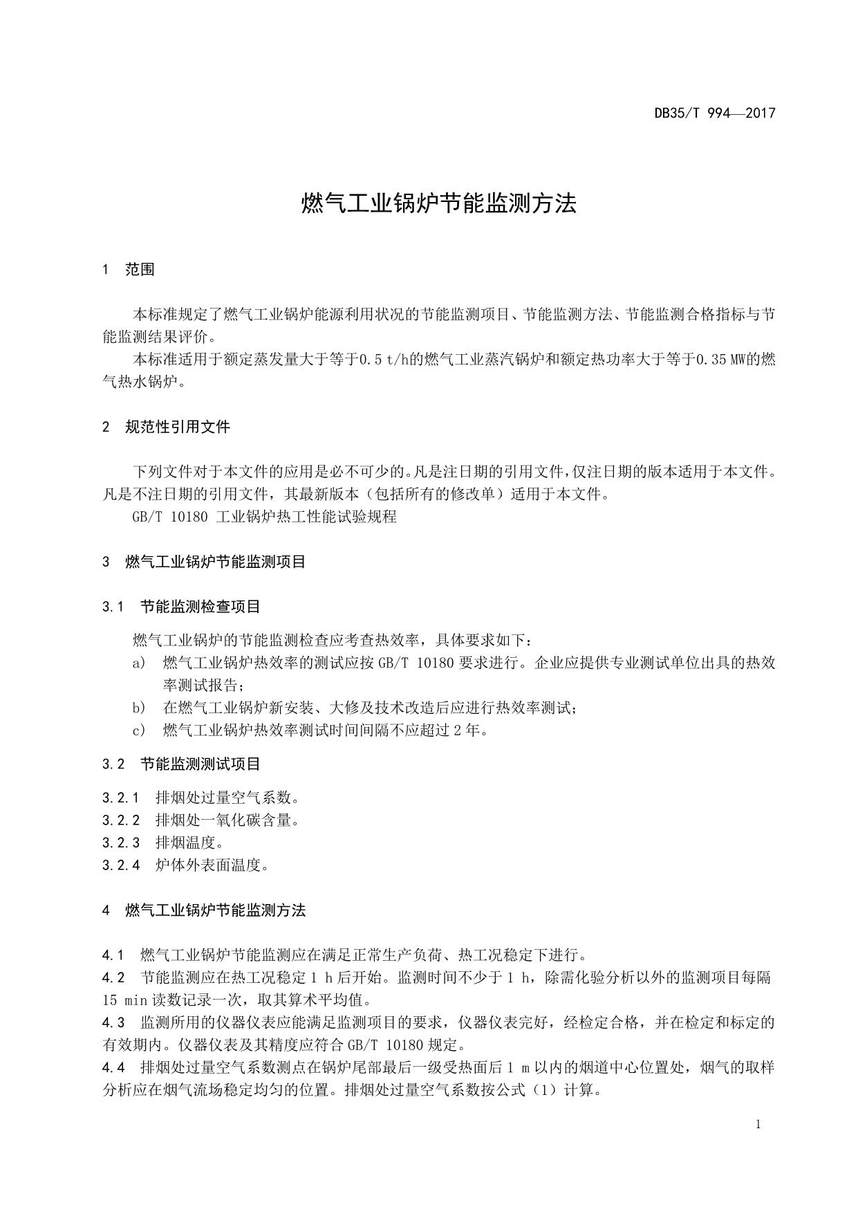 《燃气工业锅炉节能监测方法》(DB35/T 994-2017)