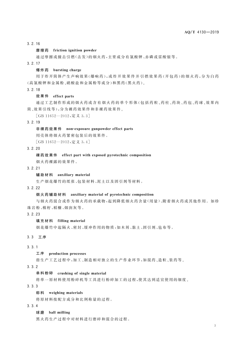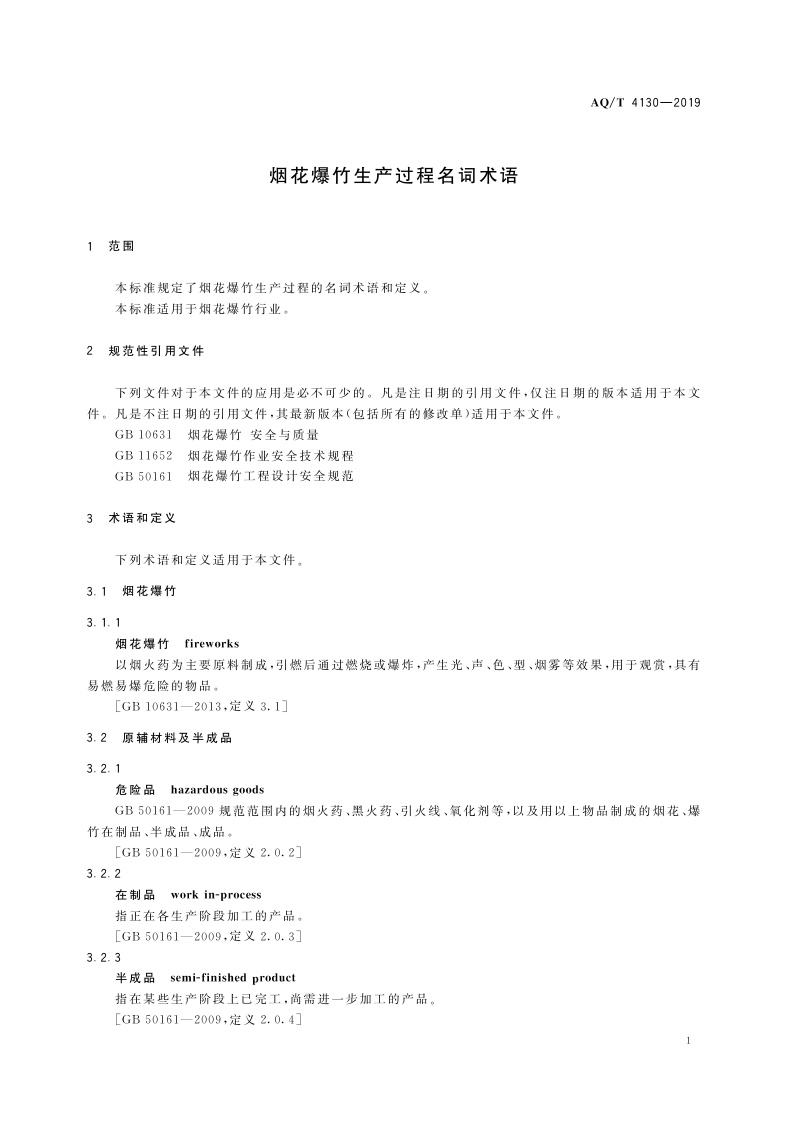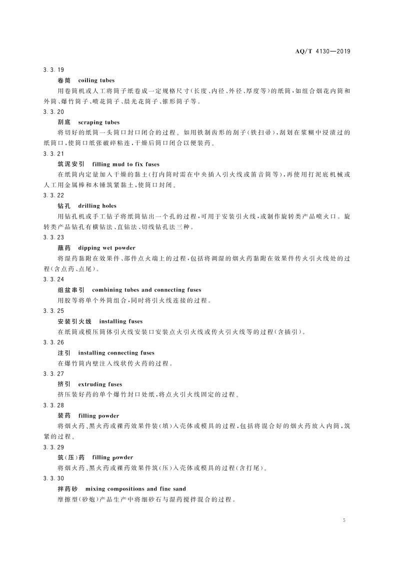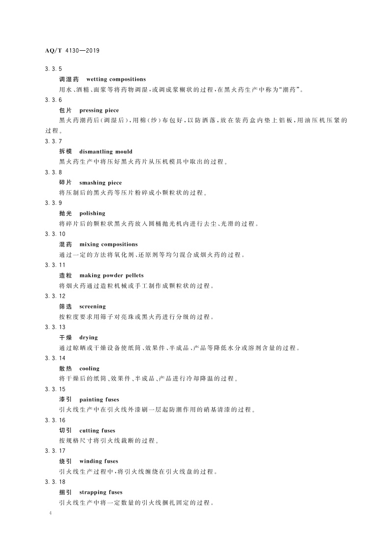 《烟花爆竹生产过程名称术语》(AQ 4130-2019)