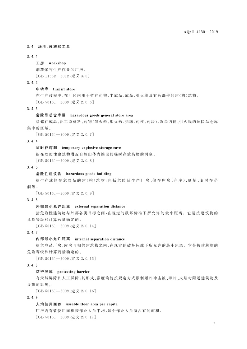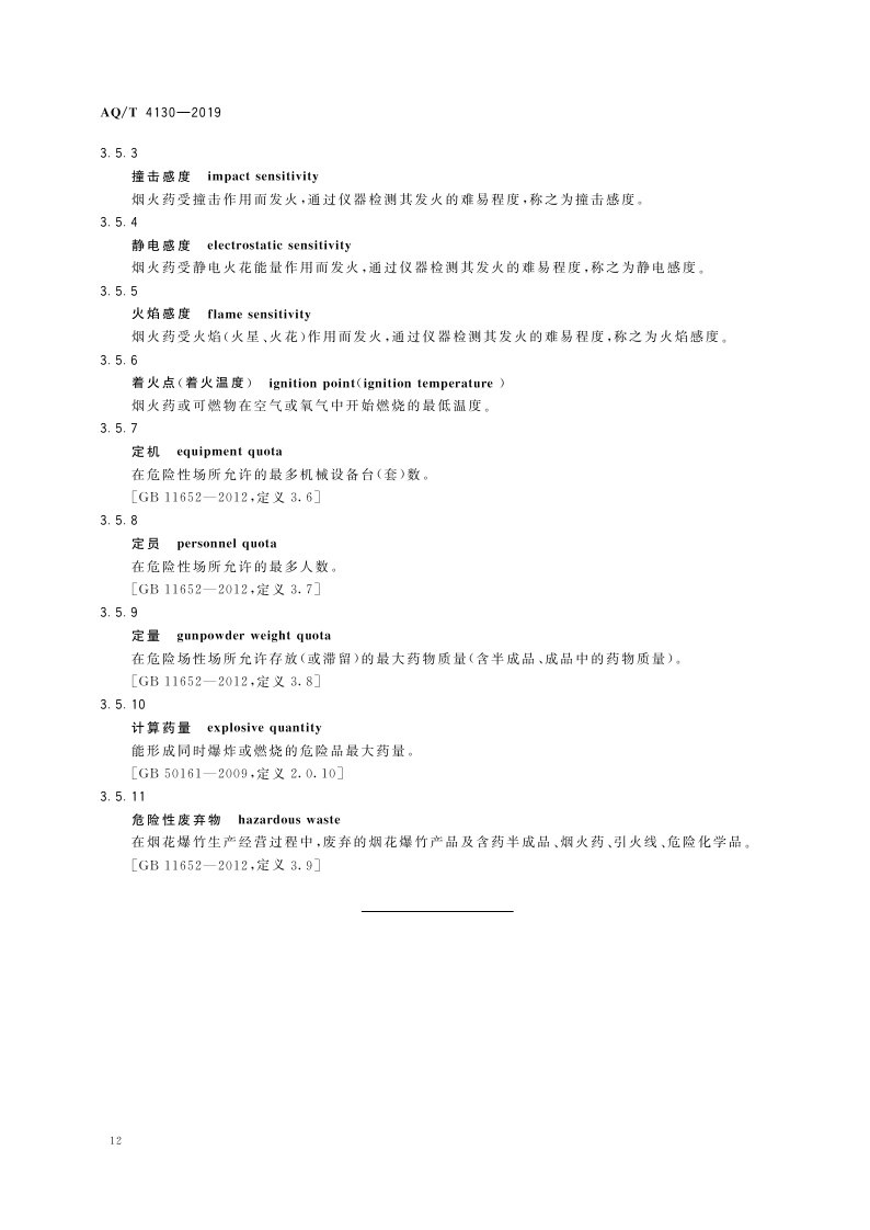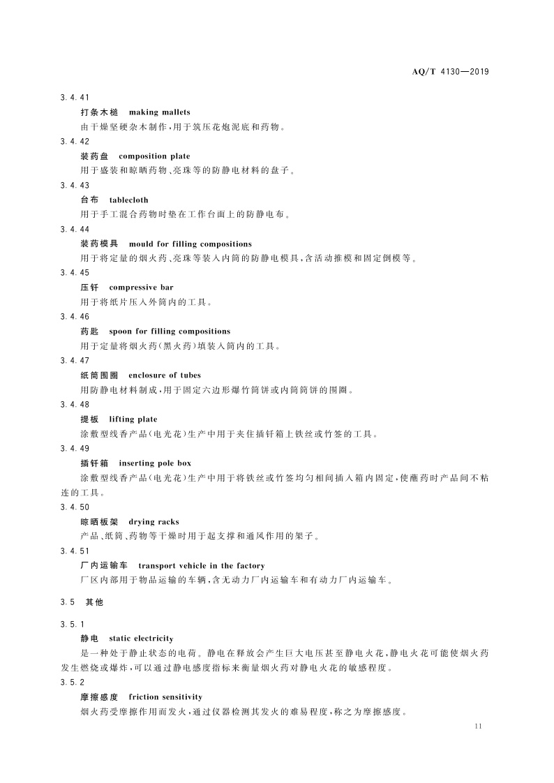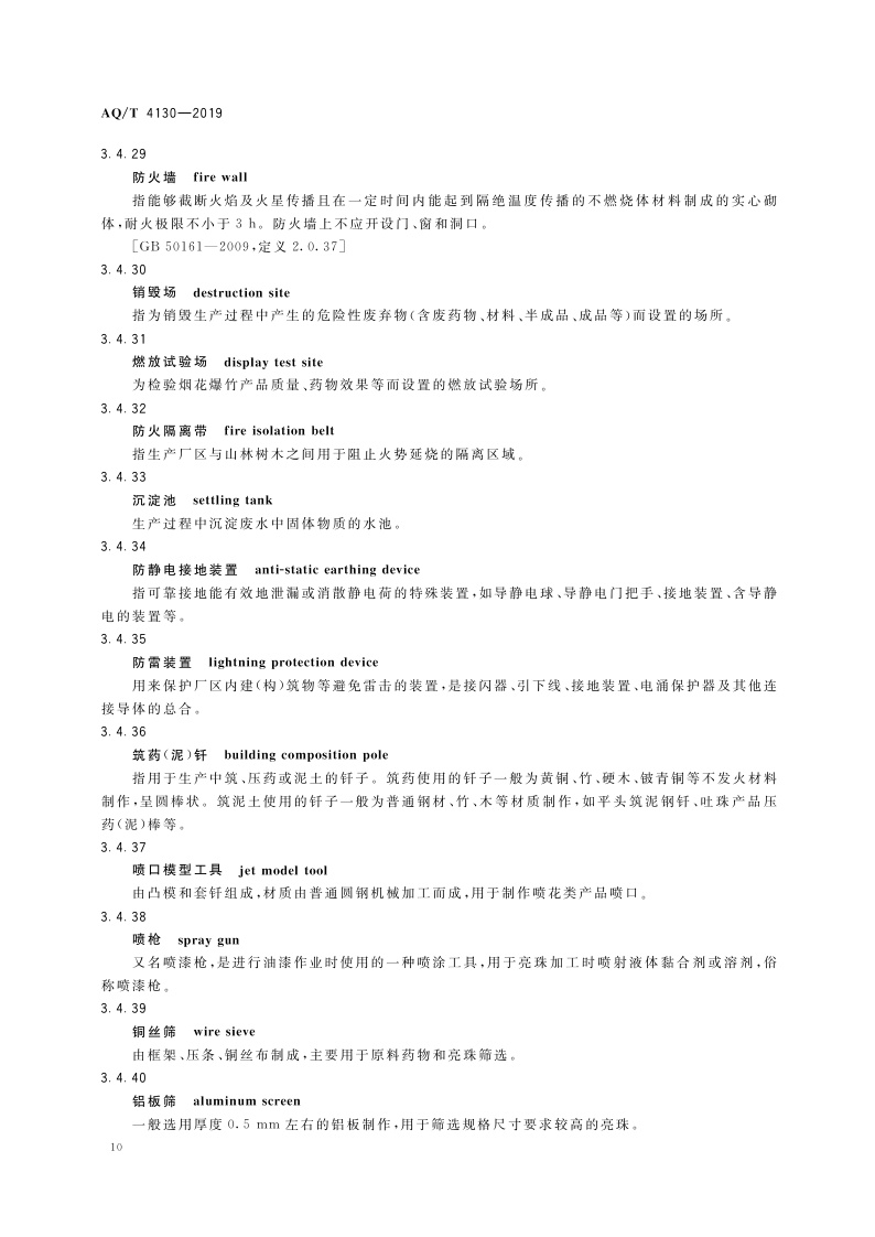 《烟花爆竹生产过程名称术语》(AQ 4130-2019)