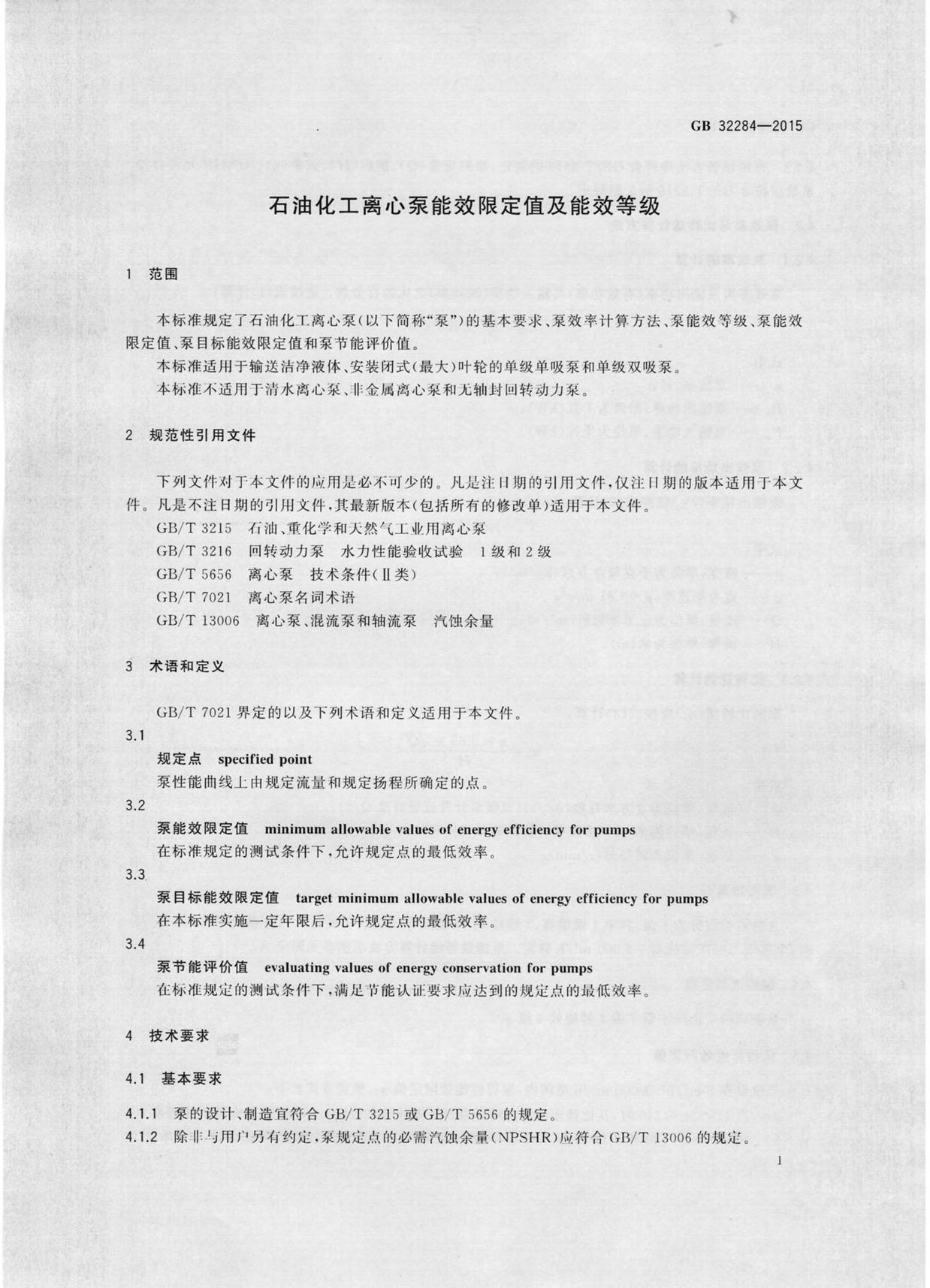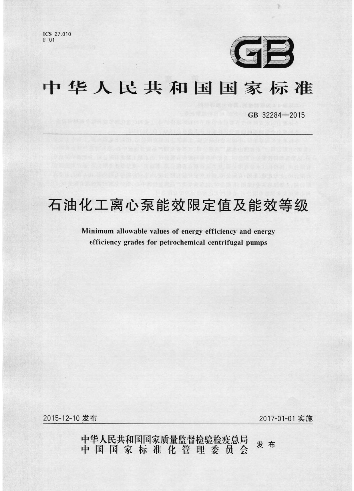 GB32284-2015石油化工离心泵能效限定值及能效等级