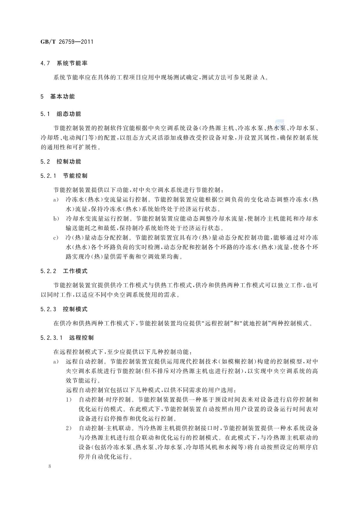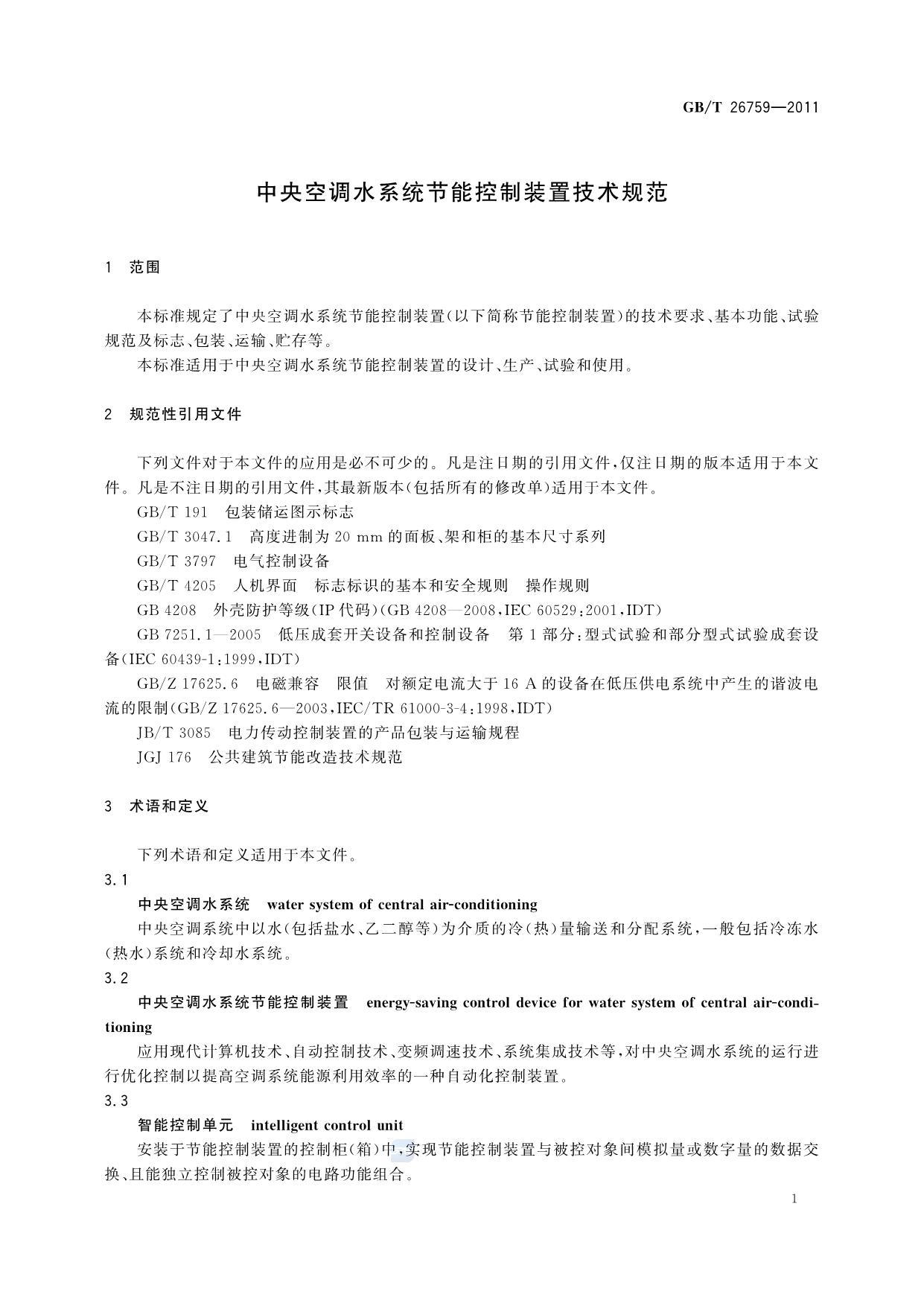《中央空调水系统节能控制装置技术规范》(GB/T 26759-2011)