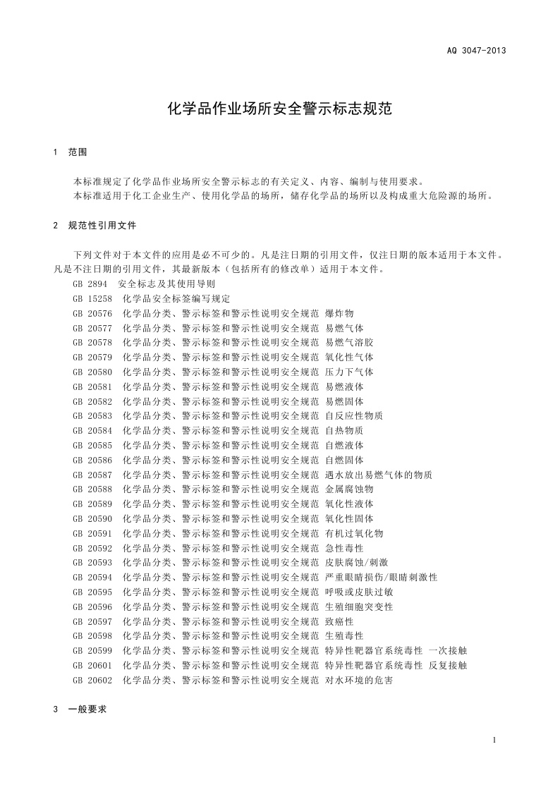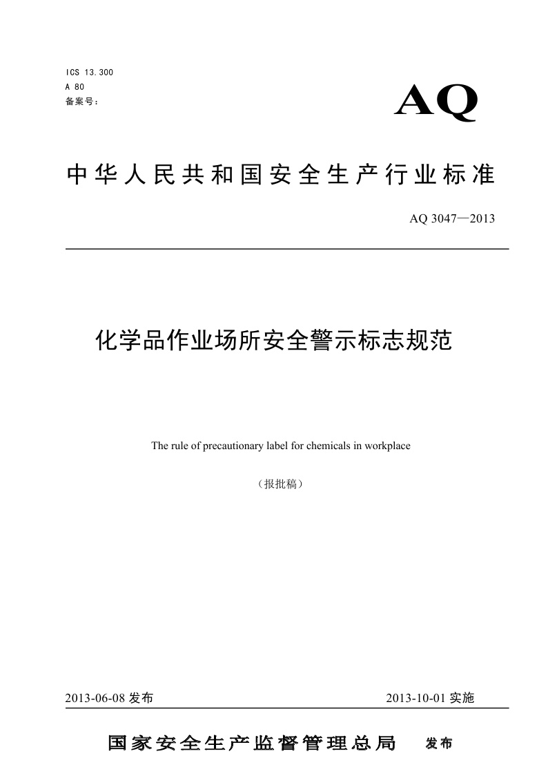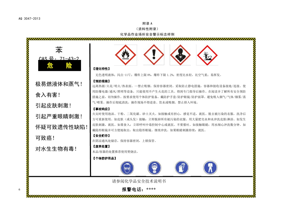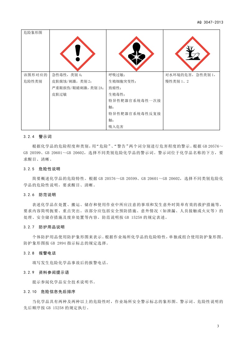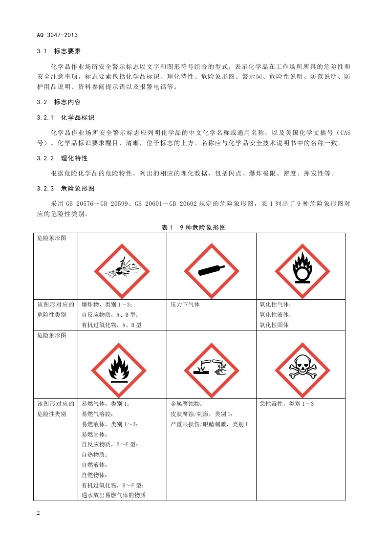 《化学品作业场所安全警示标志规范》(AQ 3047-2013)