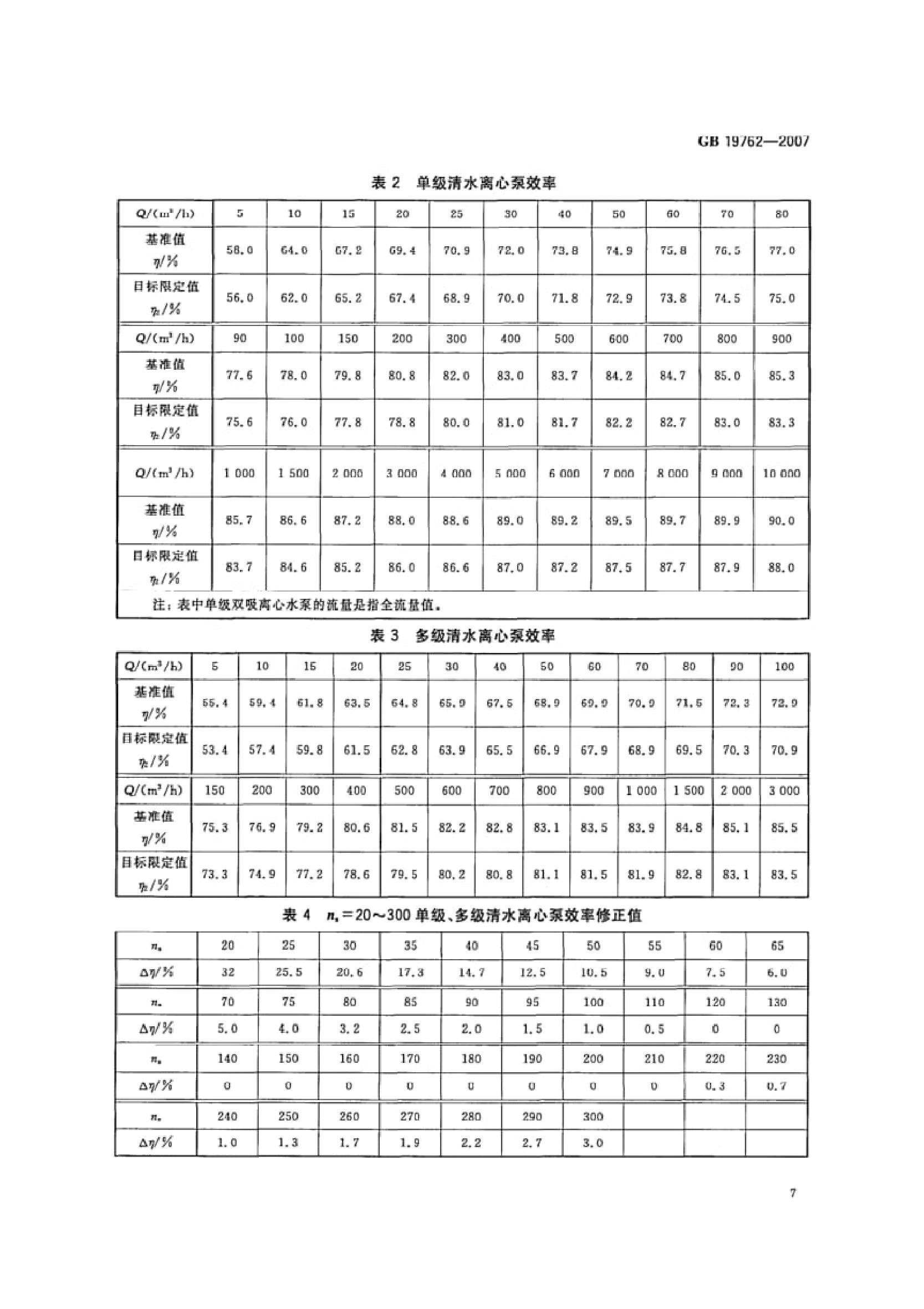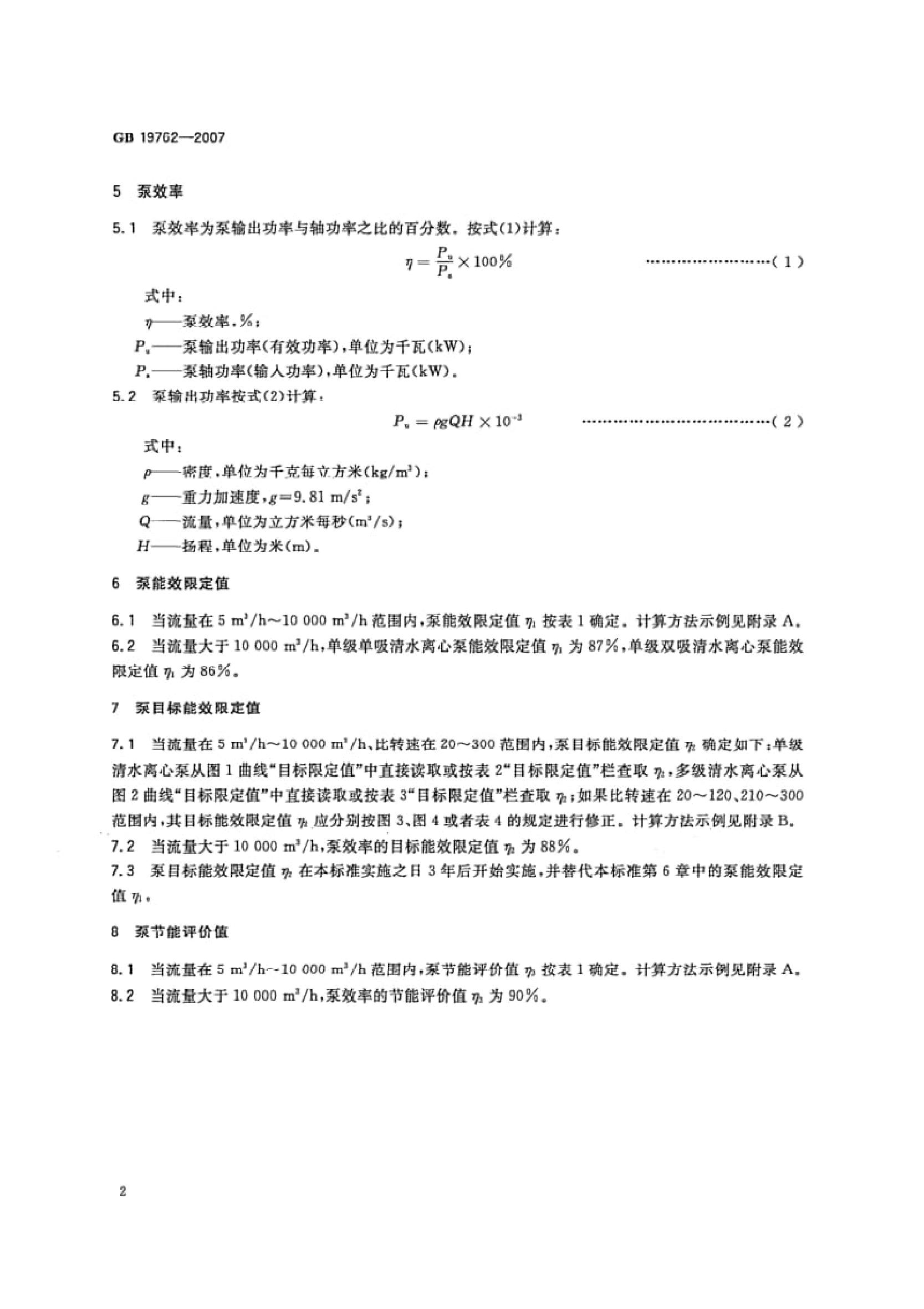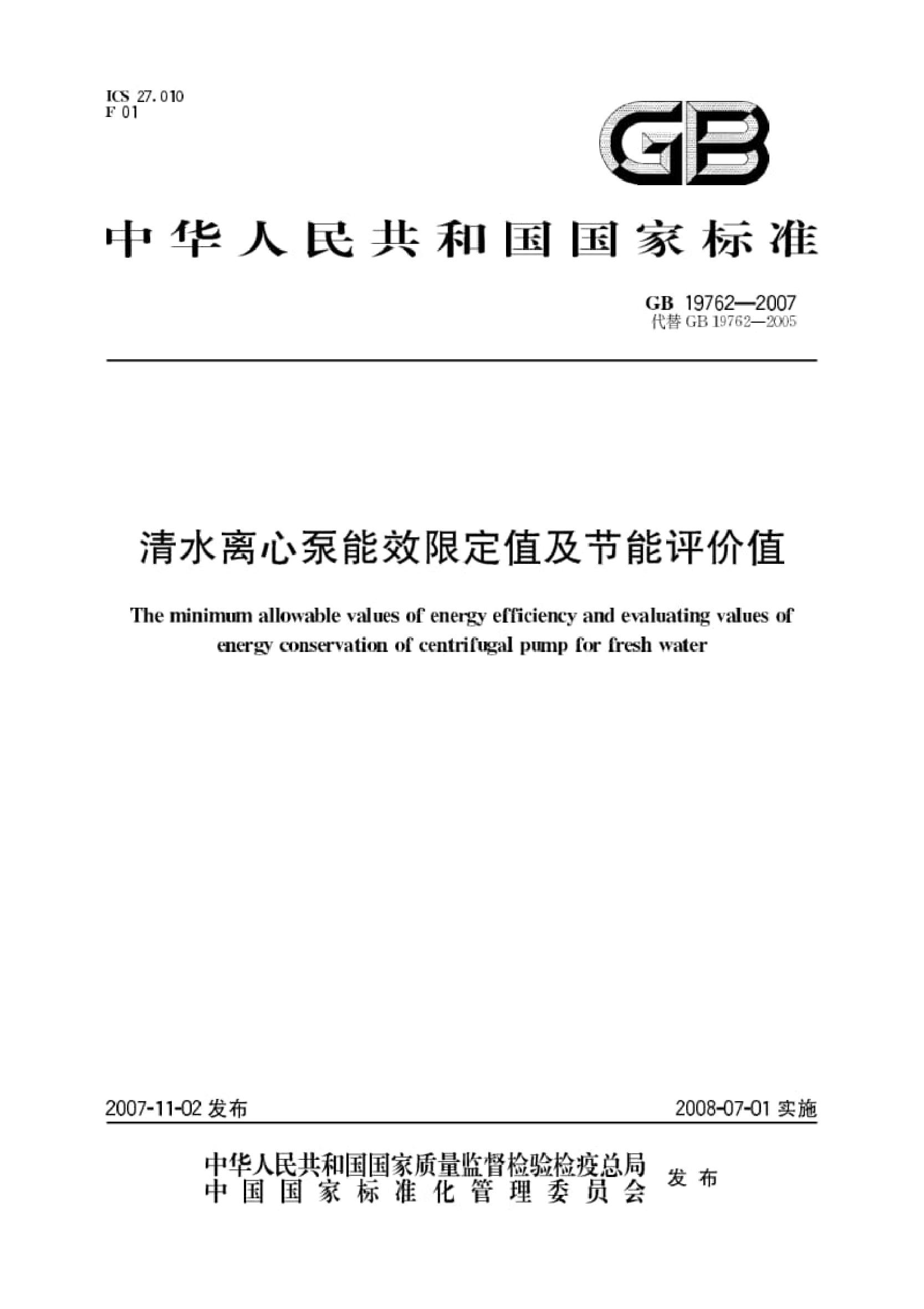 GB19762-2007清水离心泵能效限定值及节能评价值